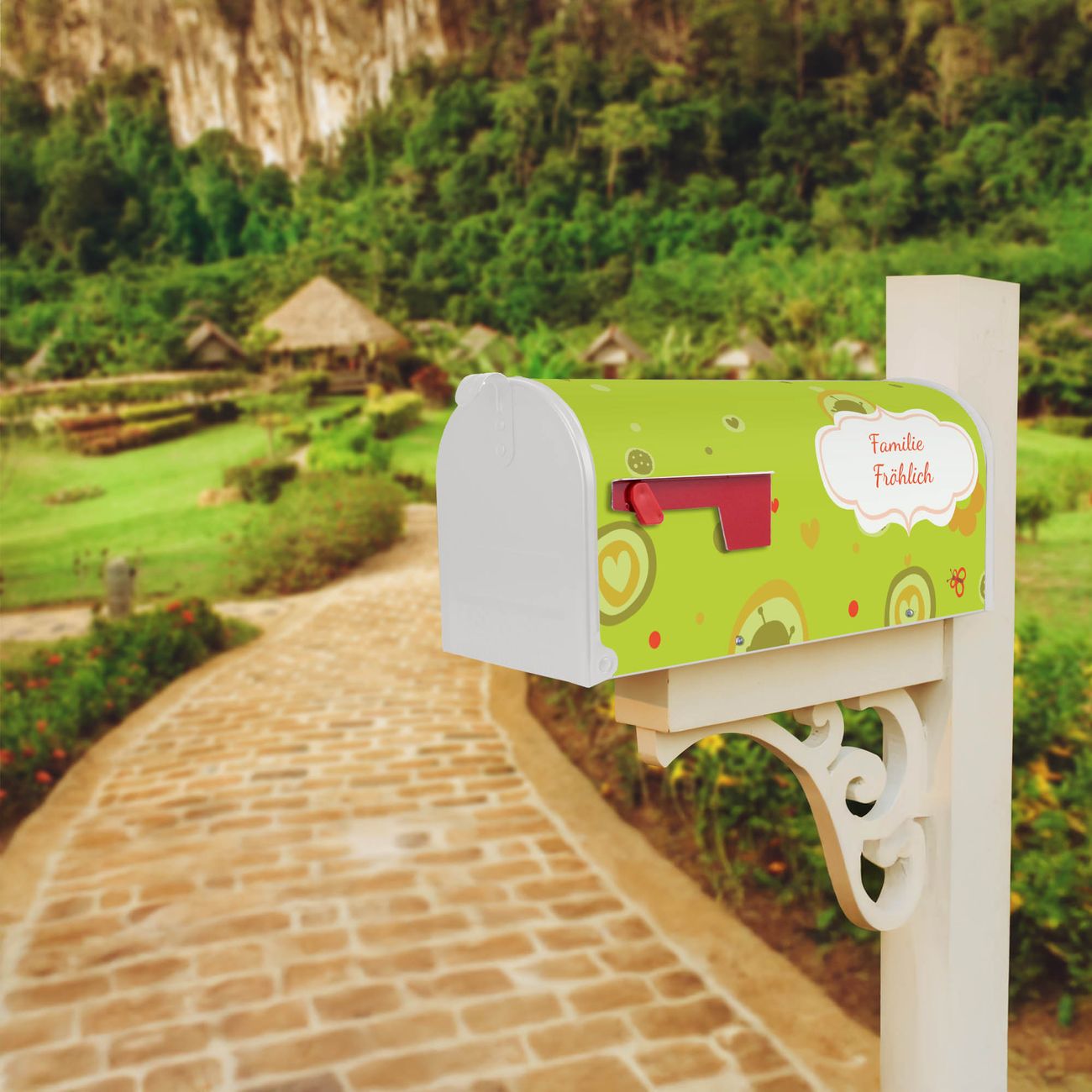 Der amerikanische Briefkasten von banjado mit WT Kinderland Motiv bietet Ihnen ausreichend Fassungsvermögen, um große A4 Sendungen und Zeitschriften zu empfangen. Die typisch amerikanische rote Fahne zeigt Ihnen an, wenn Sie Post erhalten haben. Die US-Mailbox besteht aus verzinktem Stahlblech welches lackiert wurde und ist 48 x 22 x 16 CM (BxHxT) groß. Die Folie mit Motiv WT Kinderland besteht aus einer wetter- und UV-resistenten Folie, die mit einem Schutzlaminat überzogen ist, sodass die US Mailbox zusätzlich vor Kratzern geschützt ist. An der Unterkante sind 4 Löcher je Seite um die Mailbox, typisch amerikanisch, an einem Holzpfahl oder einem Zaun zu befestigen. Auf Wunsch können Sie bei uns den passenden Standfuß oder die passende Wandhalterung kaufen um die US-Mailbox sicher zu befestigen. Wir bieten Ihnen ebenfalls Namensschilder, bereits beschriftet oder frei zu beschriften, und verschiedene selbst gestaltete Bitte-Keine-Werbung-Aufkleber.