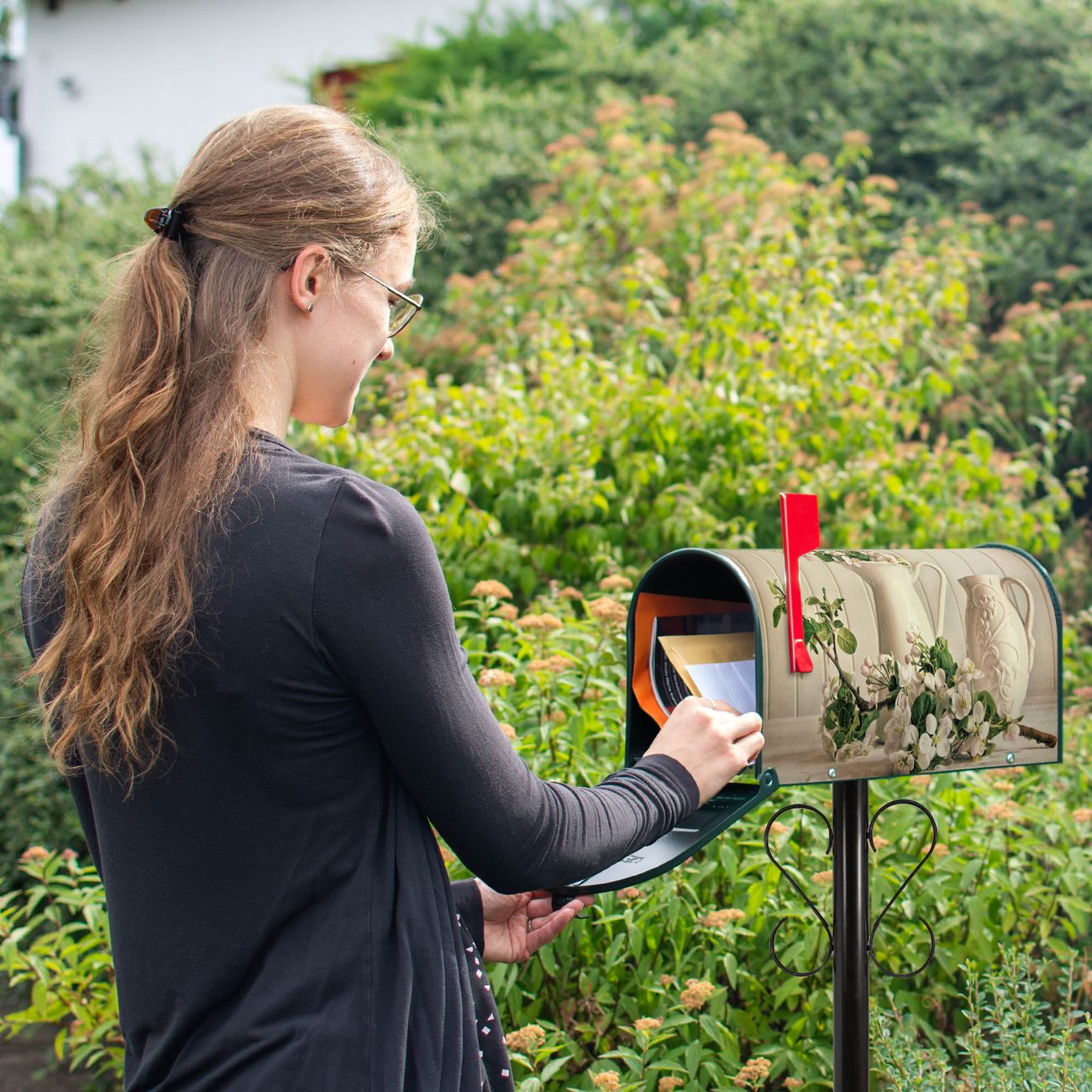 Unser amerikanischer Briefkasten mit dem Motiv Kirschzweige hat ein sehr ansprechendes und ausgefallenes Design, ist in der Grundfarbe weiß, grün oder schwarz erhältlich. Damit entlocken Sie Ihren Nachbarn und dem Postboten immer wieder ein Lächeln. Die Mailbox ist ein Original Import aus Mississippi USA und wird von unserer kleinen Manufaktur in Sachsen von Hand veredelt. Die US-Mailbox bietet ausreichend Platz auch für große Sendungen, eine Fahne die Ihnen Post anzeigt, wetterfestes und äußerst stabiles Material - so macht Post empfangen Freude.