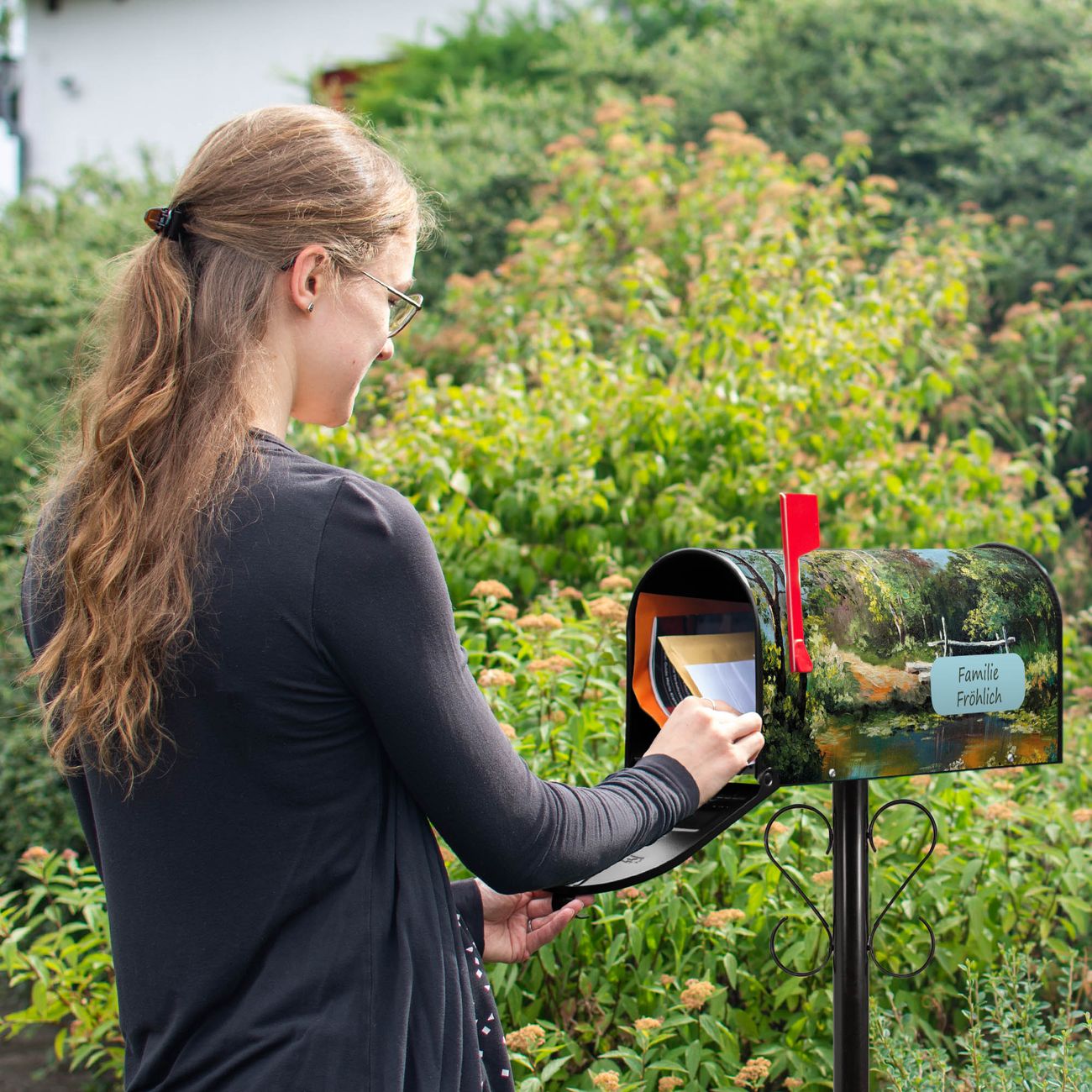 Unser amerikanischer Briefkasten mit dem Motiv Kleine Brücke hat ein sehr ansprechendes und ausgefallenes Design, ist in der Grundfarbe weiß, grün oder schwarz erhältlich. Damit entlocken Sie Ihren Nachbarn und dem Postboten immer wieder ein Lächeln. Die Mailbox ist ein Original Import aus Mississippi USA und wird von unserer kleinen Manufaktur in Sachsen von Hand veredelt. Die US-Mailbox bietet ausreichend Platz auch für große Sendungen, eine Fahne die Ihnen Post anzeigt, wetterfestes und äußerst stabiles Material - so macht Post empfangen Freude.