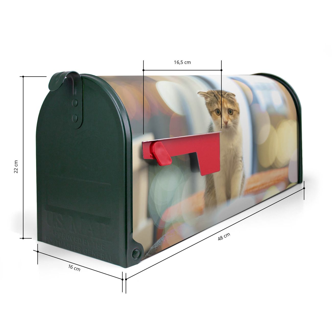 Unser amerikanischer Briefkasten mit dem Motiv Kleine Katze hat ein sehr ansprechendes und ausgefallenes Design, ist in der Grundfarbe weiß, grün oder schwarz erhältlich. Damit entlocken Sie Ihren Nachbarn und dem Postboten immer wieder ein Lächeln. Die Mailbox ist ein Original Import aus Mississippi USA und wird von unserer kleinen Manufaktur in Sachsen von Hand veredelt. Die US-Mailbox bietet ausreichend Platz auch für große Sendungen, eine Fahne die Ihnen Post anzeigt, wetterfestes und äußerst stabiles Material - so macht Post empfangen Freude.