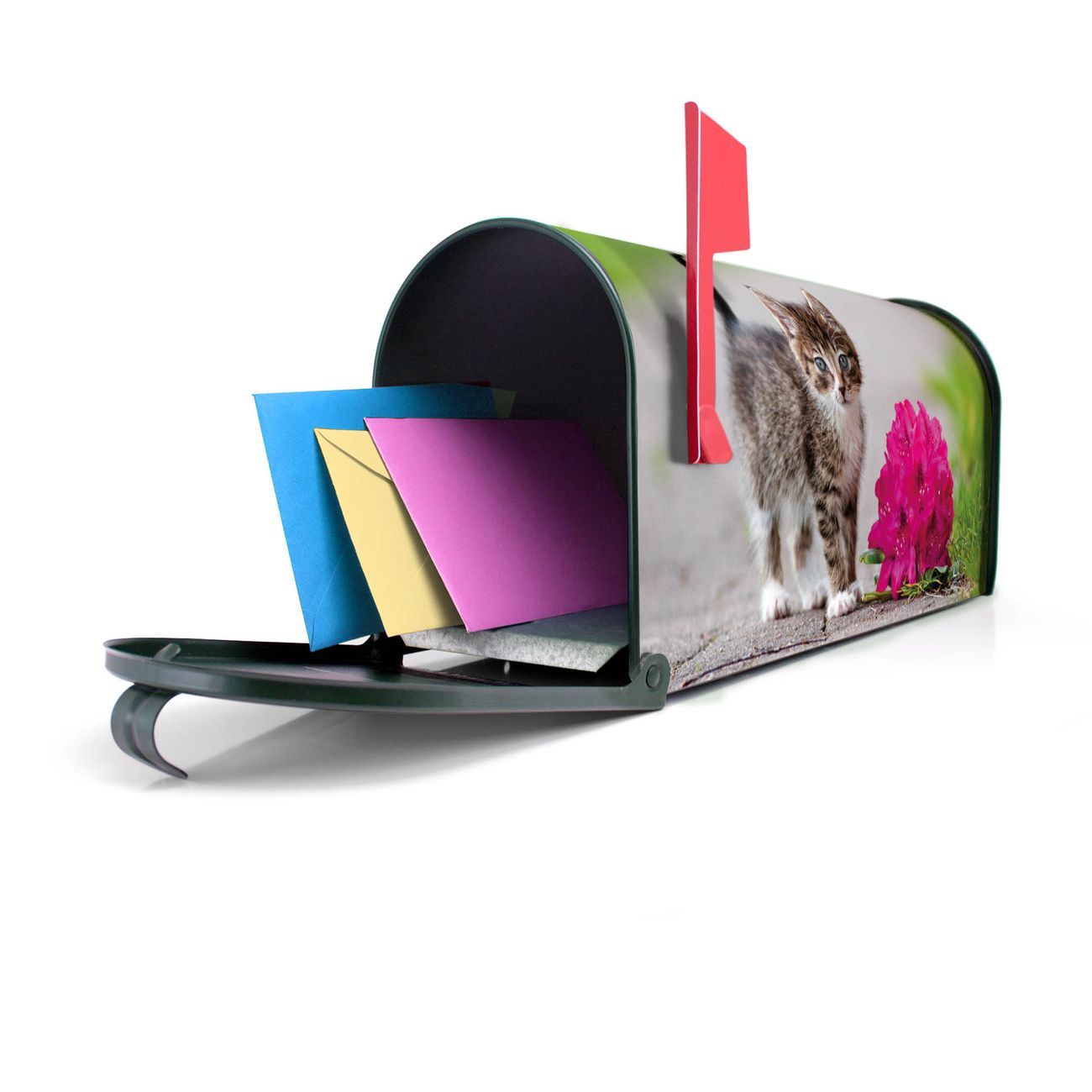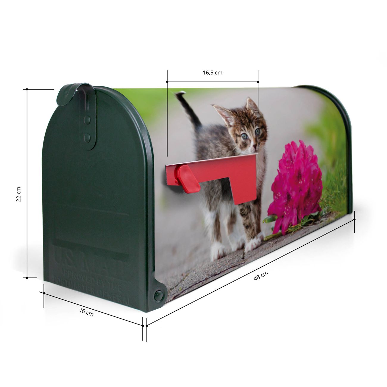 Der amerikanische Briefkasten von banjado mit Knut Motiv bietet Ihnen ausreichend Fassungsvermögen, um große A4 Sendungen und Zeitschriften zu empfangen. Die typisch amerikanische rote Fahne zeigt Ihnen an, wenn Sie Post erhalten haben. Die US-Mailbox besteht aus verzinktem Stahlblech welches lackiert wurde und ist 48 x 22 x 16 CM (BxHxT) groß. Die Folie mit Motiv Knut besteht aus einer wetter- und UV-resistenten Folie, die mit einem Schutzlaminat überzogen ist, sodass die US Mailbox zusätzlich vor Kratzern geschützt ist. An der Unterkante sind 4 Löcher je Seite um die Mailbox, typisch amerikanisch, an einem Holzpfahl oder einem Zaun zu befestigen. Auf Wunsch können Sie bei uns den passenden Standfuß oder die passende Wandhalterung kaufen um die US-Mailbox sicher zu befestigen. Wir bieten Ihnen ebenfalls Namensschilder, bereits beschriftet oder frei zu beschriften, und verschiedene selbst gestaltete Bitte-Keine-Werbung-Aufkleber.