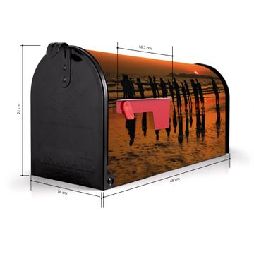 Der amerikanische Briefkasten von banjado mit Koh Samet Beach Motiv bietet Ihnen ausreichend Fassungsvermögen, um große A4 Sendungen und Zeitschriften zu empfangen. Die typisch amerikanische rote Fahne zeigt Ihnen an, wenn Sie Post erhalten haben. Die US-Mailbox besteht aus verzinktem Stahlblech welches lackiert wurde und ist 48 x 22 x 16 CM (BxHxT) groß. Die Folie mit Motiv Koh Samet Beach besteht aus einer wetter- und UV-resistenten Folie, die mit einem Schutzlaminat überzogen ist, sodass die US Mailbox zusätzlich vor Kratzern geschützt ist. An der Unterkante sind 4 Löcher je Seite um die Mailbox, typisch amerikanisch, an einem Holzpfahl oder einem Zaun zu befestigen. Auf Wunsch können Sie bei uns den passenden Standfuß oder die passende Wandhalterung kaufen um die US-Mailbox sicher zu befestigen. Wir bieten Ihnen ebenfalls Namensschilder, bereits beschriftet oder frei zu beschriften, und verschiedene selbst gestaltete Bitte-Keine-Werbung-Aufkleber.