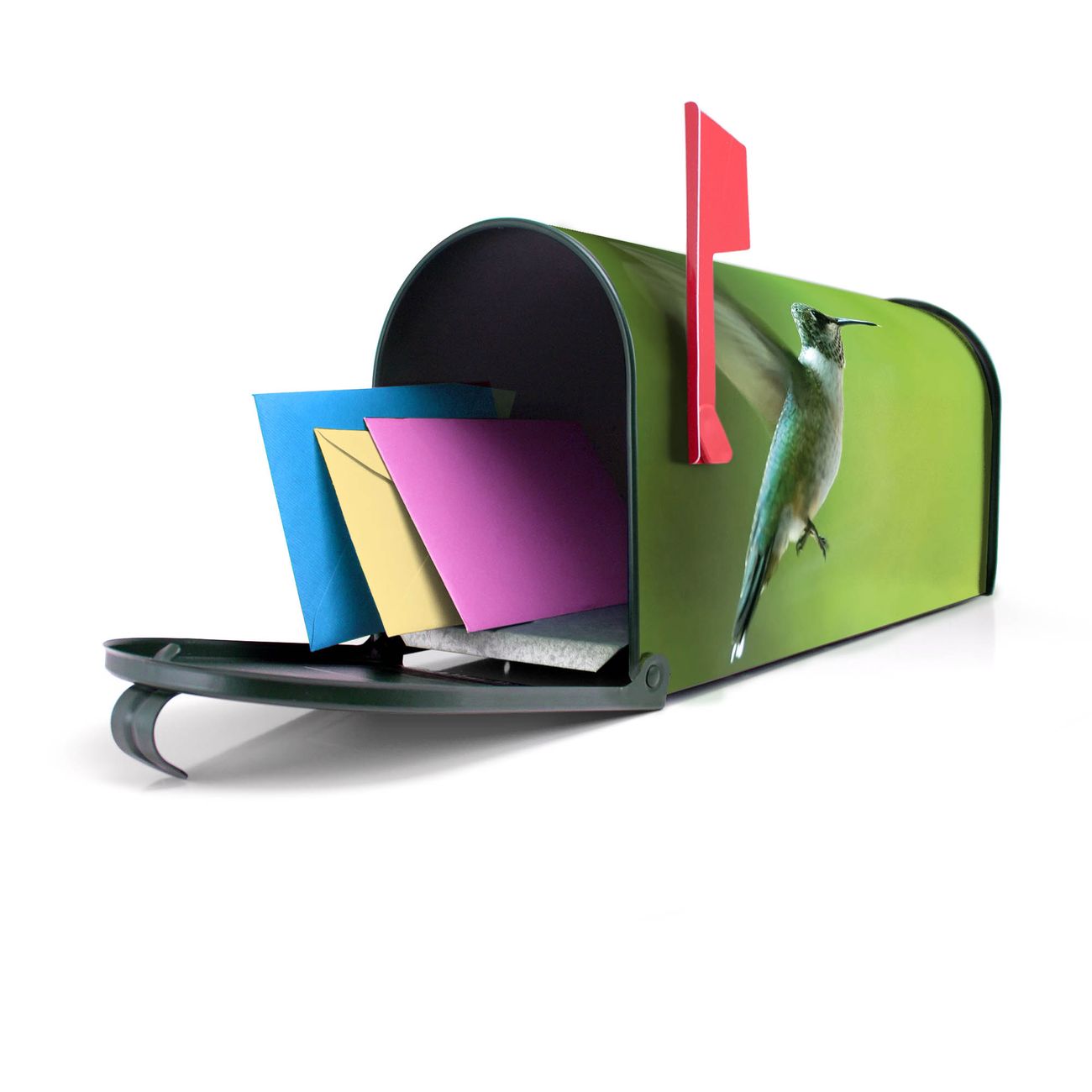 Unser amerikanischer Briefkasten mit dem Motiv Kolibri hat ein sehr ansprechendes und ausgefallenes Design, ist in der Grundfarbe weiß, grün oder schwarz erhältlich. Damit entlocken Sie Ihren Nachbarn und dem Postboten immer wieder ein Lächeln. Die Mailbox ist ein Original Import aus Mississippi USA und wird von unserer kleinen Manufaktur in Sachsen von Hand veredelt. Die US-Mailbox bietet ausreichend Platz auch für große Sendungen, eine Fahne die Ihnen Post anzeigt, wetterfestes und äußerst stabiles Material - so macht Post empfangen Freude.