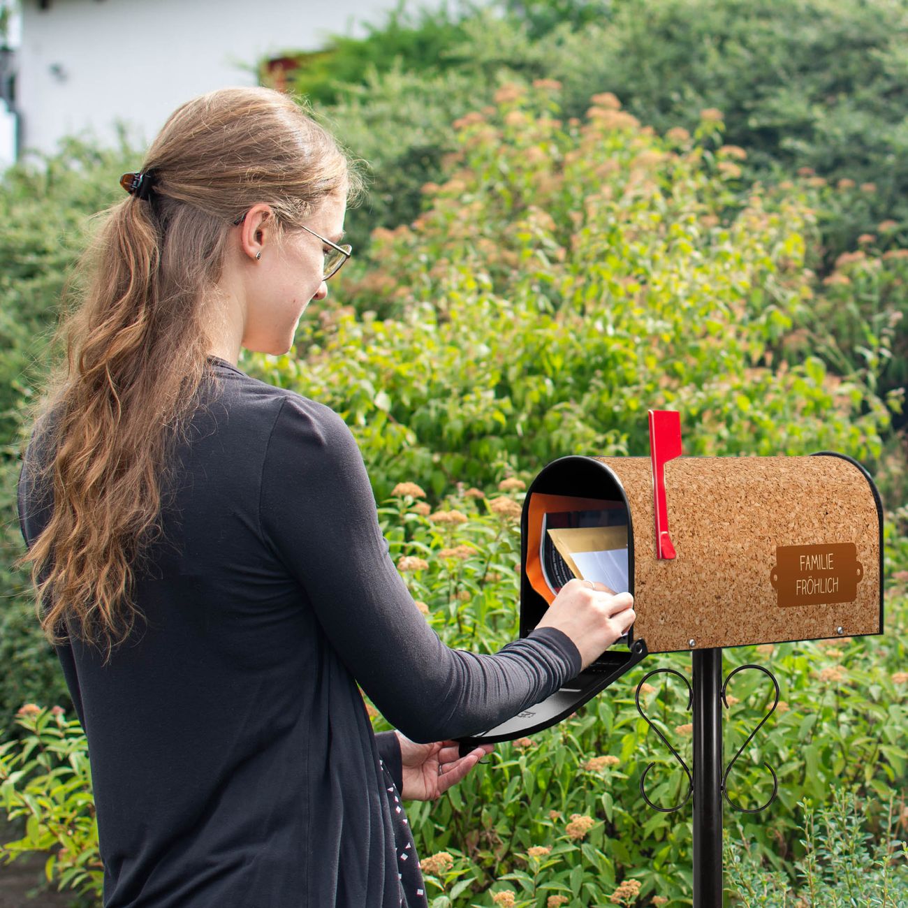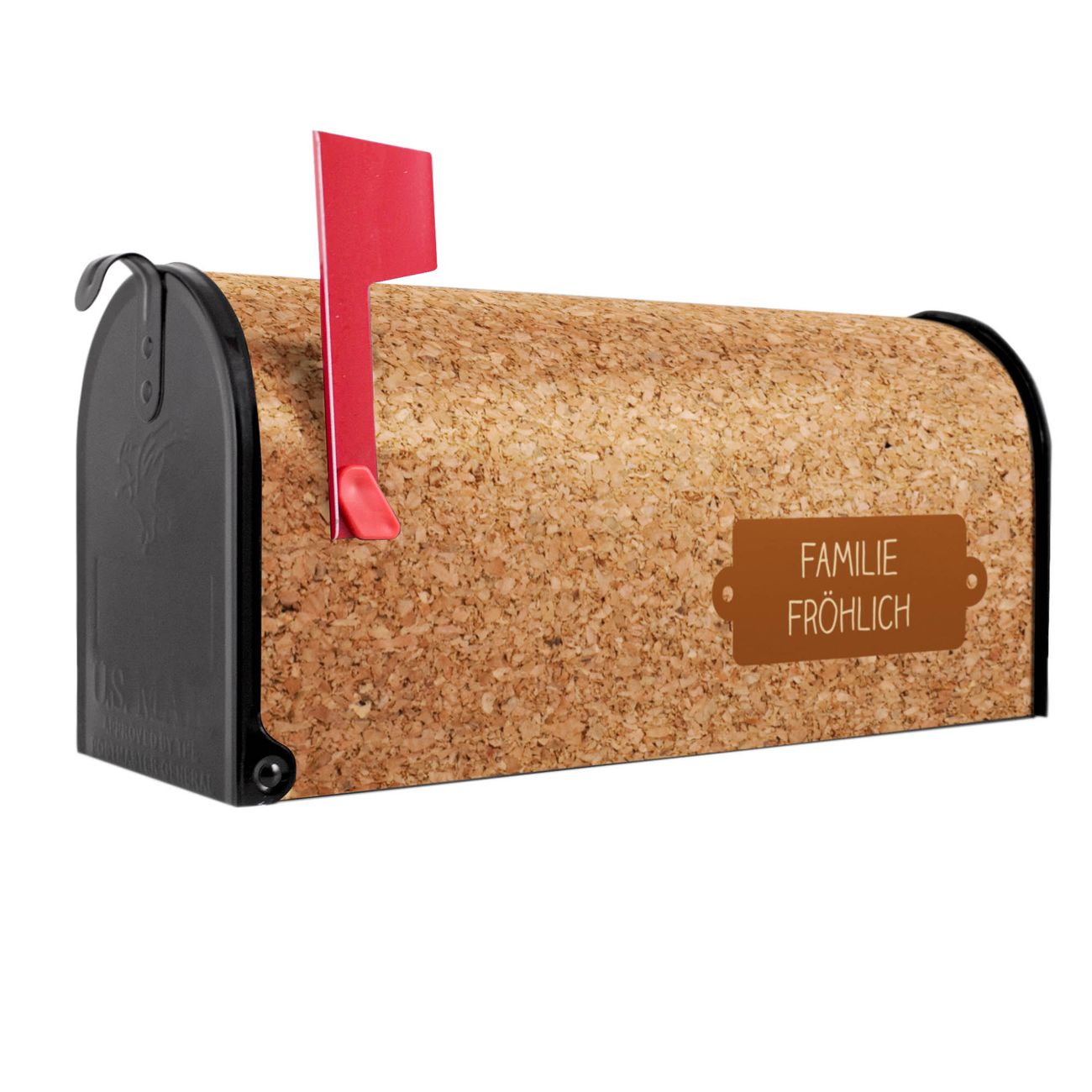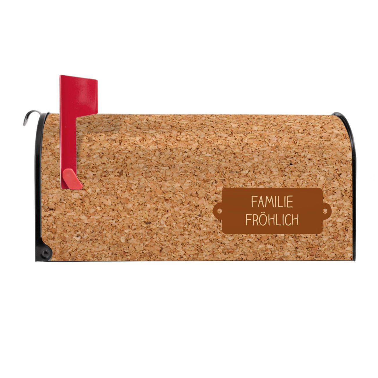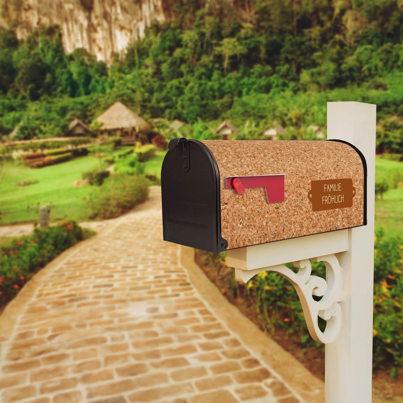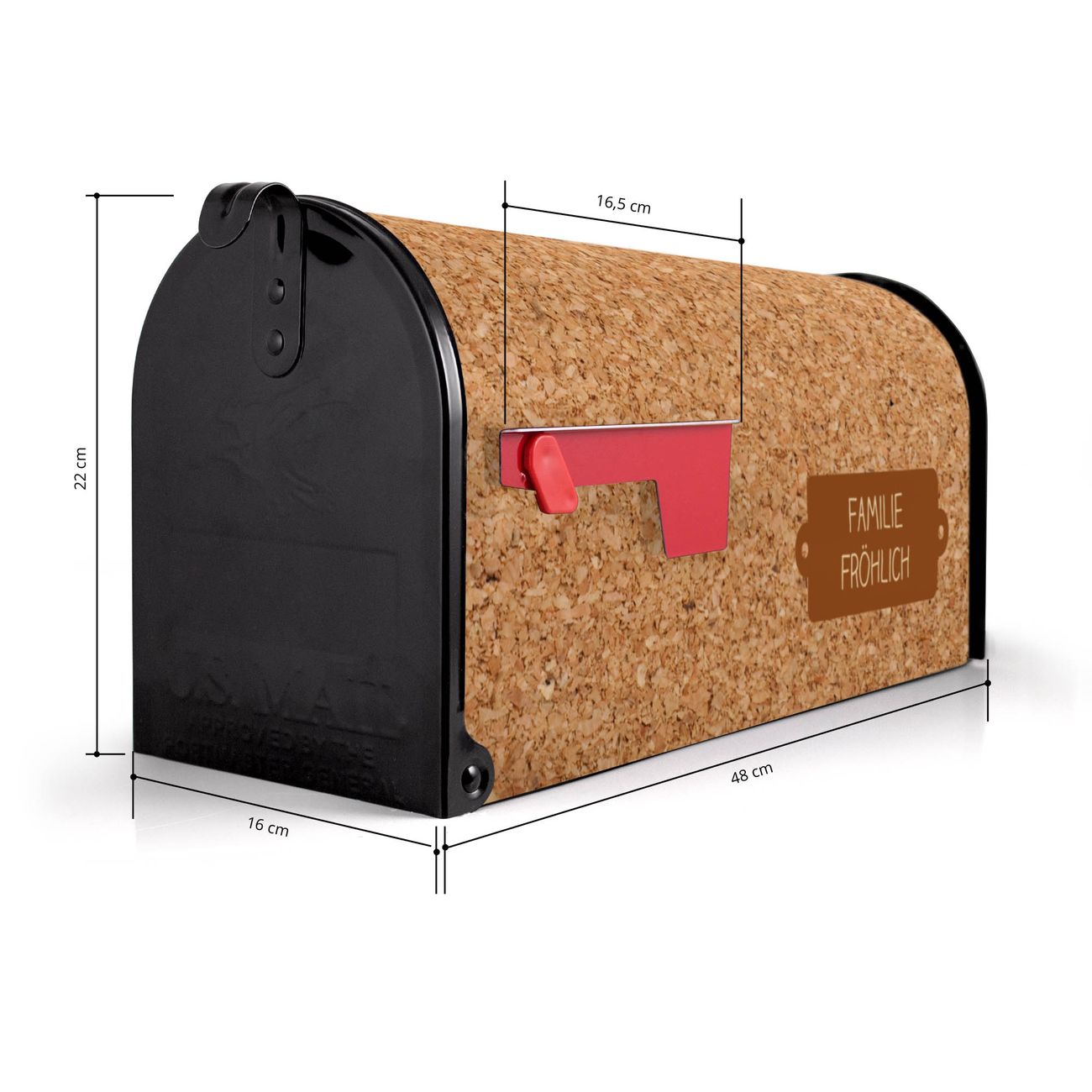 Der amerikanische Briefkasten von banjado mit Kork Motiv bietet Ihnen ausreichend Fassungsvermögen, um große A4 Sendungen und Zeitschriften zu empfangen. Die typisch amerikanische rote Fahne zeigt Ihnen an, wenn Sie Post erhalten haben. Die US-Mailbox besteht aus verzinktem Stahlblech welches lackiert wurde und ist 48 x 22 x 16 CM (BxHxT) groß. Die Folie mit Motiv Kork besteht aus einer wetter- und UV-resistenten Folie, die mit einem Schutzlaminat überzogen ist, sodass die US Mailbox zusätzlich vor Kratzern geschützt ist. An der Unterkante sind 4 Löcher je Seite um die Mailbox, typisch amerikanisch, an einem Holzpfahl oder einem Zaun zu befestigen. Auf Wunsch können Sie bei uns den passenden Standfuß oder die passende Wandhalterung kaufen um die US-Mailbox sicher zu befestigen. Wir bieten Ihnen ebenfalls Namensschilder, bereits beschriftet oder frei zu beschriften, und verschiedene selbst gestaltete Bitte-Keine-Werbung-Aufkleber.