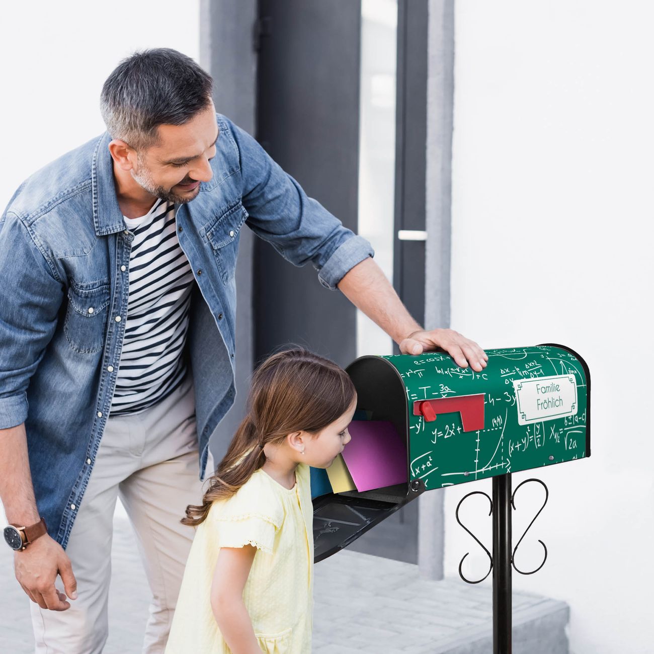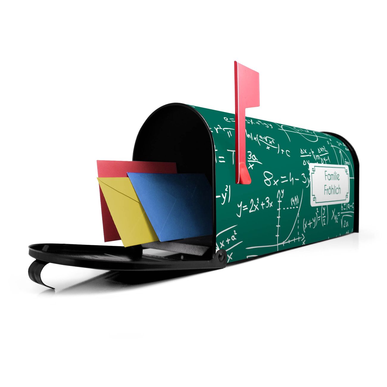 Unser amerikanischer Briefkasten mit dem Motiv Kreidetafel hat ein sehr ansprechendes und ausgefallenes Design, ist in der Grundfarbe weiß, grün oder schwarz erhältlich. Damit entlocken Sie Ihren Nachbarn und dem Postboten immer wieder ein Lächeln. Die Mailbox ist ein Original Import aus Mississippi USA und wird von unserer kleinen Manufaktur in Sachsen von Hand veredelt. Die US-Mailbox bietet ausreichend Platz auch für große Sendungen, eine Fahne die Ihnen Post anzeigt, wetterfestes und äußerst stabiles Material - so macht Post empfangen Freude.