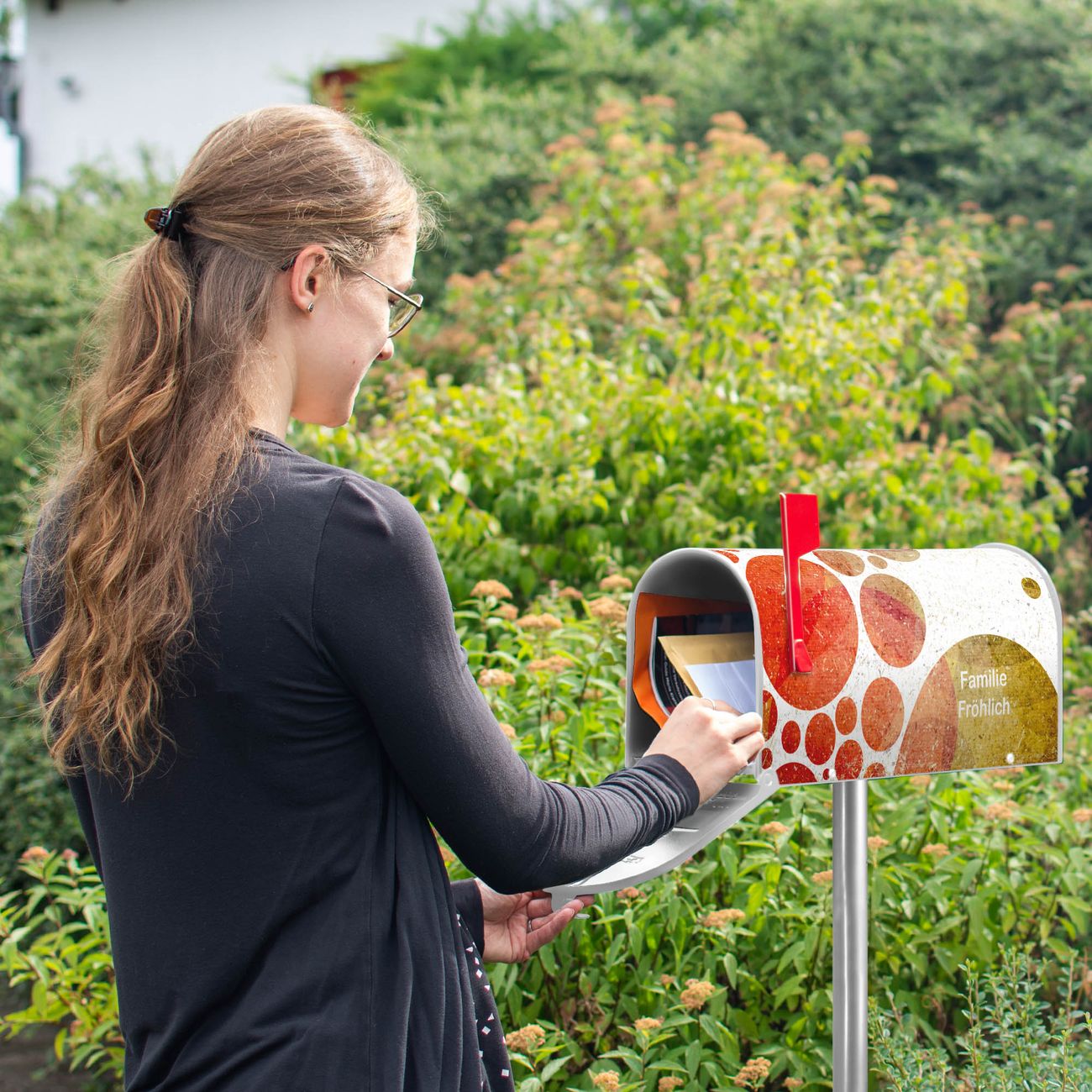 Unser amerikanischer Briefkasten mit dem Motiv WT Kreise hat ein sehr ansprechendes und ausgefallenes Design, ist in der Grundfarbe weiß, grün oder schwarz erhältlich. Damit entlocken Sie Ihren Nachbarn und dem Postboten immer wieder ein Lächeln. Die Mailbox ist ein Original Import aus Mississippi USA und wird von unserer kleinen Manufaktur in Sachsen von Hand veredelt. Die US-Mailbox bietet ausreichend Platz auch für große Sendungen, eine Fahne die Ihnen Post anzeigt, wetterfestes und äußerst stabiles Material - so macht Post empfangen Freude.