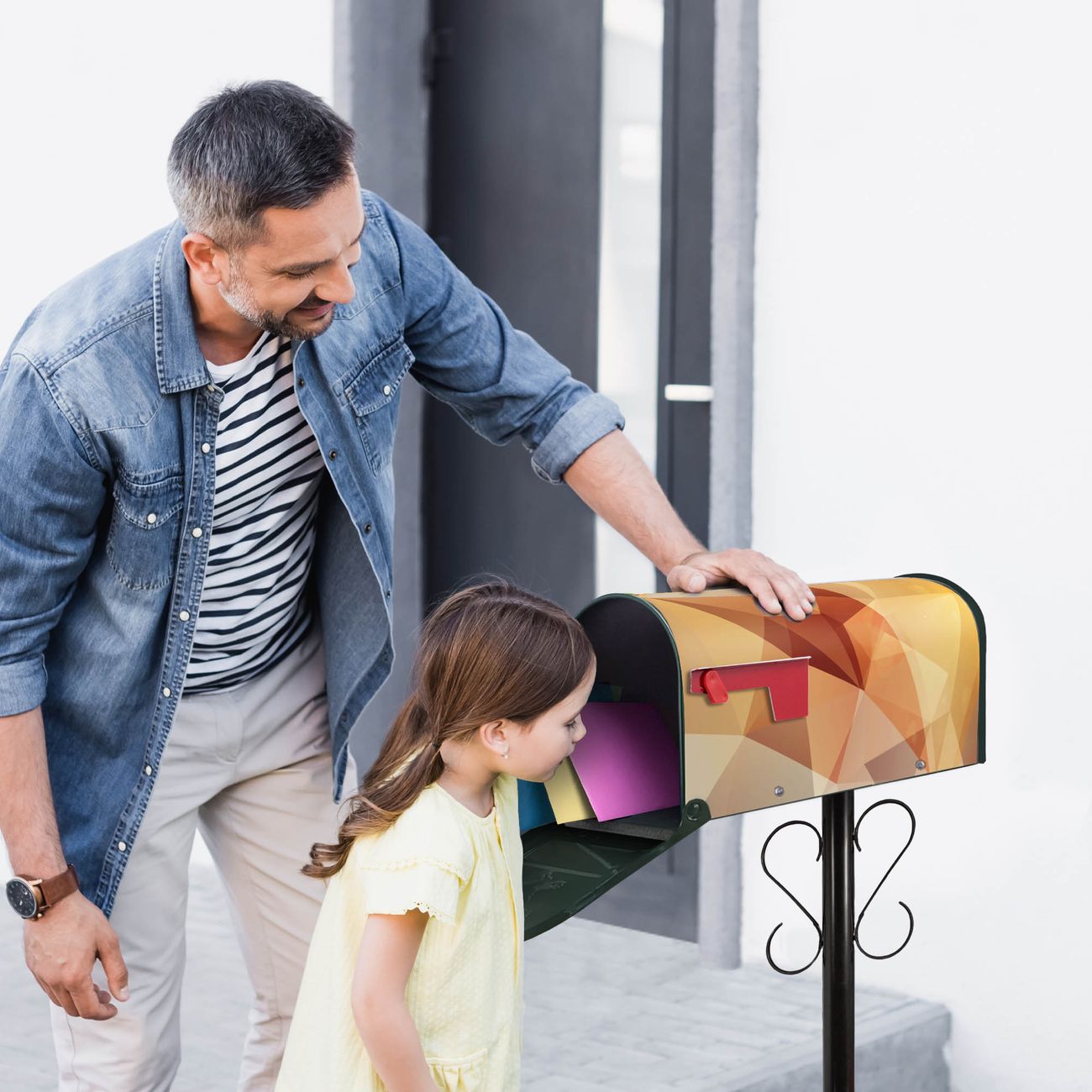 Der amerikanische Briefkasten von banjado mit Kristall Motiv bietet Ihnen ausreichend Fassungsvermögen, um große A4 Sendungen und Zeitschriften zu empfangen. Die typisch amerikanische rote Fahne zeigt Ihnen an, wenn Sie Post erhalten haben. Die US-Mailbox besteht aus verzinktem Stahlblech welches lackiert wurde und ist 48 x 22 x 16 CM (BxHxT) groß. Die Folie mit Motiv Kristall besteht aus einer wetter- und UV-resistenten Folie, die mit einem Schutzlaminat überzogen ist, sodass die US Mailbox zusätzlich vor Kratzern geschützt ist. An der Unterkante sind 4 Löcher je Seite um die Mailbox, typisch amerikanisch, an einem Holzpfahl oder einem Zaun zu befestigen. Auf Wunsch können Sie bei uns den passenden Standfuß oder die passende Wandhalterung kaufen um die US-Mailbox sicher zu befestigen. Wir bieten Ihnen ebenfalls Namensschilder, bereits beschriftet oder frei zu beschriften, und verschiedene selbst gestaltete Bitte-Keine-Werbung-Aufkleber.