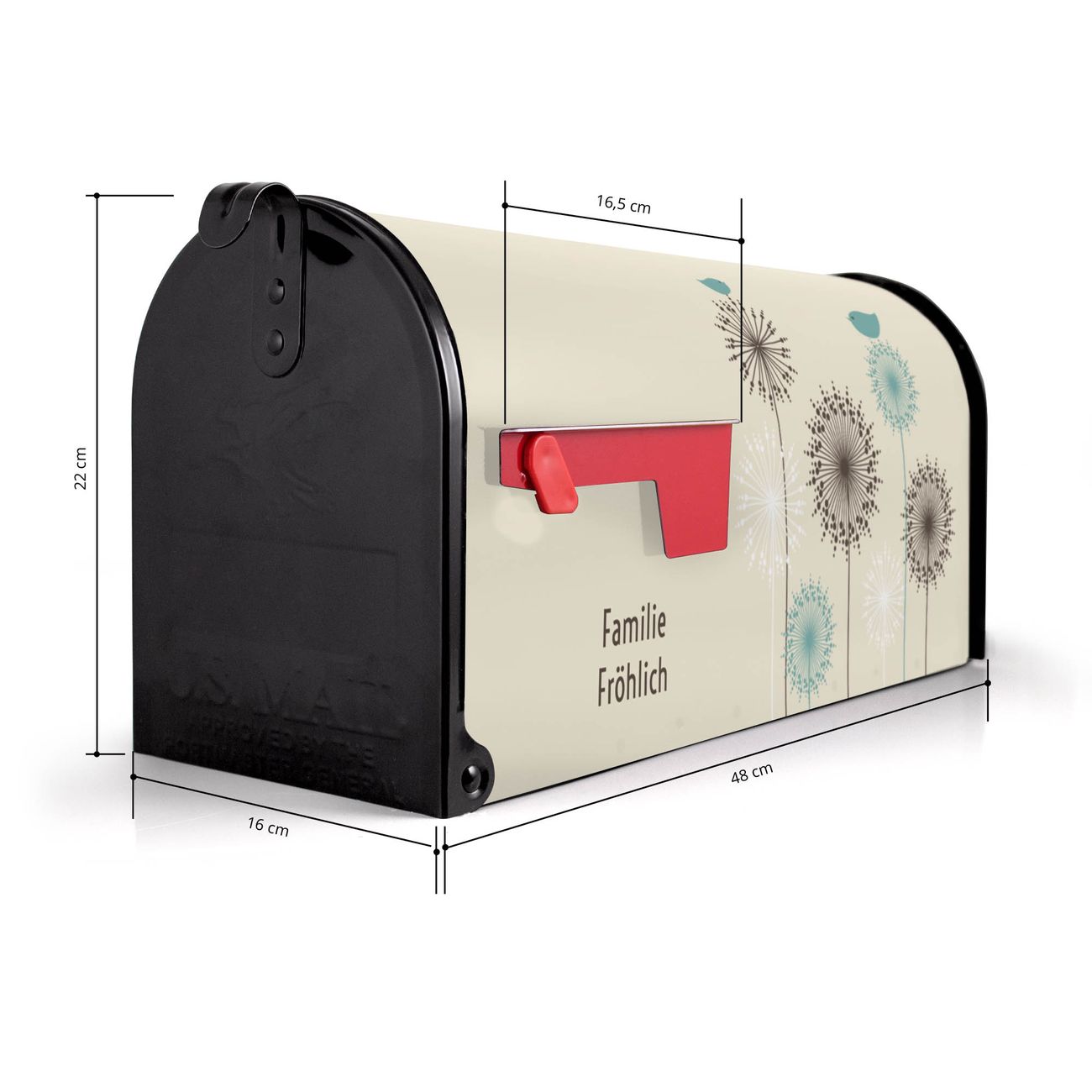 Der amerikanische Briefkasten von banjado mit Kugelfontänen Motiv bietet Ihnen ausreichend Fassungsvermögen, um große A4 Sendungen und Zeitschriften zu empfangen. Die typisch amerikanische rote Fahne zeigt Ihnen an, wenn Sie Post erhalten haben. Die US-Mailbox besteht aus verzinktem Stahlblech welches lackiert wurde und ist 48 x 22 x 16 CM (BxHxT) groß. Die Folie mit Motiv Kugelfontänen besteht aus einer wetter- und UV-resistenten Folie, die mit einem Schutzlaminat überzogen ist, sodass die US Mailbox zusätzlich vor Kratzern geschützt ist. An der Unterkante sind 4 Löcher je Seite um die Mailbox, typisch amerikanisch, an einem Holzpfahl oder einem Zaun zu befestigen. Auf Wunsch können Sie bei uns den passenden Standfuß oder die passende Wandhalterung kaufen um die US-Mailbox sicher zu befestigen. Wir bieten Ihnen ebenfalls Namensschilder, bereits beschriftet oder frei zu beschriften, und verschiedene selbst gestaltete Bitte-Keine-Werbung-Aufkleber.
