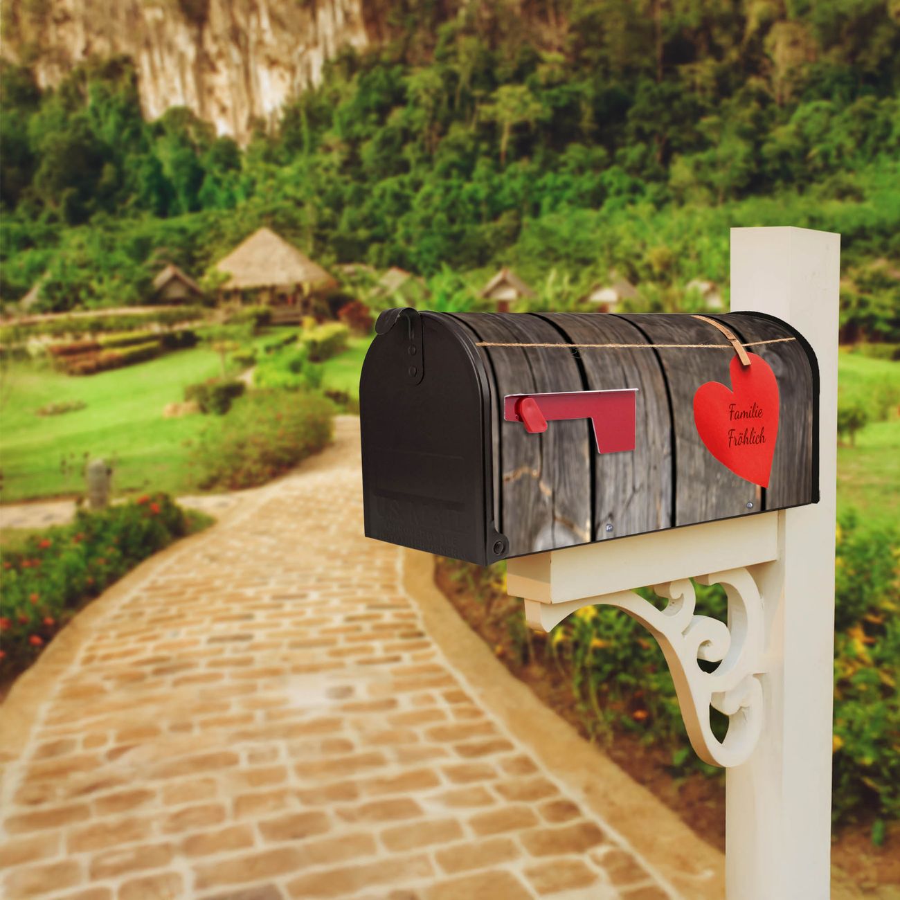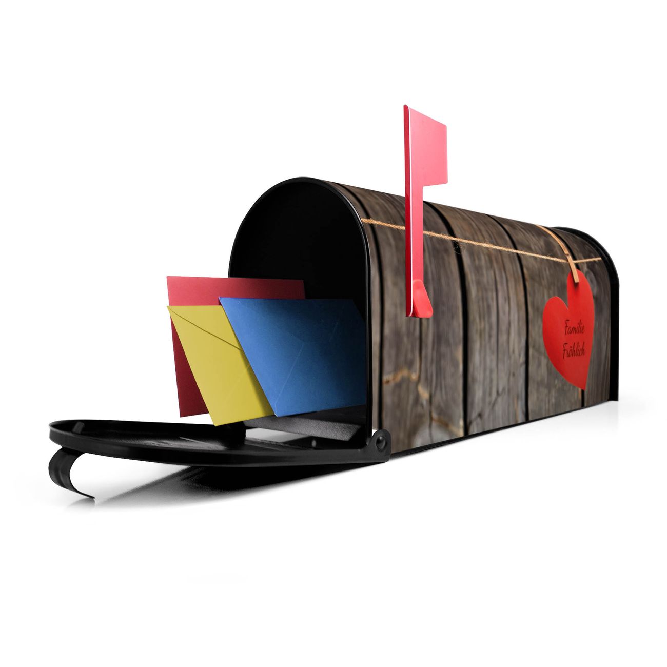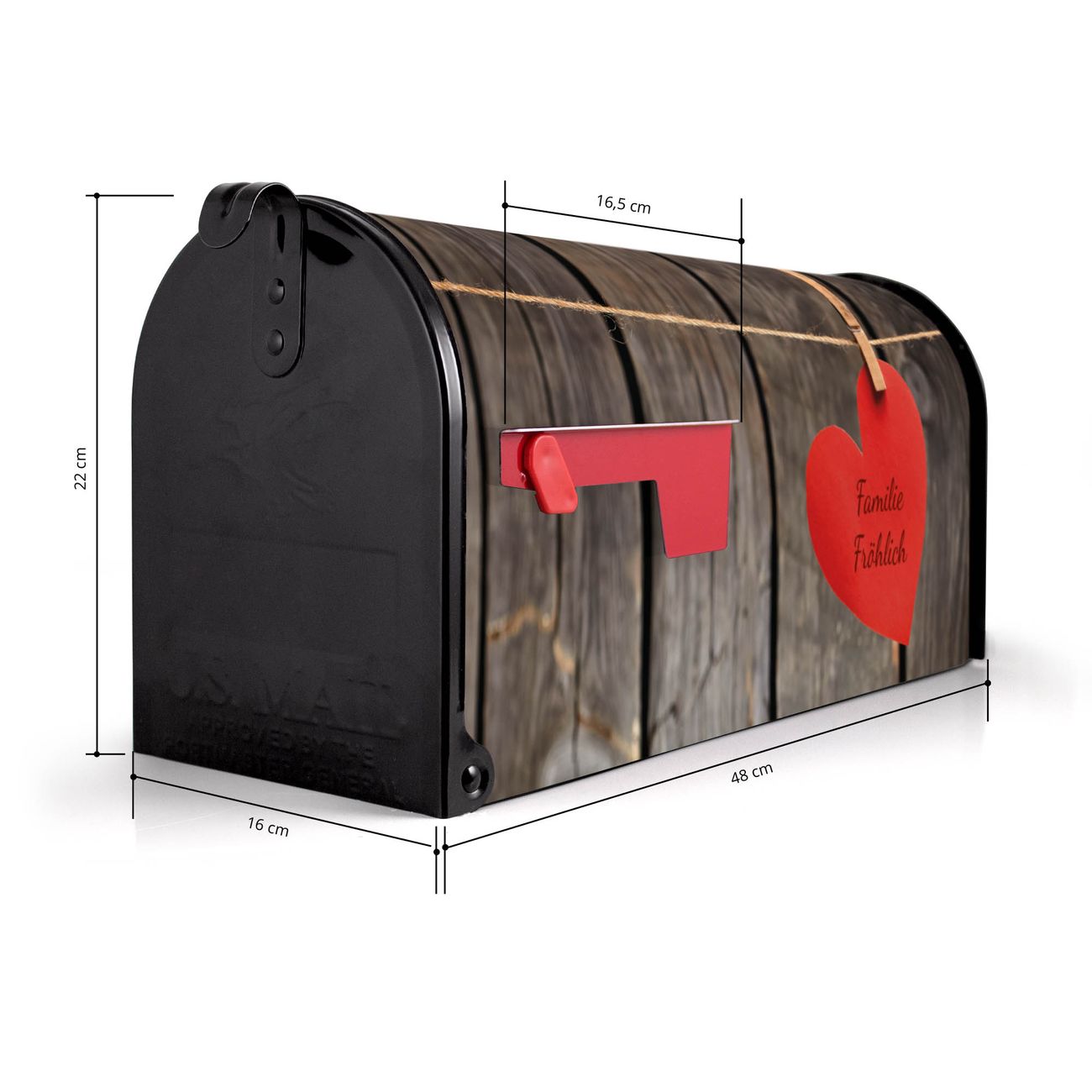 Der amerikanische Briefkasten von banjado mit Kurznachricht Motiv bietet Ihnen ausreichend Fassungsvermögen, um große A4 Sendungen und Zeitschriften zu empfangen. Die typisch amerikanische rote Fahne zeigt Ihnen an, wenn Sie Post erhalten haben. Die US-Mailbox besteht aus verzinktem Stahlblech welches lackiert wurde und ist 48 x 22 x 16 CM (BxHxT) groß. Die Folie mit Motiv Kurznachricht besteht aus einer wetter- und UV-resistenten Folie, die mit einem Schutzlaminat überzogen ist, sodass die US Mailbox zusätzlich vor Kratzern geschützt ist. An der Unterkante sind 4 Löcher je Seite um die Mailbox, typisch amerikanisch, an einem Holzpfahl oder einem Zaun zu befestigen. Auf Wunsch können Sie bei uns den passenden Standfuß oder die passende Wandhalterung kaufen um die US-Mailbox sicher zu befestigen. Wir bieten Ihnen ebenfalls Namensschilder, bereits beschriftet oder frei zu beschriften, und verschiedene selbst gestaltete Bitte-Keine-Werbung-Aufkleber.