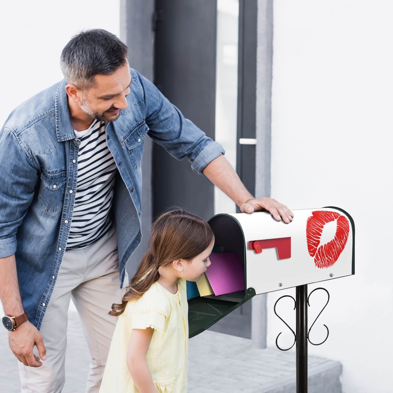 Unser amerikanischer Briefkasten mit dem Motiv Kussmund hat ein sehr ansprechendes und ausgefallenes Design, ist in der Grundfarbe weiß, grün oder schwarz erhältlich. Damit entlocken Sie Ihren Nachbarn und dem Postboten immer wieder ein Lächeln. Die Mailbox ist ein Original Import aus Mississippi USA und wird von unserer kleinen Manufaktur in Sachsen von Hand veredelt. Die US-Mailbox bietet ausreichend Platz auch für große Sendungen, eine Fahne die Ihnen Post anzeigt, wetterfestes und äußerst stabiles Material - so macht Post empfangen Freude.