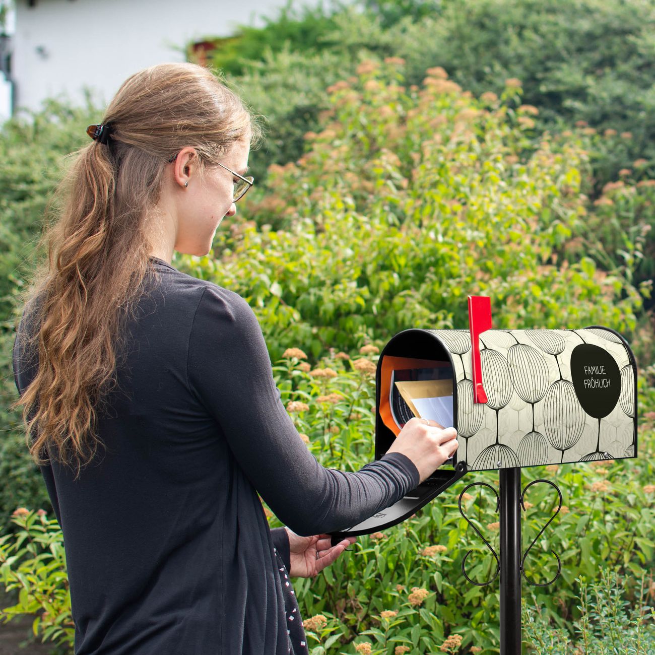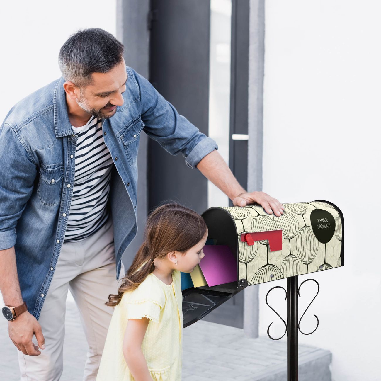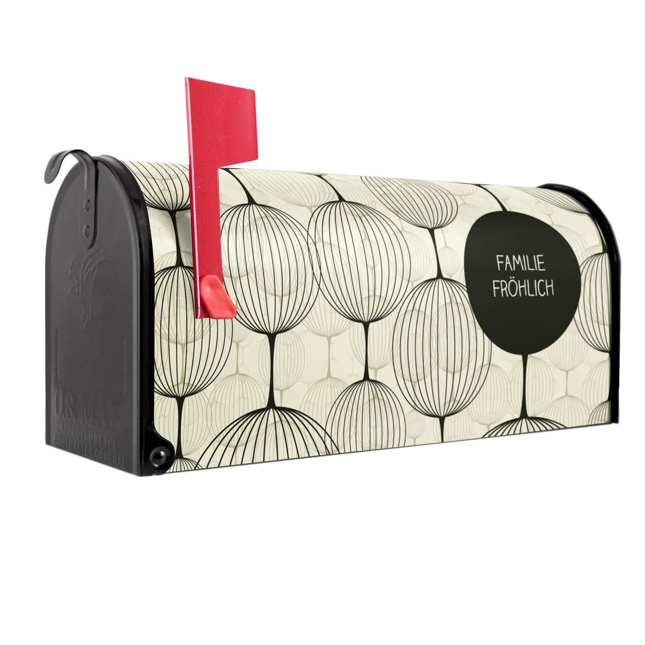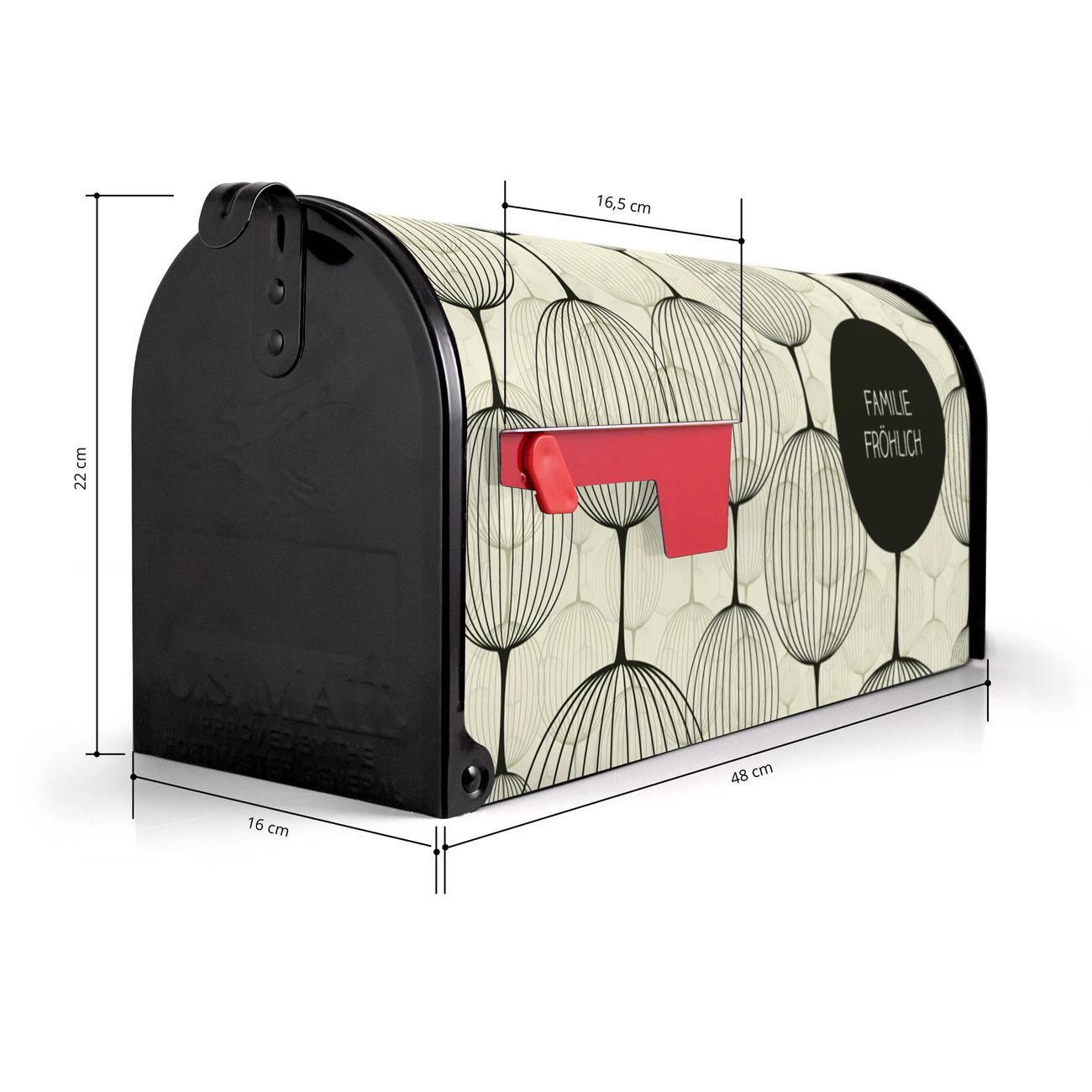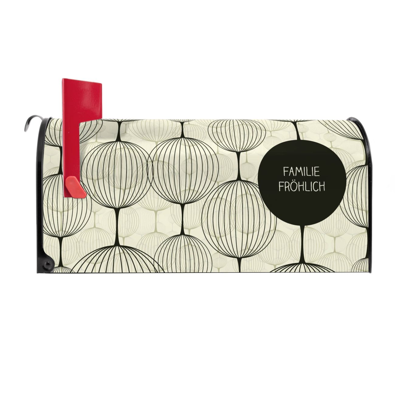 Der amerikanische Briefkasten von banjado mit Lampions Motiv bietet Ihnen ausreichend Fassungsvermögen, um große A4 Sendungen und Zeitschriften zu empfangen. Die typisch amerikanische rote Fahne zeigt Ihnen an, wenn Sie Post erhalten haben. Die US-Mailbox besteht aus verzinktem Stahlblech welches lackiert wurde und ist 48 x 22 x 16 CM (BxHxT) groß. Die Folie mit Motiv Lampions besteht aus einer wetter- und UV-resistenten Folie, die mit einem Schutzlaminat überzogen ist, sodass die US Mailbox zusätzlich vor Kratzern geschützt ist. An der Unterkante sind 4 Löcher je Seite um die Mailbox, typisch amerikanisch, an einem Holzpfahl oder einem Zaun zu befestigen. Auf Wunsch können Sie bei uns den passenden Standfuß oder die passende Wandhalterung kaufen um die US-Mailbox sicher zu befestigen. Wir bieten Ihnen ebenfalls Namensschilder, bereits beschriftet oder frei zu beschriften, und verschiedene selbst gestaltete Bitte-Keine-Werbung-Aufkleber.
