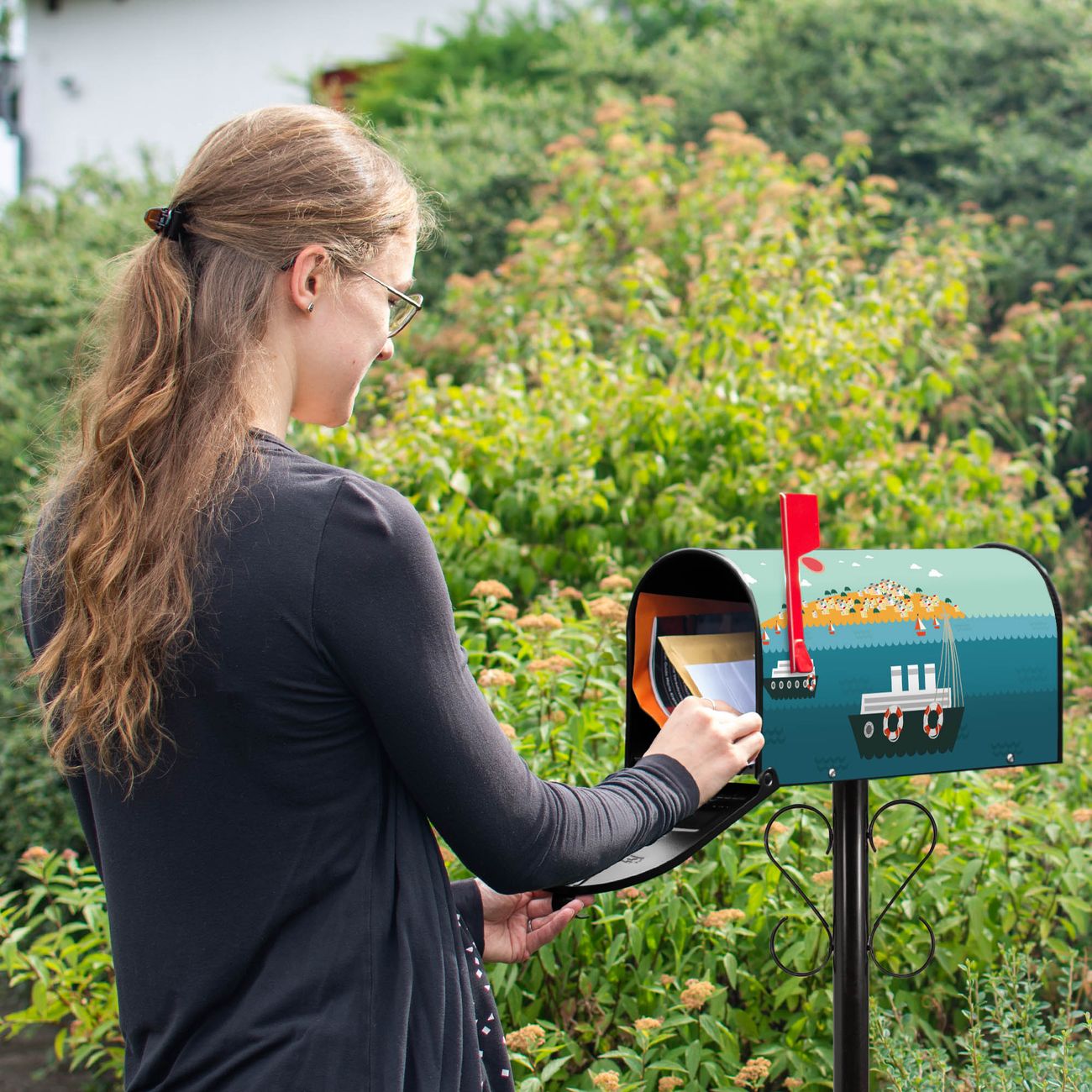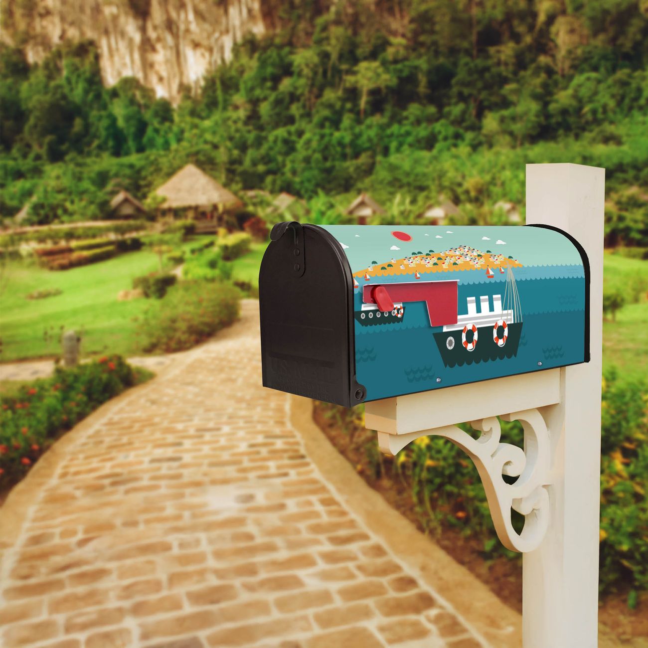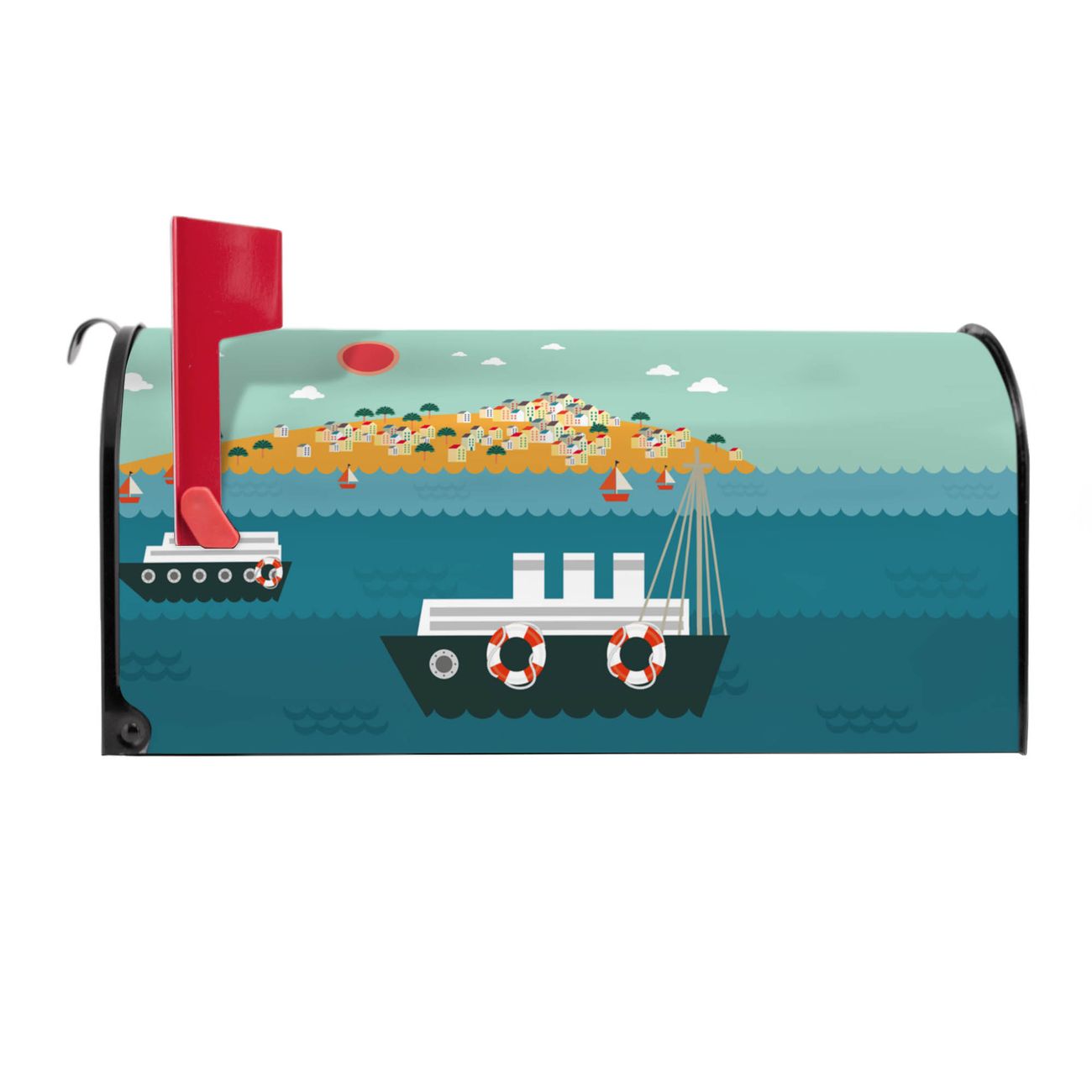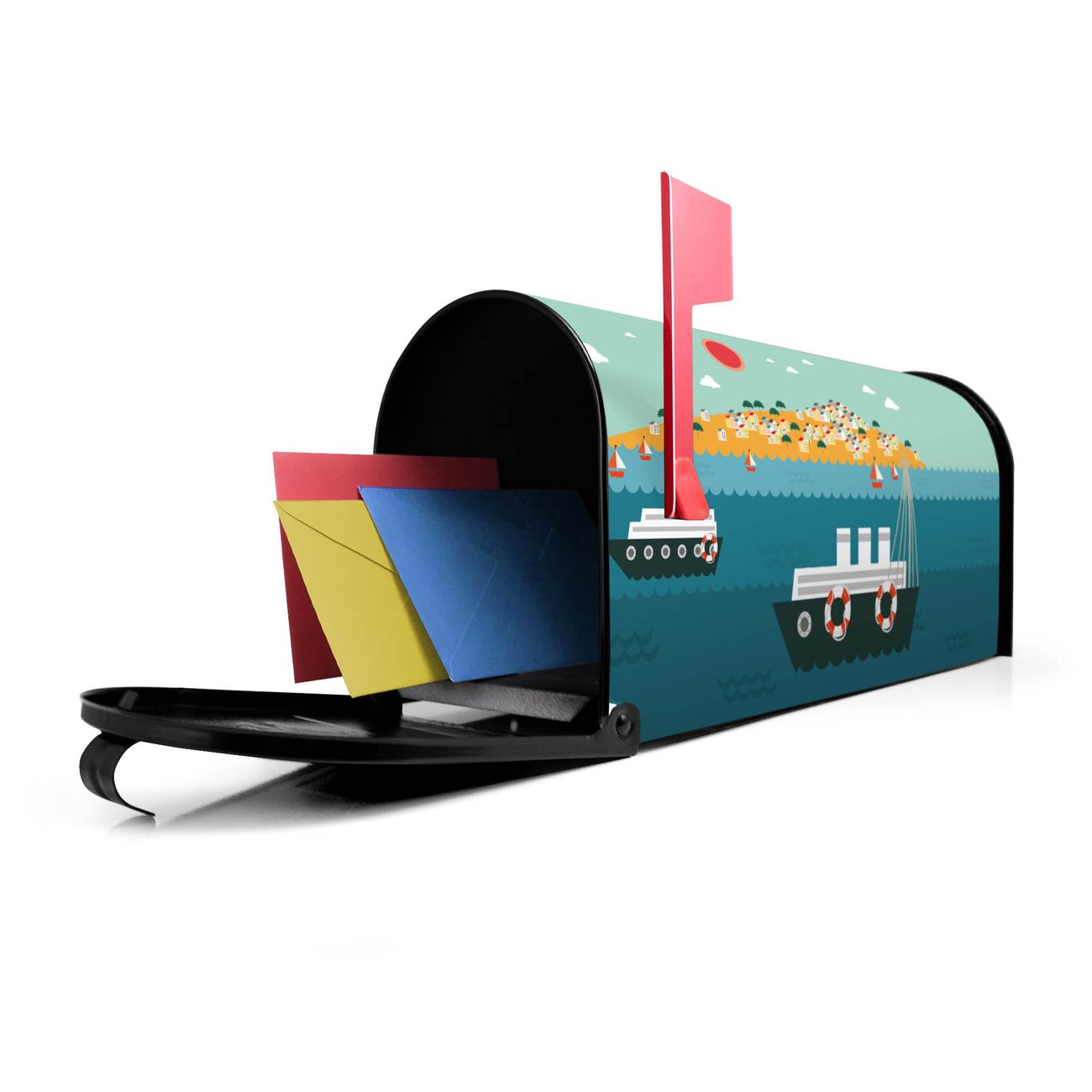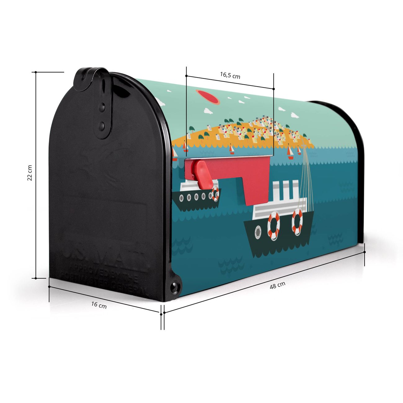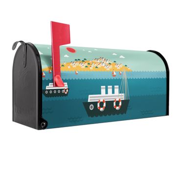 Unser amerikanischer Briefkasten mit dem Motiv Land in Sicht hat ein sehr ansprechendes und ausgefallenes Design, ist in der Grundfarbe weiß, grün oder schwarz erhältlich. Damit entlocken Sie Ihren Nachbarn und dem Postboten immer wieder ein Lächeln. Die Mailbox ist ein Original Import aus Mississippi USA und wird von unserer kleinen Manufaktur in Sachsen von Hand veredelt. Die US-Mailbox bietet ausreichend Platz auch für große Sendungen, eine Fahne die Ihnen Post anzeigt, wetterfestes und äußerst stabiles Material - so macht Post empfangen Freude.
