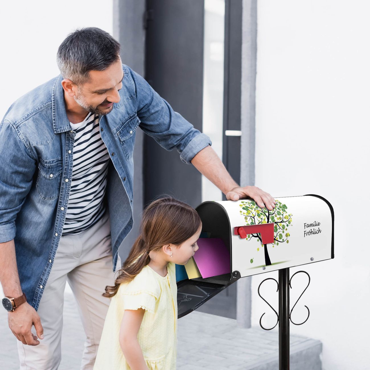 Unser amerikanischer Briefkasten mit dem Motiv WT Laubzauberbaum hat ein sehr ansprechendes und ausgefallenes Design, ist in der Grundfarbe weiß, grün oder schwarz erhältlich. Damit entlocken Sie Ihren Nachbarn und dem Postboten immer wieder ein Lächeln. Die Mailbox ist ein Original Import aus Mississippi USA und wird von unserer kleinen Manufaktur in Sachsen von Hand veredelt. Die US-Mailbox bietet ausreichend Platz auch für große Sendungen, eine Fahne die Ihnen Post anzeigt, wetterfestes und äußerst stabiles Material - so macht Post empfangen Freude.