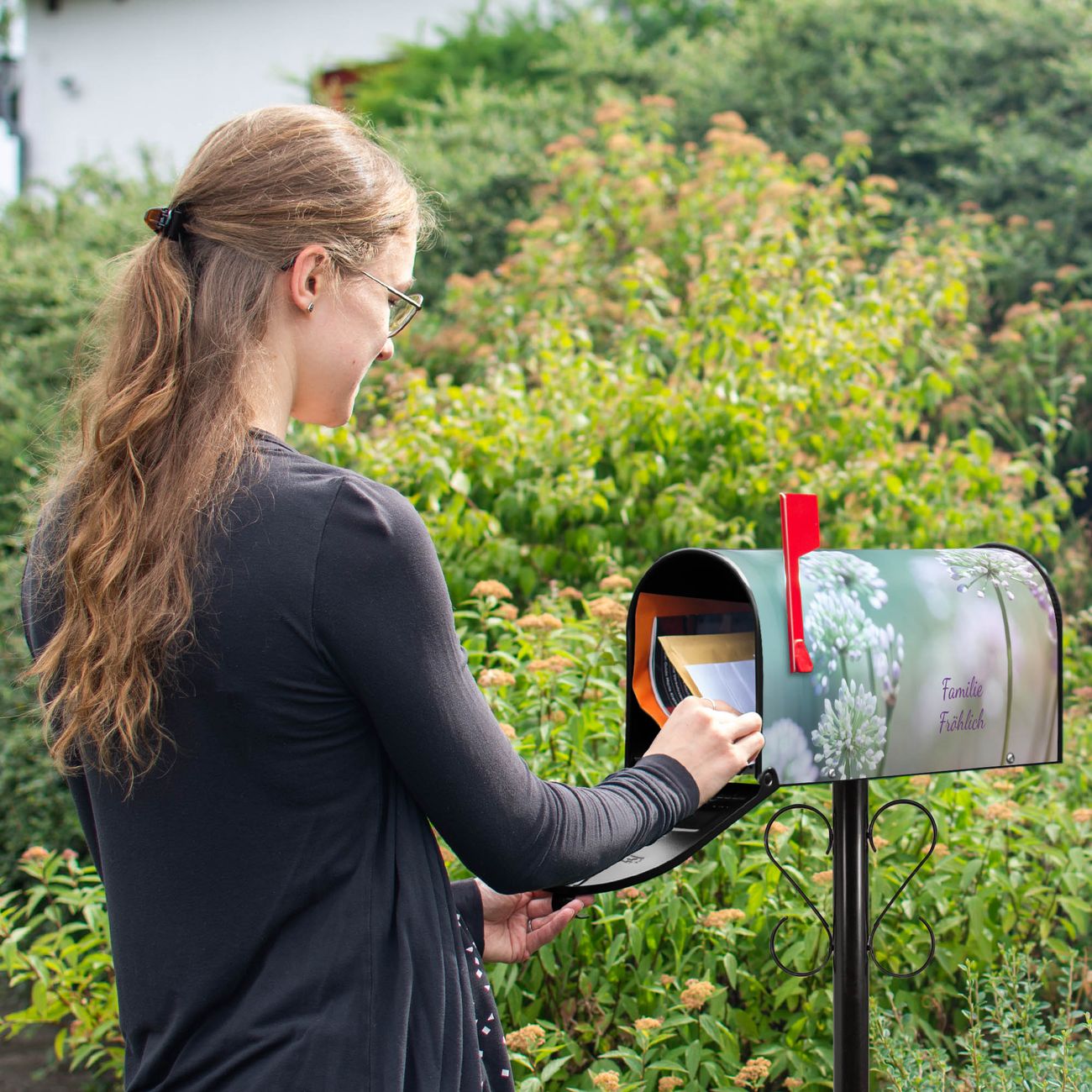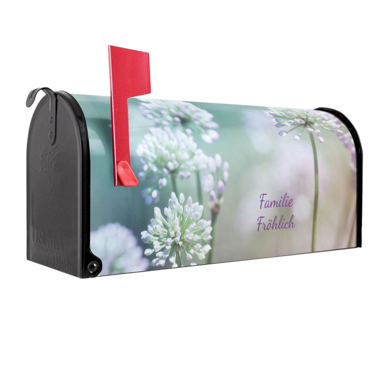 Unser amerikanischer Briefkasten mit dem Motiv Lauchblüte hat ein sehr ansprechendes und ausgefallenes Design, ist in der Grundfarbe weiß, grün oder schwarz erhältlich. Damit entlocken Sie Ihren Nachbarn und dem Postboten immer wieder ein Lächeln. Die Mailbox ist ein Original Import aus Mississippi USA und wird von unserer kleinen Manufaktur in Sachsen von Hand veredelt. Die US-Mailbox bietet ausreichend Platz auch für große Sendungen, eine Fahne die Ihnen Post anzeigt, wetterfestes und äußerst stabiles Material - so macht Post empfangen Freude.