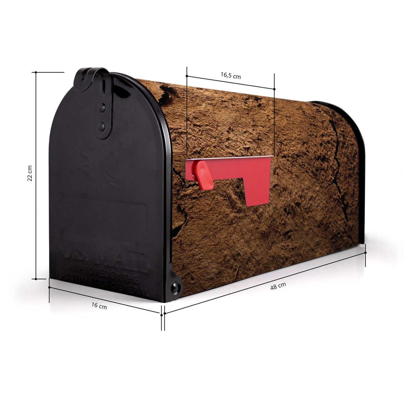 Der amerikanische Briefkasten von banjado mit Lehmboden Motiv bietet Ihnen ausreichend Fassungsvermögen, um große A4 Sendungen und Zeitschriften zu empfangen. Die typisch amerikanische rote Fahne zeigt Ihnen an, wenn Sie Post erhalten haben. Die US-Mailbox besteht aus verzinktem Stahlblech welches lackiert wurde und ist 48 x 22 x 16 CM (BxHxT) groß. Die Folie mit Motiv Lehmboden besteht aus einer wetter- und UV-resistenten Folie, die mit einem Schutzlaminat überzogen ist, sodass die US Mailbox zusätzlich vor Kratzern geschützt ist. An der Unterkante sind 4 Löcher je Seite um die Mailbox, typisch amerikanisch, an einem Holzpfahl oder einem Zaun zu befestigen. Auf Wunsch können Sie bei uns den passenden Standfuß oder die passende Wandhalterung kaufen um die US-Mailbox sicher zu befestigen. Wir bieten Ihnen ebenfalls Namensschilder, bereits beschriftet oder frei zu beschriften, und verschiedene selbst gestaltete Bitte-Keine-Werbung-Aufkleber.