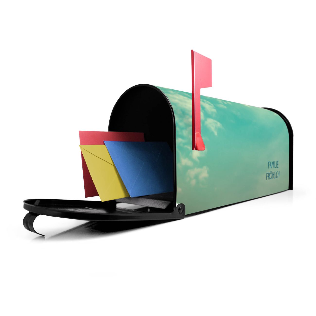 Unser amerikanischer Briefkasten mit dem Motiv Leicht Bewölkt hat ein sehr ansprechendes und ausgefallenes Design, ist in der Grundfarbe weiß, grün oder schwarz erhältlich. Damit entlocken Sie Ihren Nachbarn und dem Postboten immer wieder ein Lächeln. Die Mailbox ist ein Original Import aus Mississippi USA und wird von unserer kleinen Manufaktur in Sachsen von Hand veredelt. Die US-Mailbox bietet ausreichend Platz auch für große Sendungen, eine Fahne die Ihnen Post anzeigt, wetterfestes und äußerst stabiles Material - so macht Post empfangen Freude.