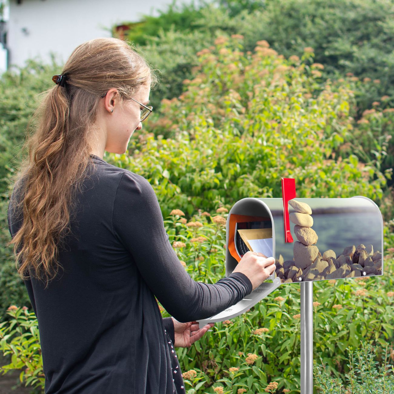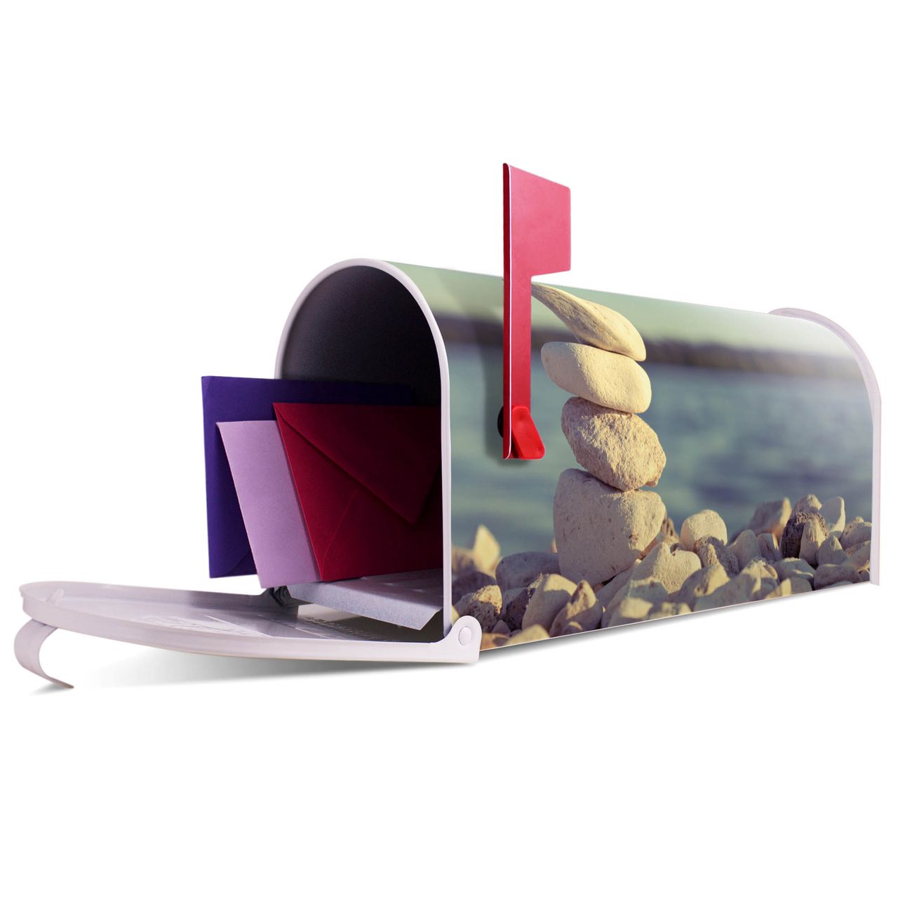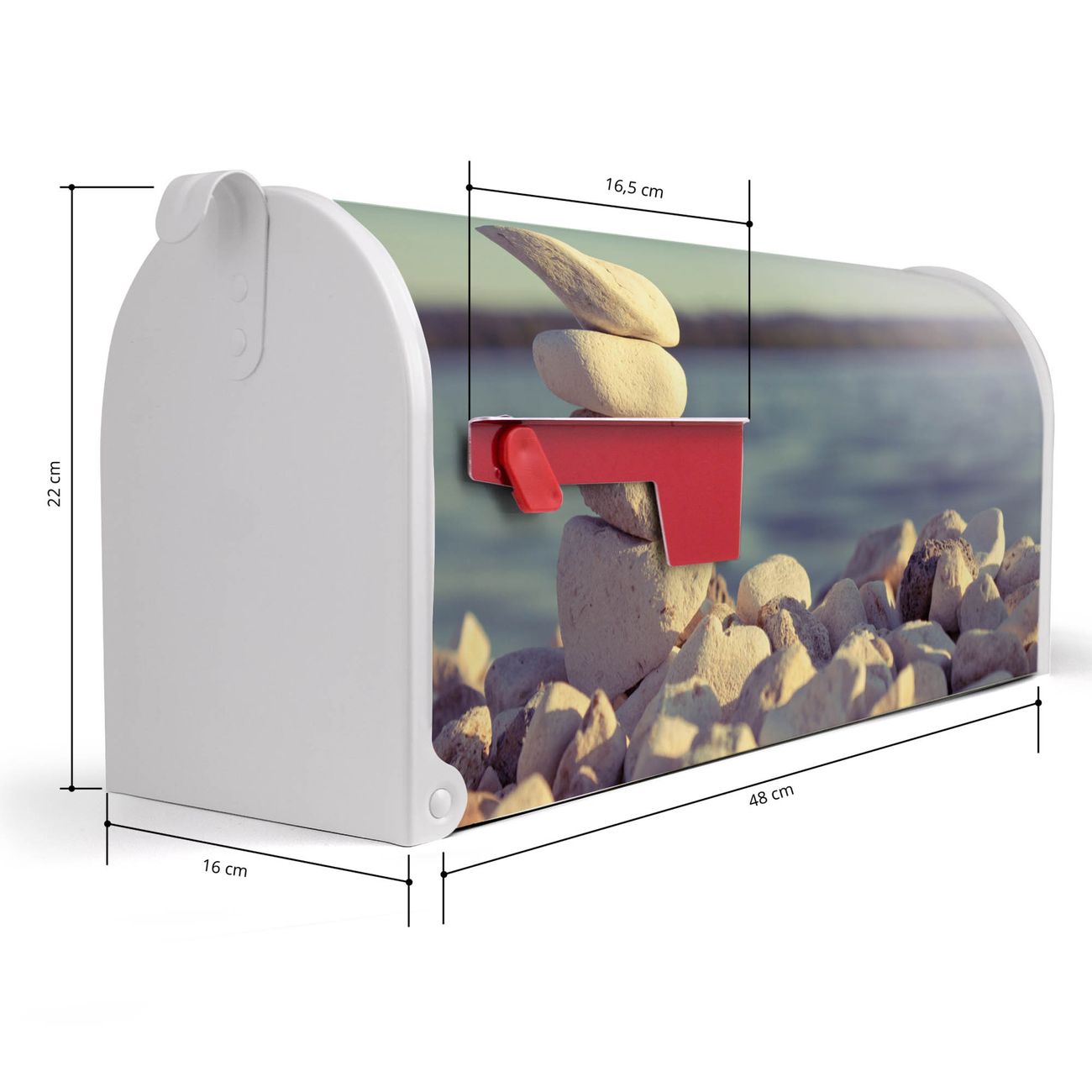 Der amerikanische Briefkasten von banjado mit Leichte Steine Motiv bietet Ihnen ausreichend Fassungsvermögen, um große A4 Sendungen und Zeitschriften zu empfangen. Die typisch amerikanische rote Fahne zeigt Ihnen an, wenn Sie Post erhalten haben. Die US-Mailbox besteht aus verzinktem Stahlblech welches lackiert wurde und ist 48 x 22 x 16 CM (BxHxT) groß. Die Folie mit Motiv Leichte Steine besteht aus einer wetter- und UV-resistenten Folie, die mit einem Schutzlaminat überzogen ist, sodass die US Mailbox zusätzlich vor Kratzern geschützt ist. An der Unterkante sind 4 Löcher je Seite um die Mailbox, typisch amerikanisch, an einem Holzpfahl oder einem Zaun zu befestigen. Auf Wunsch können Sie bei uns den passenden Standfuß oder die passende Wandhalterung kaufen um die US-Mailbox sicher zu befestigen. Wir bieten Ihnen ebenfalls Namensschilder, bereits beschriftet oder frei zu beschriften, und verschiedene selbst gestaltete Bitte-Keine-Werbung-Aufkleber.