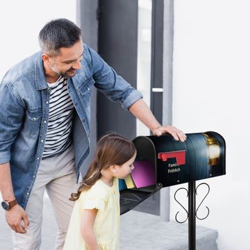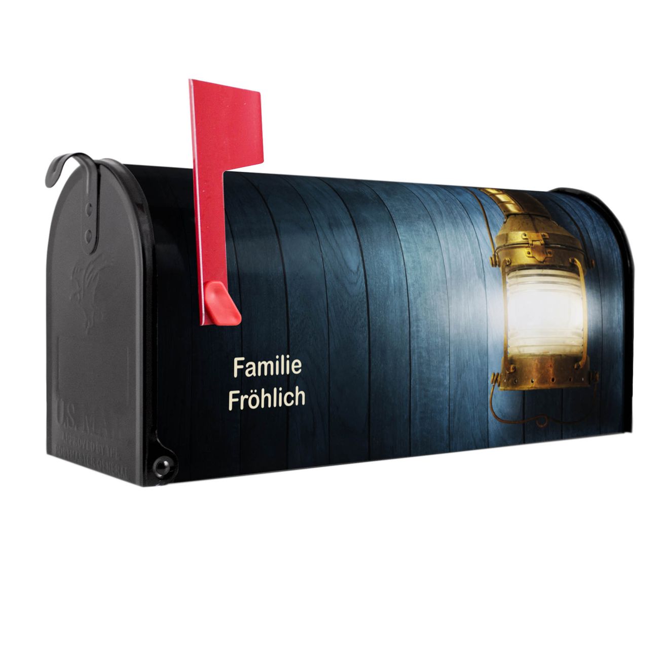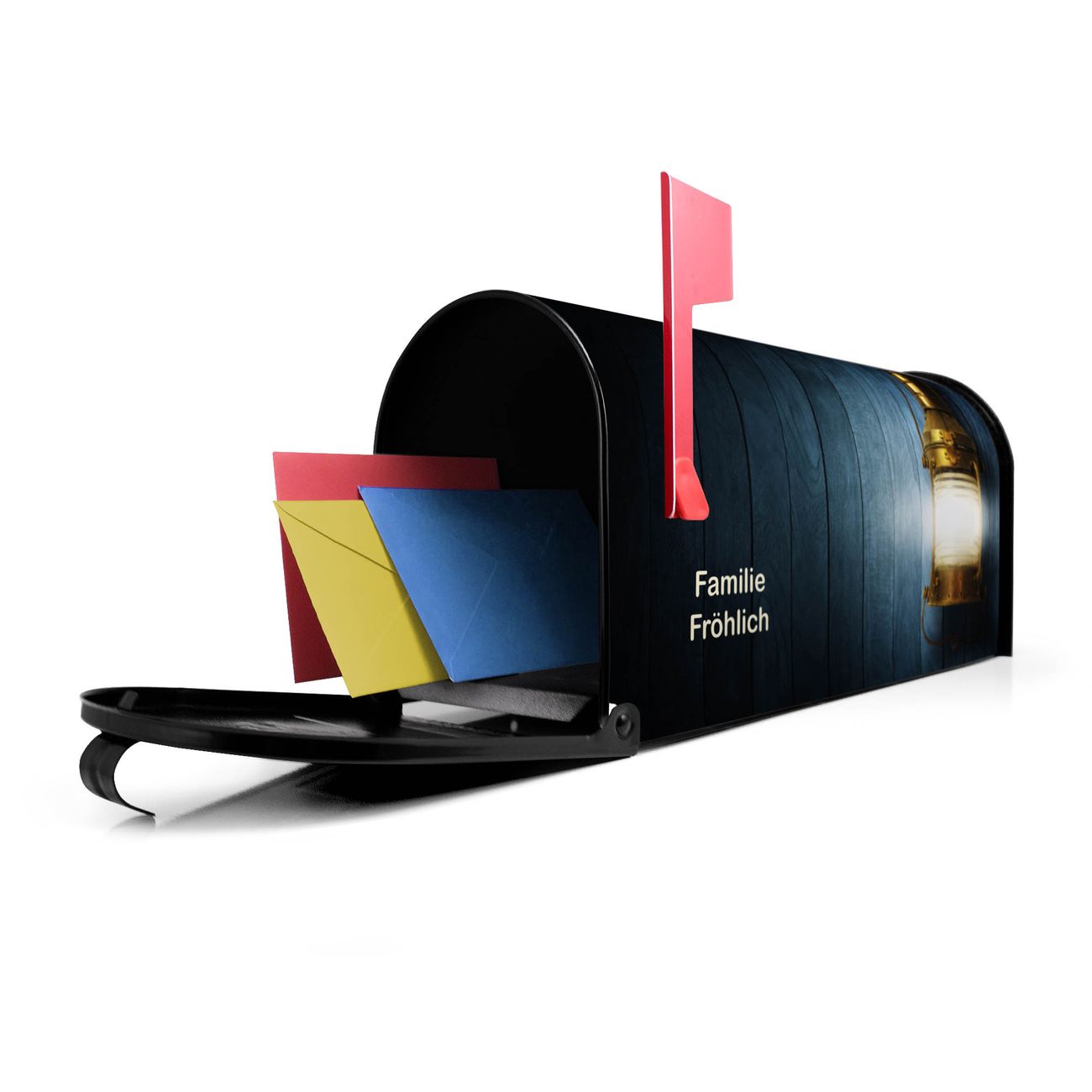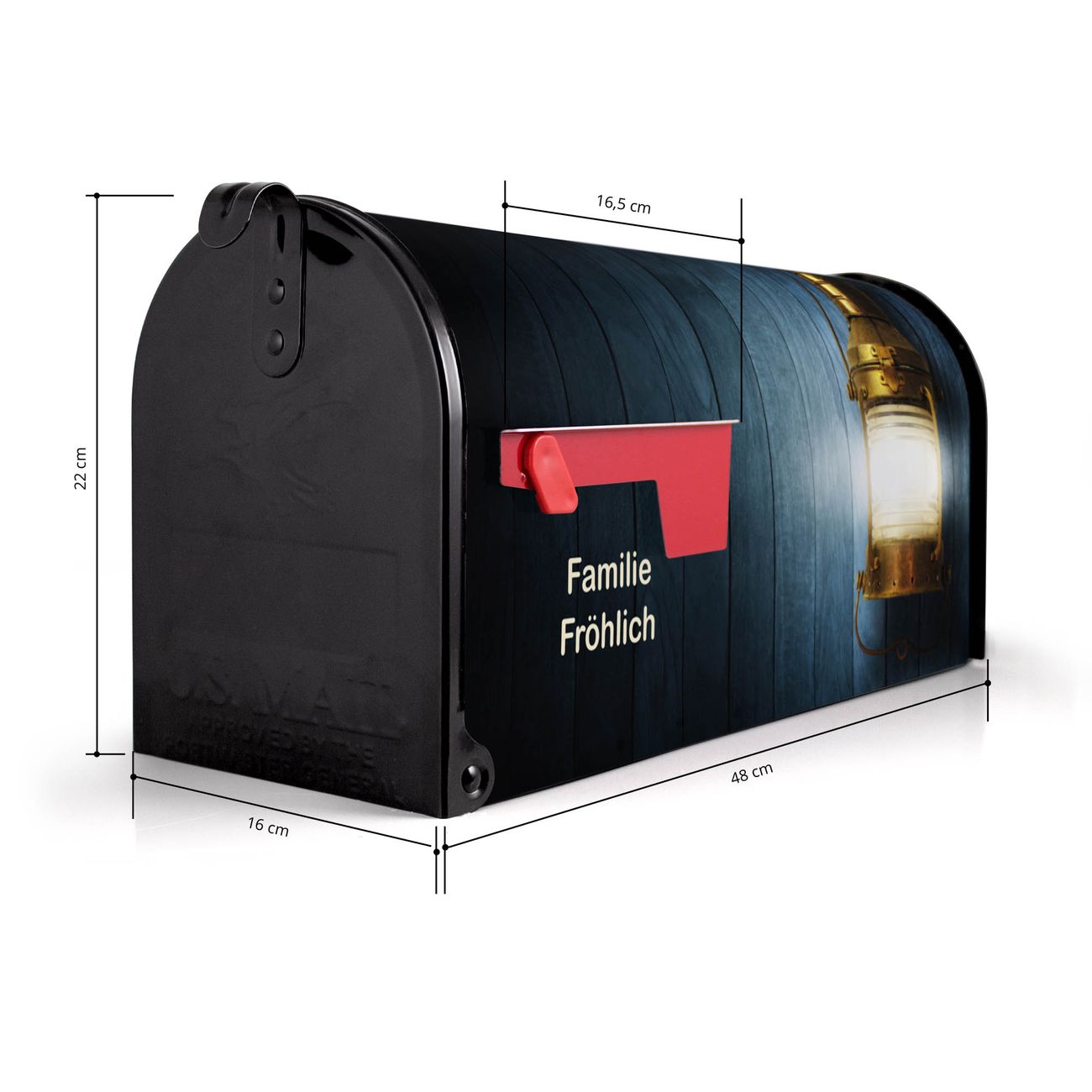 Der amerikanische Briefkasten von banjado mit Leuchte Motiv bietet Ihnen ausreichend Fassungsvermögen, um große A4 Sendungen und Zeitschriften zu empfangen. Die typisch amerikanische rote Fahne zeigt Ihnen an, wenn Sie Post erhalten haben. Die US-Mailbox besteht aus verzinktem Stahlblech welches lackiert wurde und ist 48 x 22 x 16 CM (BxHxT) groß. Die Folie mit Motiv Leuchte besteht aus einer wetter- und UV-resistenten Folie, die mit einem Schutzlaminat überzogen ist, sodass die US Mailbox zusätzlich vor Kratzern geschützt ist. An der Unterkante sind 4 Löcher je Seite um die Mailbox, typisch amerikanisch, an einem Holzpfahl oder einem Zaun zu befestigen. Auf Wunsch können Sie bei uns den passenden Standfuß oder die passende Wandhalterung kaufen um die US-Mailbox sicher zu befestigen. Wir bieten Ihnen ebenfalls Namensschilder, bereits beschriftet oder frei zu beschriften, und verschiedene selbst gestaltete Bitte-Keine-Werbung-Aufkleber.