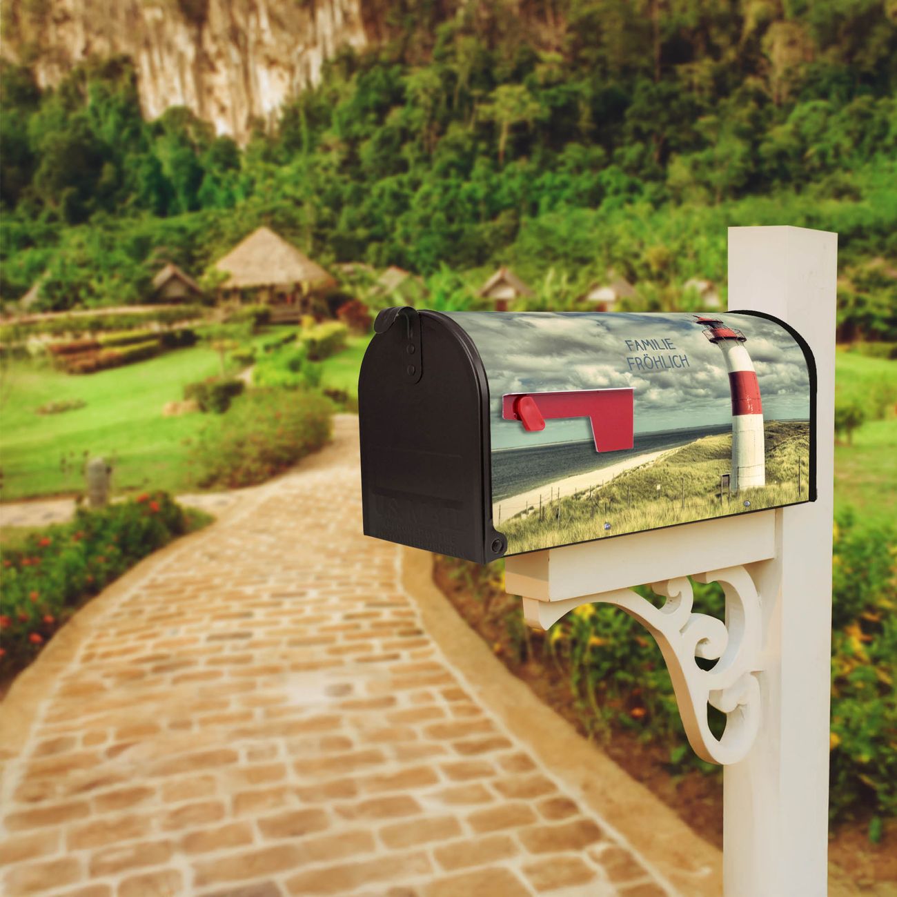 Unser amerikanischer Briefkasten mit dem Motiv Leuchtturm Sylt hat ein sehr ansprechendes und ausgefallenes Design, ist in der Grundfarbe weiß, grün oder schwarz erhältlich. Damit entlocken Sie Ihren Nachbarn und dem Postboten immer wieder ein Lächeln. Die Mailbox ist ein Original Import aus Mississippi USA und wird von unserer kleinen Manufaktur in Sachsen von Hand veredelt. Die US-Mailbox bietet ausreichend Platz auch für große Sendungen, eine Fahne die Ihnen Post anzeigt, wetterfestes und äußerst stabiles Material - so macht Post empfangen Freude.
