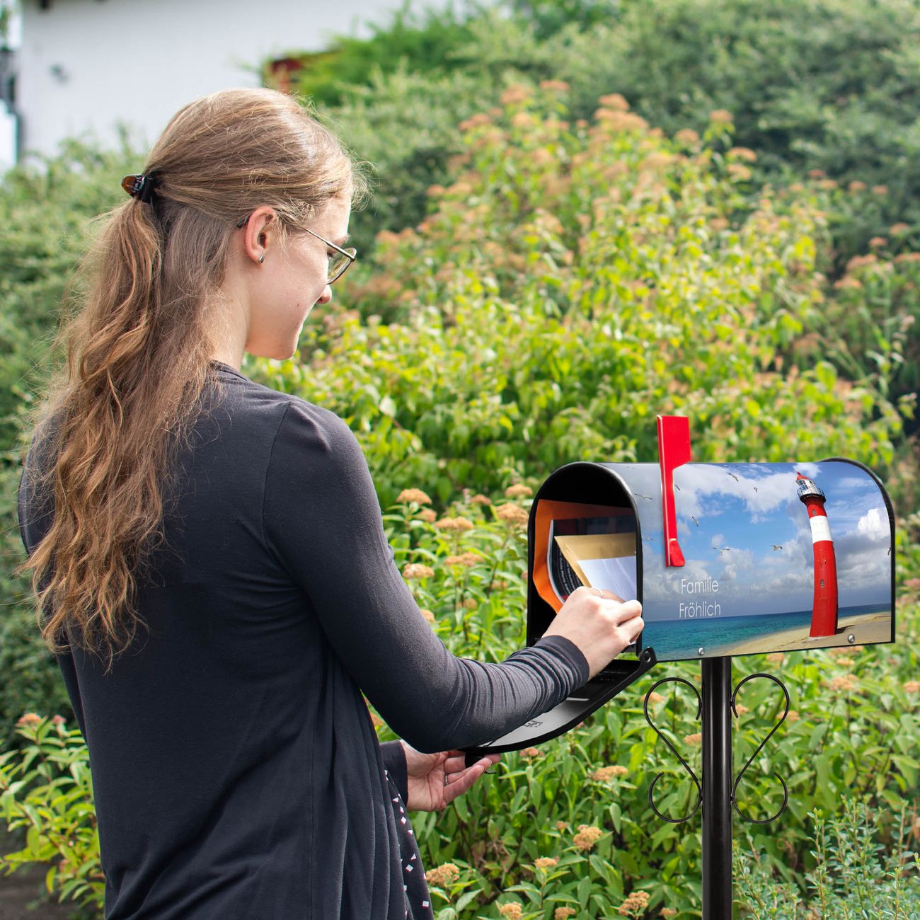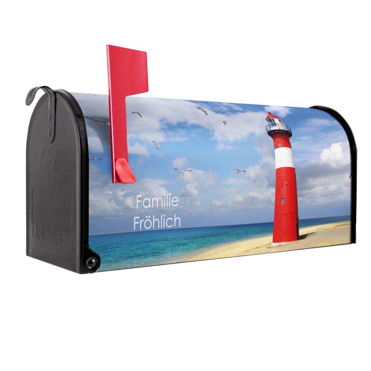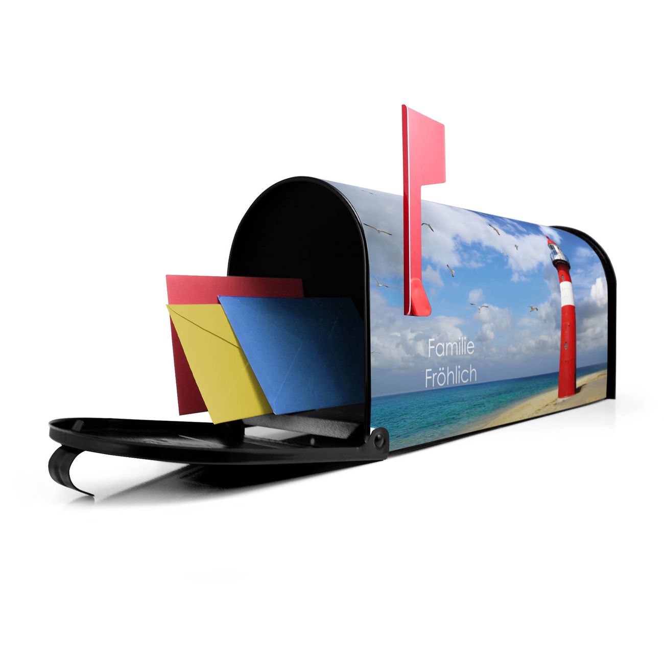 Unser amerikanischer Briefkasten mit dem Motiv Leuchtturm Westkapelle hat ein sehr ansprechendes und ausgefallenes Design, ist in der Grundfarbe weiß, grün oder schwarz erhältlich. Damit entlocken Sie Ihren Nachbarn und dem Postboten immer wieder ein Lächeln. Die Mailbox ist ein Original Import aus Mississippi USA und wird von unserer kleinen Manufaktur in Sachsen von Hand veredelt. Die US-Mailbox bietet ausreichend Platz auch für große Sendungen, eine Fahne die Ihnen Post anzeigt, wetterfestes und äußerst stabiles Material - so macht Post empfangen Freude.