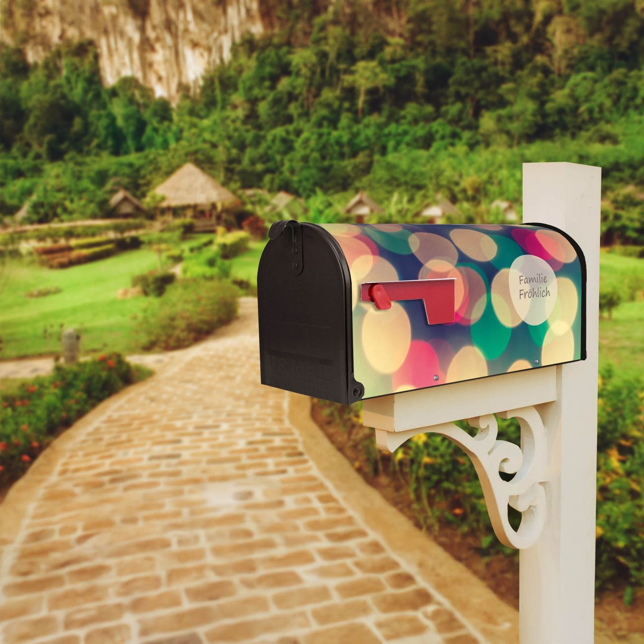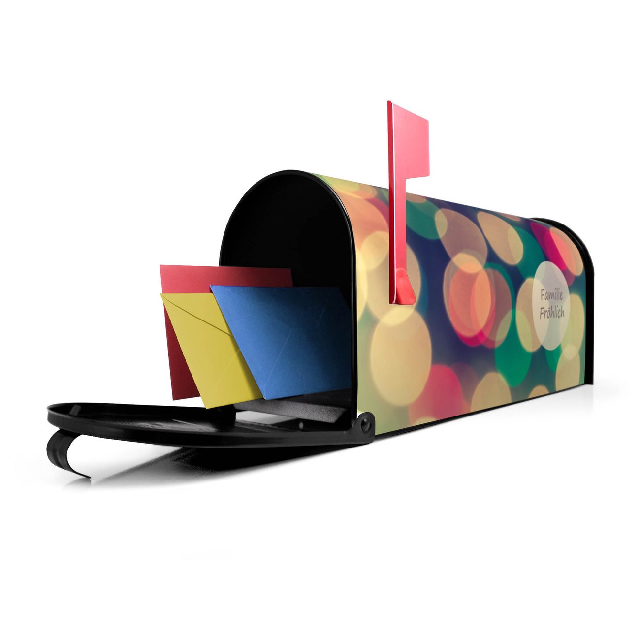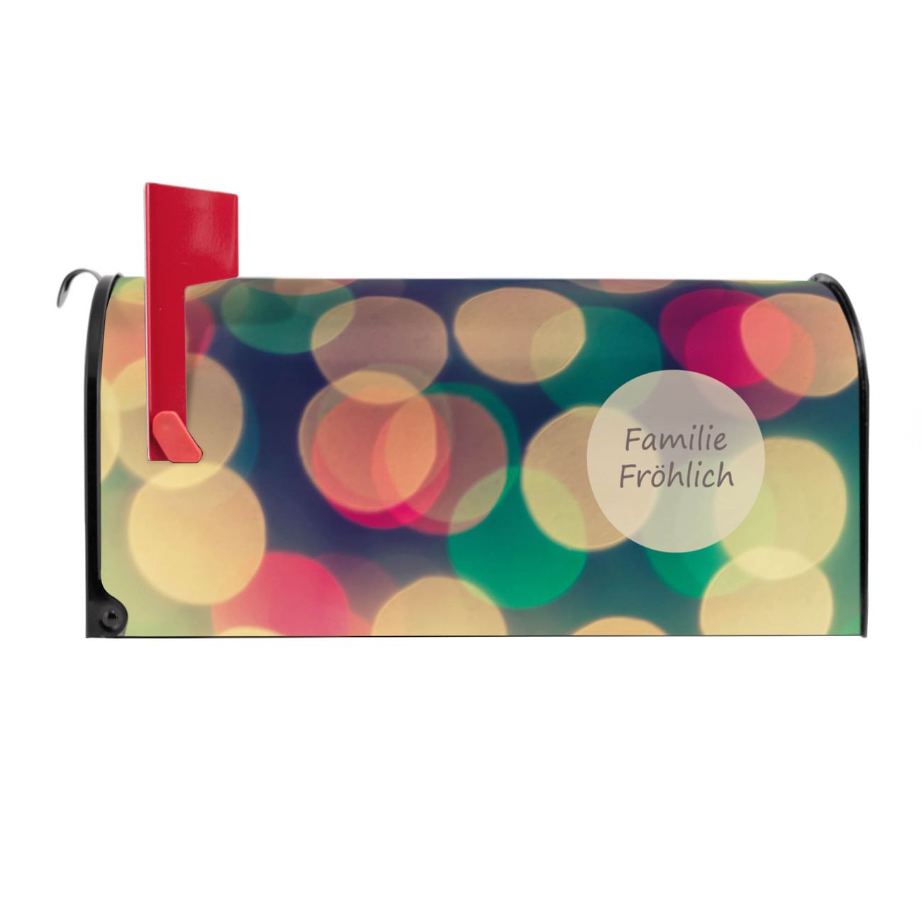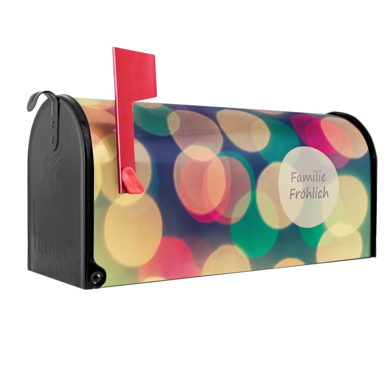 Unser amerikanischer Briefkasten mit dem Motiv Lichtpunkte Weiß Grün Rot hat ein sehr ansprechendes und ausgefallenes Design, ist in der Grundfarbe weiß, grün oder schwarz erhältlich. Damit entlocken Sie Ihren Nachbarn und dem Postboten immer wieder ein Lächeln. Die Mailbox ist ein Original Import aus Mississippi USA und wird von unserer kleinen Manufaktur in Sachsen von Hand veredelt. Die US-Mailbox bietet ausreichend Platz auch für große Sendungen, eine Fahne die Ihnen Post anzeigt, wetterfestes und äußerst stabiles Material - so macht Post empfangen Freude.