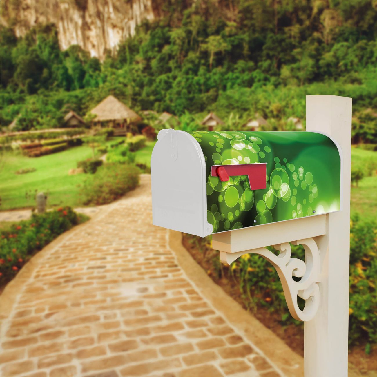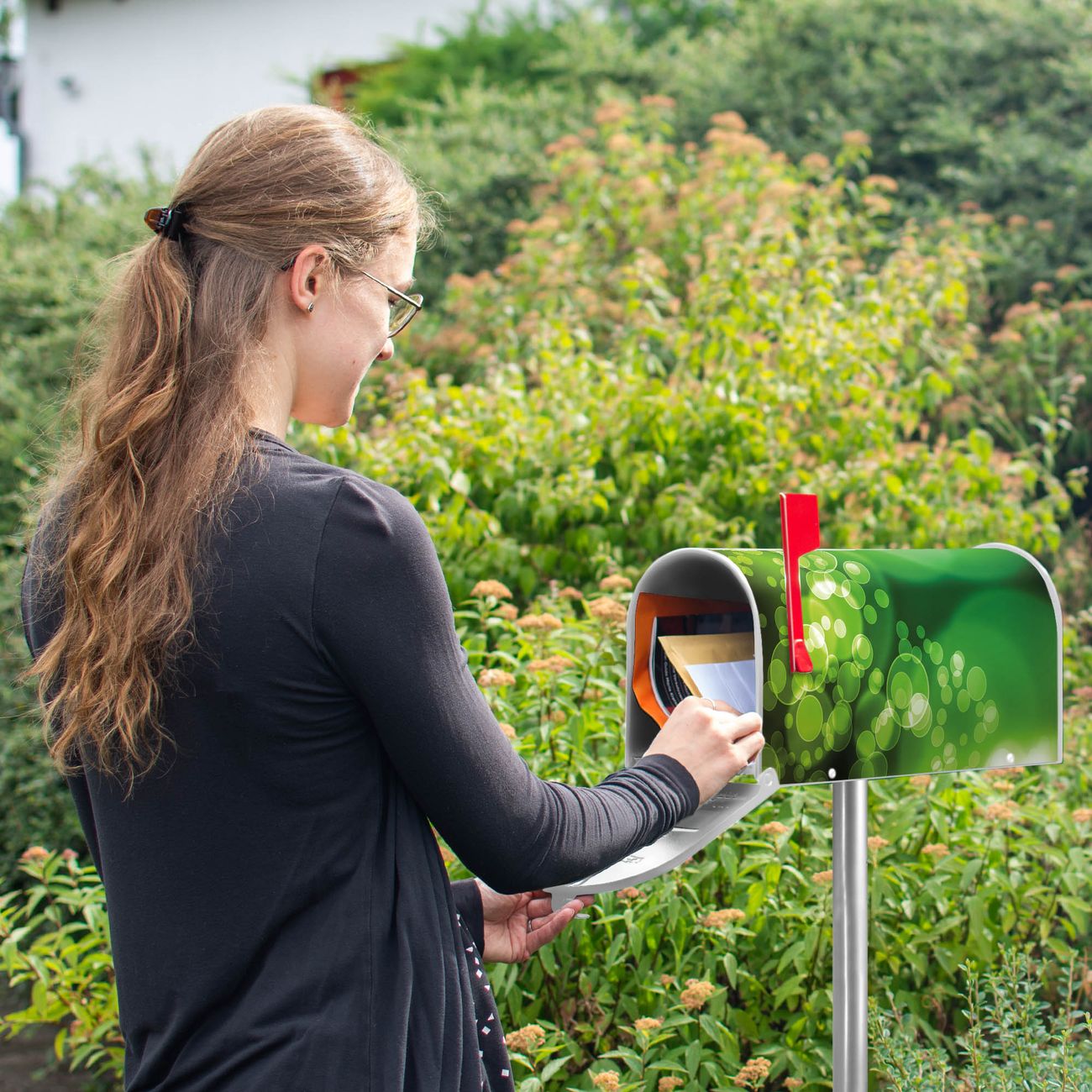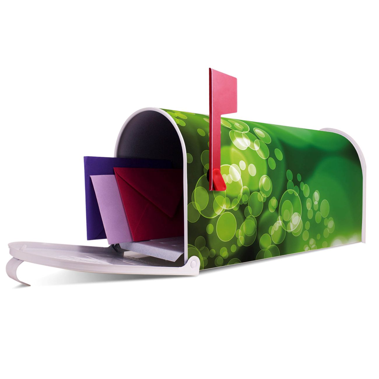 Der amerikanische Briefkasten von banjado mit Lichtspiel Motiv bietet Ihnen ausreichend Fassungsvermögen, um große A4 Sendungen und Zeitschriften zu empfangen. Die typisch amerikanische rote Fahne zeigt Ihnen an, wenn Sie Post erhalten haben. Die US-Mailbox besteht aus verzinktem Stahlblech welches lackiert wurde und ist 48 x 22 x 16 CM (BxHxT) groß. Die Folie mit Motiv Lichtspiel besteht aus einer wetter- und UV-resistenten Folie, die mit einem Schutzlaminat überzogen ist, sodass die US Mailbox zusätzlich vor Kratzern geschützt ist. An der Unterkante sind 4 Löcher je Seite um die Mailbox, typisch amerikanisch, an einem Holzpfahl oder einem Zaun zu befestigen. Auf Wunsch können Sie bei uns den passenden Standfuß oder die passende Wandhalterung kaufen um die US-Mailbox sicher zu befestigen. Wir bieten Ihnen ebenfalls Namensschilder, bereits beschriftet oder frei zu beschriften, und verschiedene selbst gestaltete Bitte-Keine-Werbung-Aufkleber.