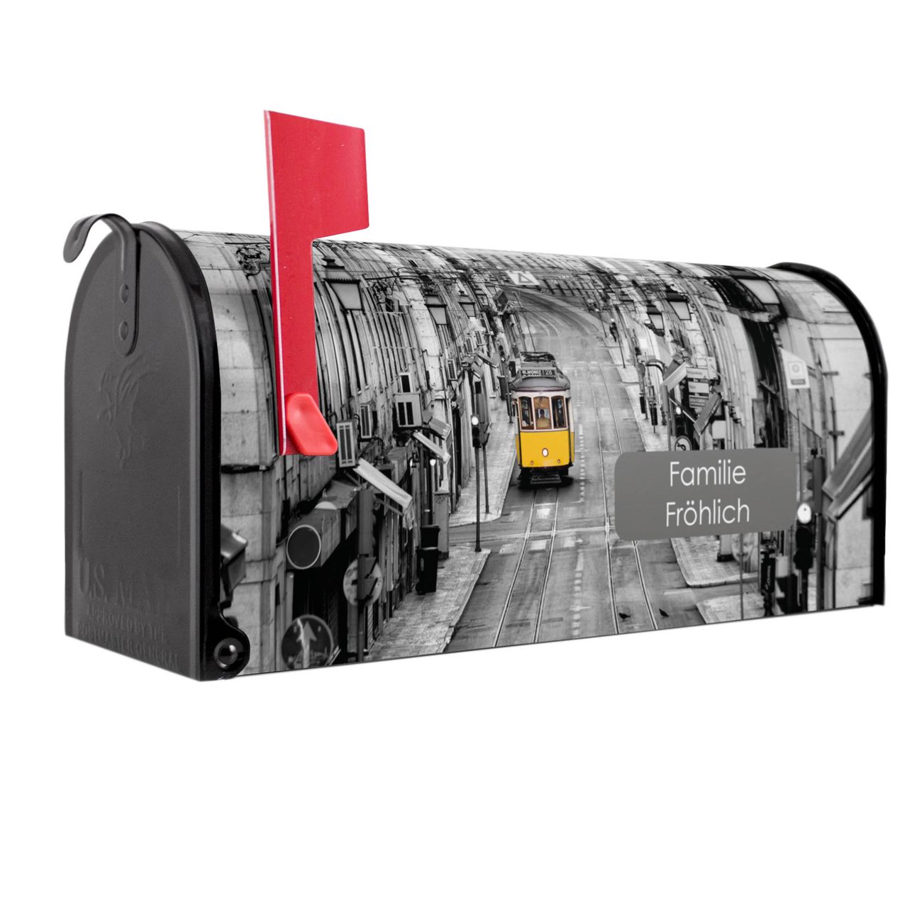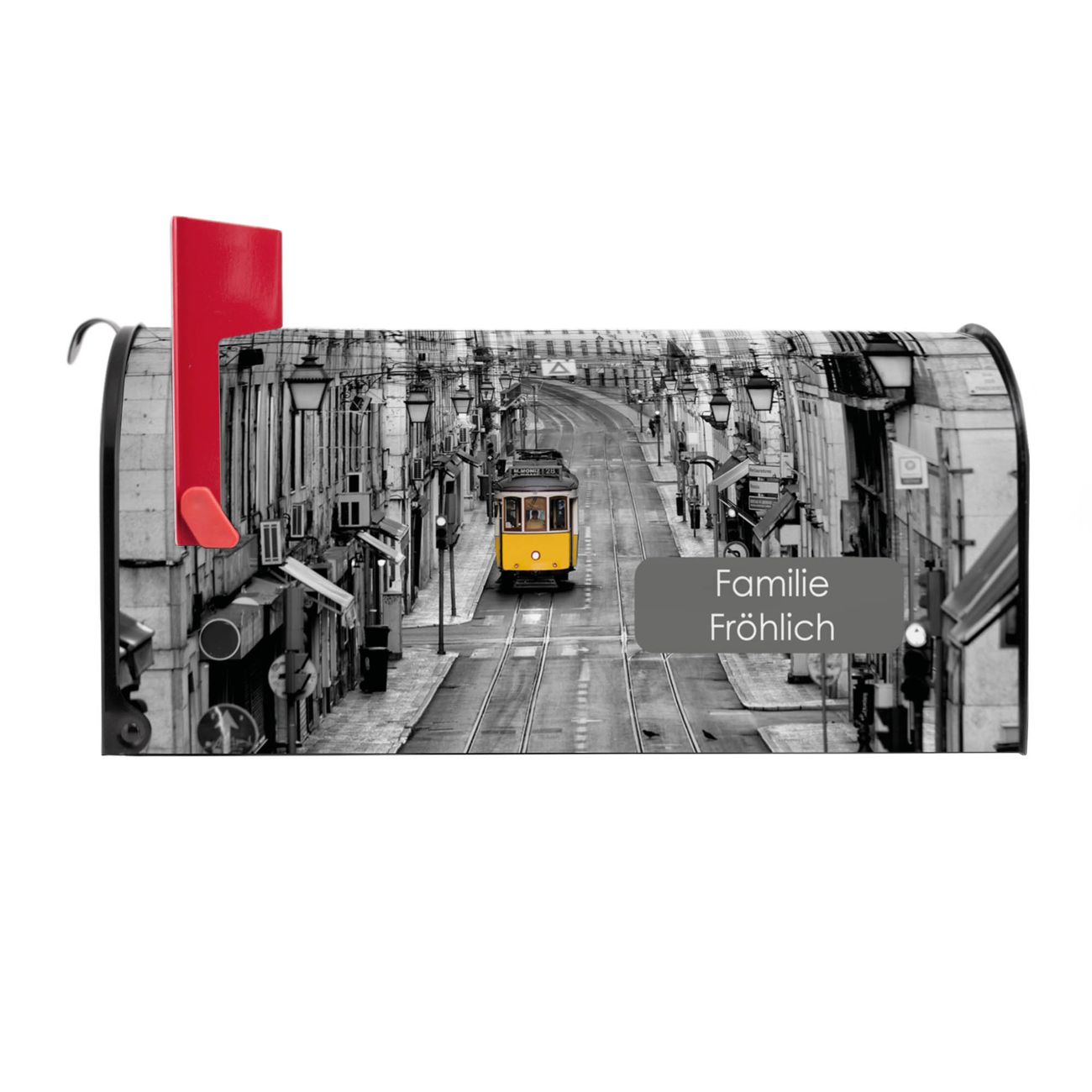 Unser amerikanischer Briefkasten mit dem Motiv Lissabon hat ein sehr ansprechendes und ausgefallenes Design, ist in der Grundfarbe weiß, grün oder schwarz erhältlich. Damit entlocken Sie Ihren Nachbarn und dem Postboten immer wieder ein Lächeln. Die Mailbox ist ein Original Import aus Mississippi USA und wird von unserer kleinen Manufaktur in Sachsen von Hand veredelt. Die US-Mailbox bietet ausreichend Platz auch für große Sendungen, eine Fahne die Ihnen Post anzeigt, wetterfestes und äußerst stabiles Material - so macht Post empfangen Freude.