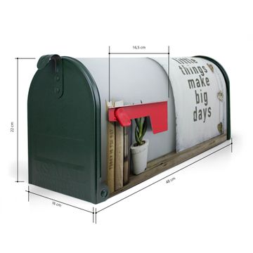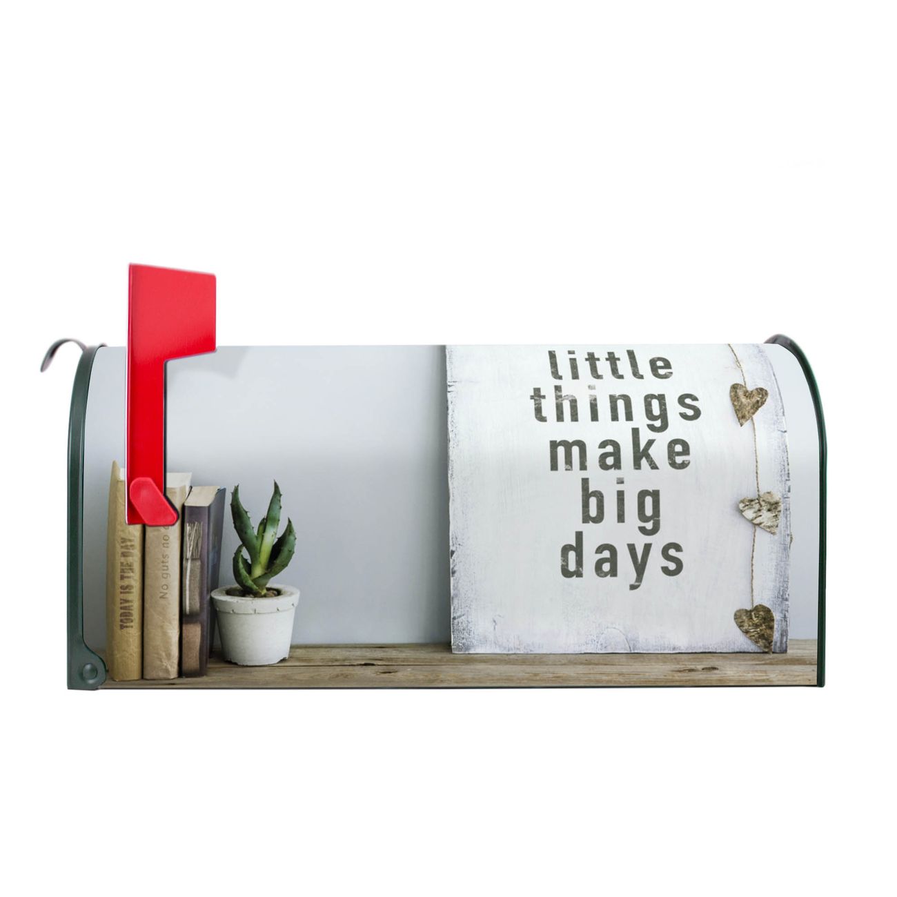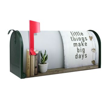 Unser amerikanischer Briefkasten mit dem Motiv Little Things hat ein sehr ansprechendes und ausgefallenes Design, ist in der Grundfarbe weiß, grün oder schwarz erhältlich. Damit entlocken Sie Ihren Nachbarn und dem Postboten immer wieder ein Lächeln. Die Mailbox ist ein Original Import aus Mississippi USA und wird von unserer kleinen Manufaktur in Sachsen von Hand veredelt. Die US-Mailbox bietet ausreichend Platz auch für große Sendungen, eine Fahne die Ihnen Post anzeigt, wetterfestes und äußerst stabiles Material - so macht Post empfangen Freude.