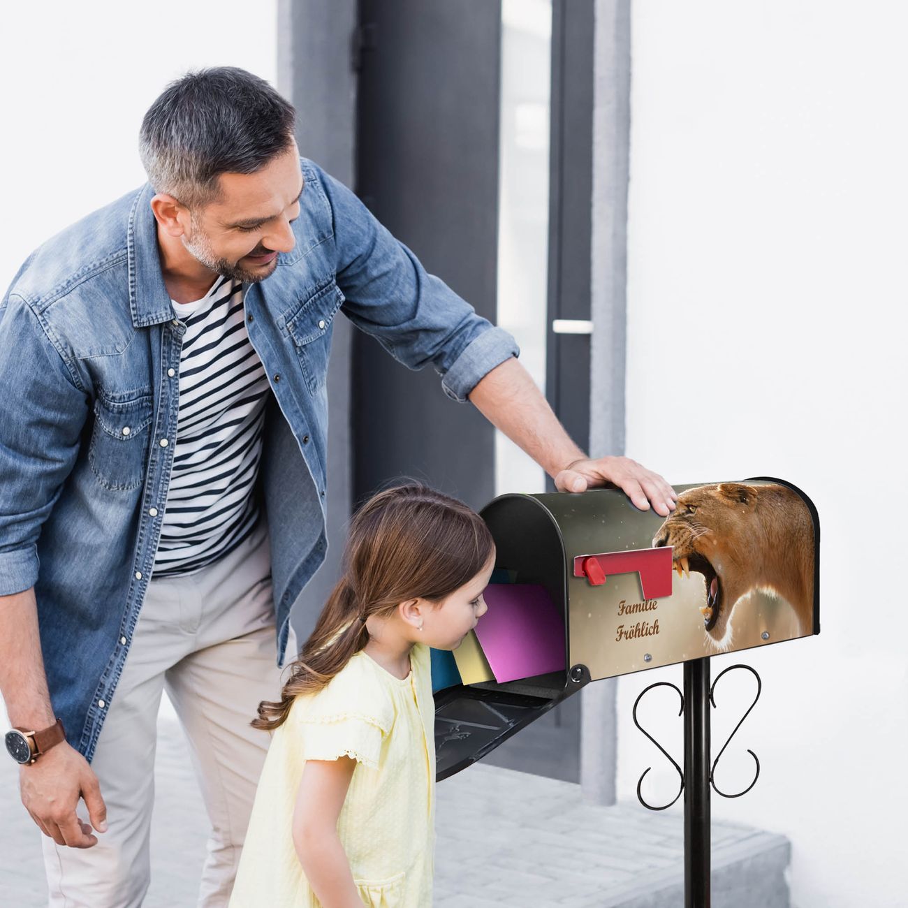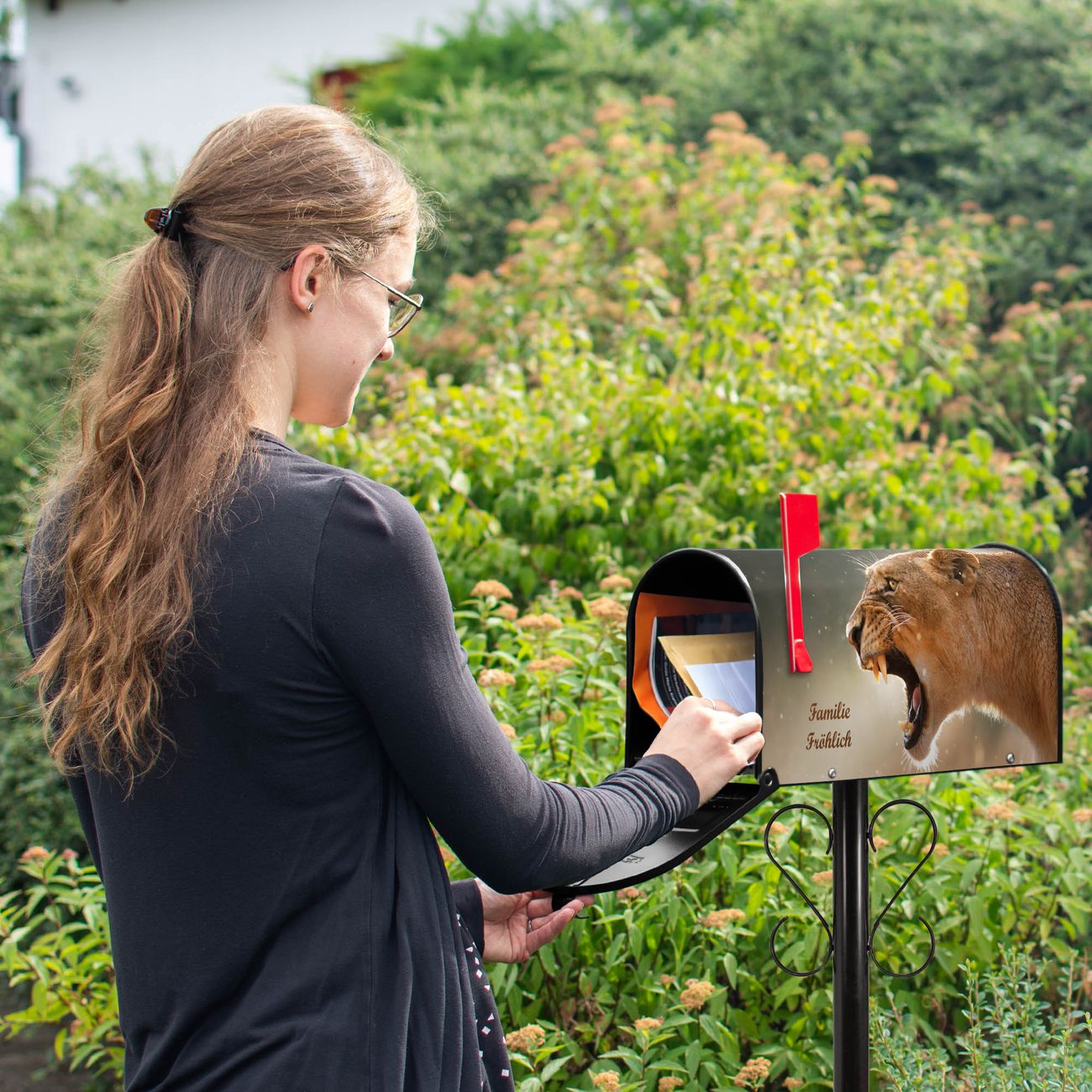 Unser amerikanischer Briefkasten mit dem Motiv Löwin hat ein sehr ansprechendes und ausgefallenes Design, ist in der Grundfarbe weiß, grün oder schwarz erhältlich. Damit entlocken Sie Ihren Nachbarn und dem Postboten immer wieder ein Lächeln. Die Mailbox ist ein Original Import aus Mississippi USA und wird von unserer kleinen Manufaktur in Sachsen von Hand veredelt. Die US-Mailbox bietet ausreichend Platz auch für große Sendungen, eine Fahne die Ihnen Post anzeigt, wetterfestes und äußerst stabiles Material - so macht Post empfangen Freude.