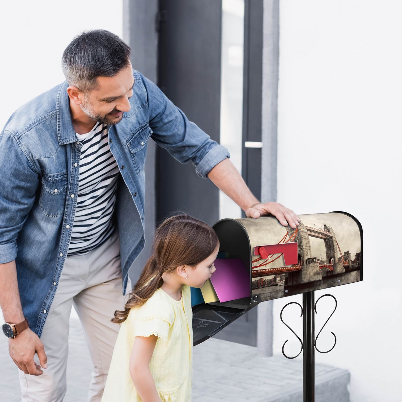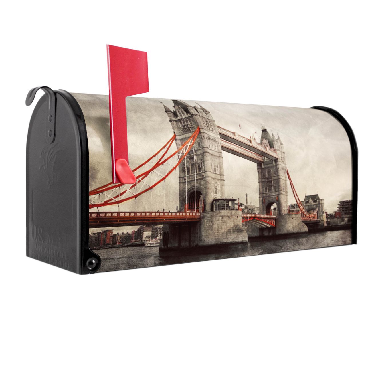 Unser amerikanischer Briefkasten mit dem Motiv London Bridge hat ein sehr ansprechendes und ausgefallenes Design, ist in der Grundfarbe weiß, grün oder schwarz erhältlich. Damit entlocken Sie Ihren Nachbarn und dem Postboten immer wieder ein Lächeln. Die Mailbox ist ein Original Import aus Mississippi USA und wird von unserer kleinen Manufaktur in Sachsen von Hand veredelt. Die US-Mailbox bietet ausreichend Platz auch für große Sendungen, eine Fahne die Ihnen Post anzeigt, wetterfestes und äußerst stabiles Material - so macht Post empfangen Freude.