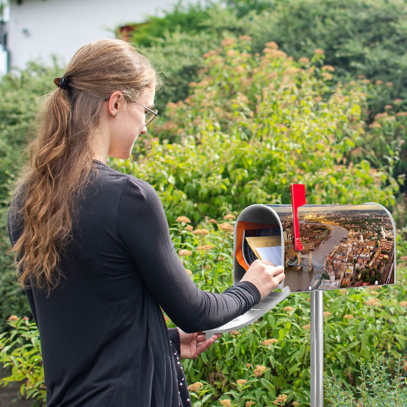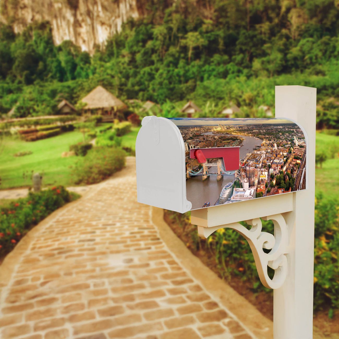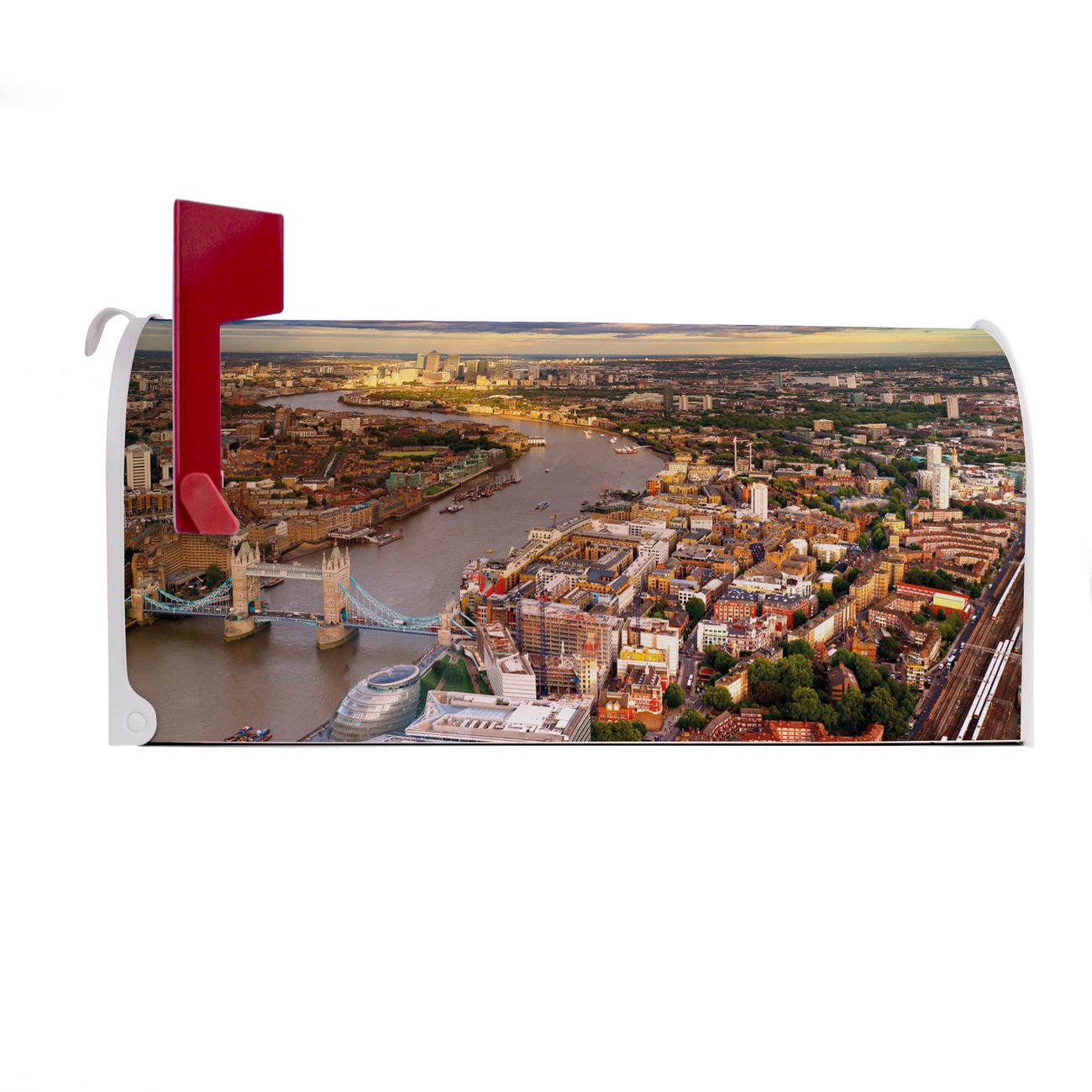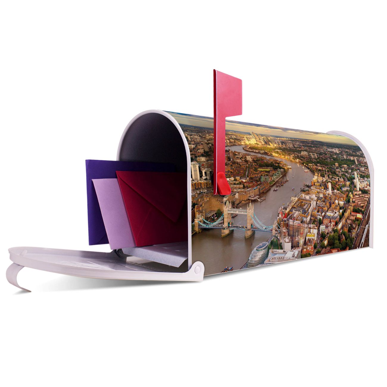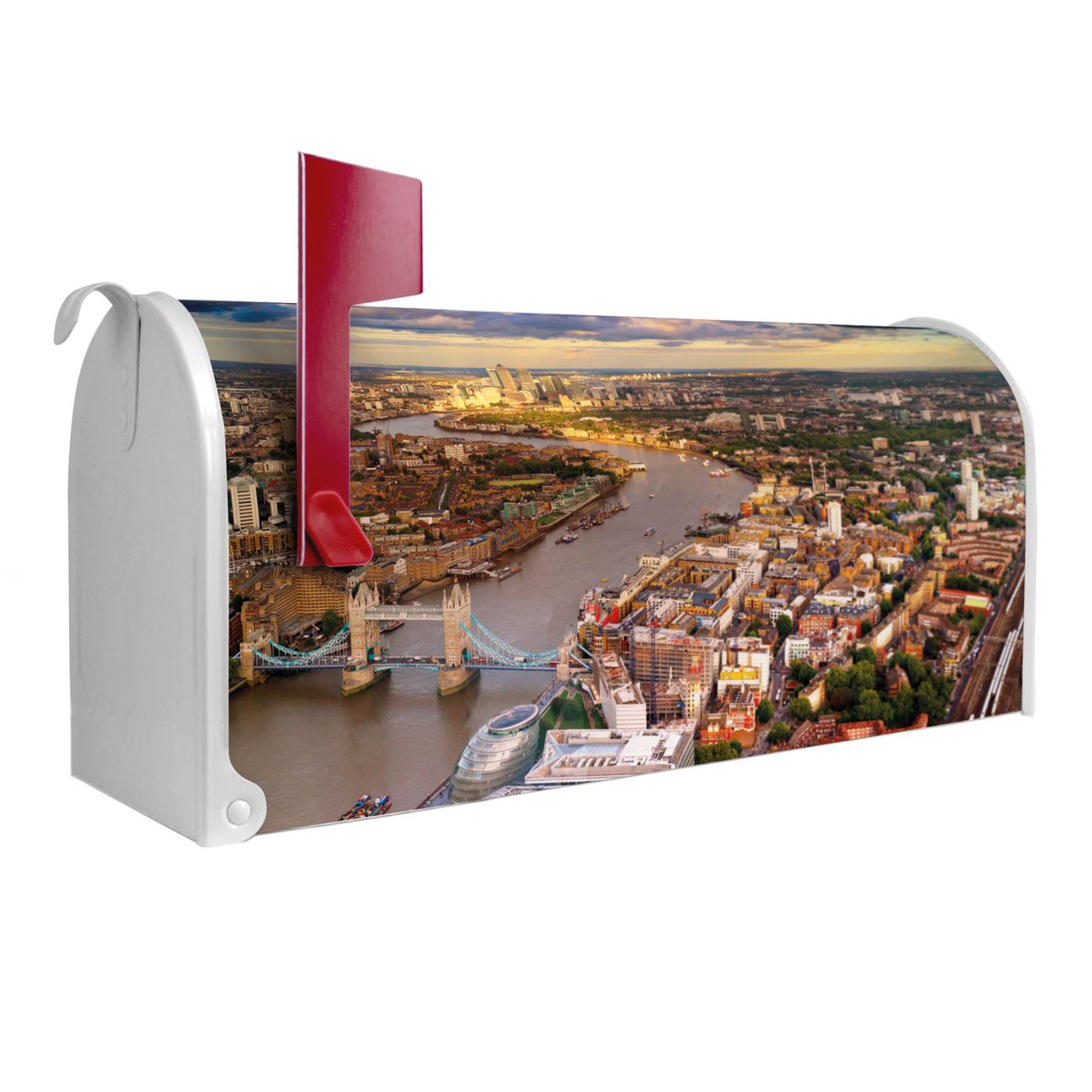 Unser amerikanischer Briefkasten mit dem Motiv London hat ein sehr ansprechendes und ausgefallenes Design, ist in der Grundfarbe weiß, grün oder schwarz erhältlich. Damit entlocken Sie Ihren Nachbarn und dem Postboten immer wieder ein Lächeln. Die Mailbox ist ein Original Import aus Mississippi USA und wird von unserer kleinen Manufaktur in Sachsen von Hand veredelt. Die US-Mailbox bietet ausreichend Platz auch für große Sendungen, eine Fahne die Ihnen Post anzeigt, wetterfestes und äußerst stabiles Material - so macht Post empfangen Freude.