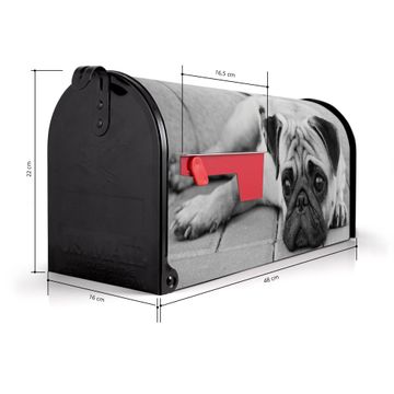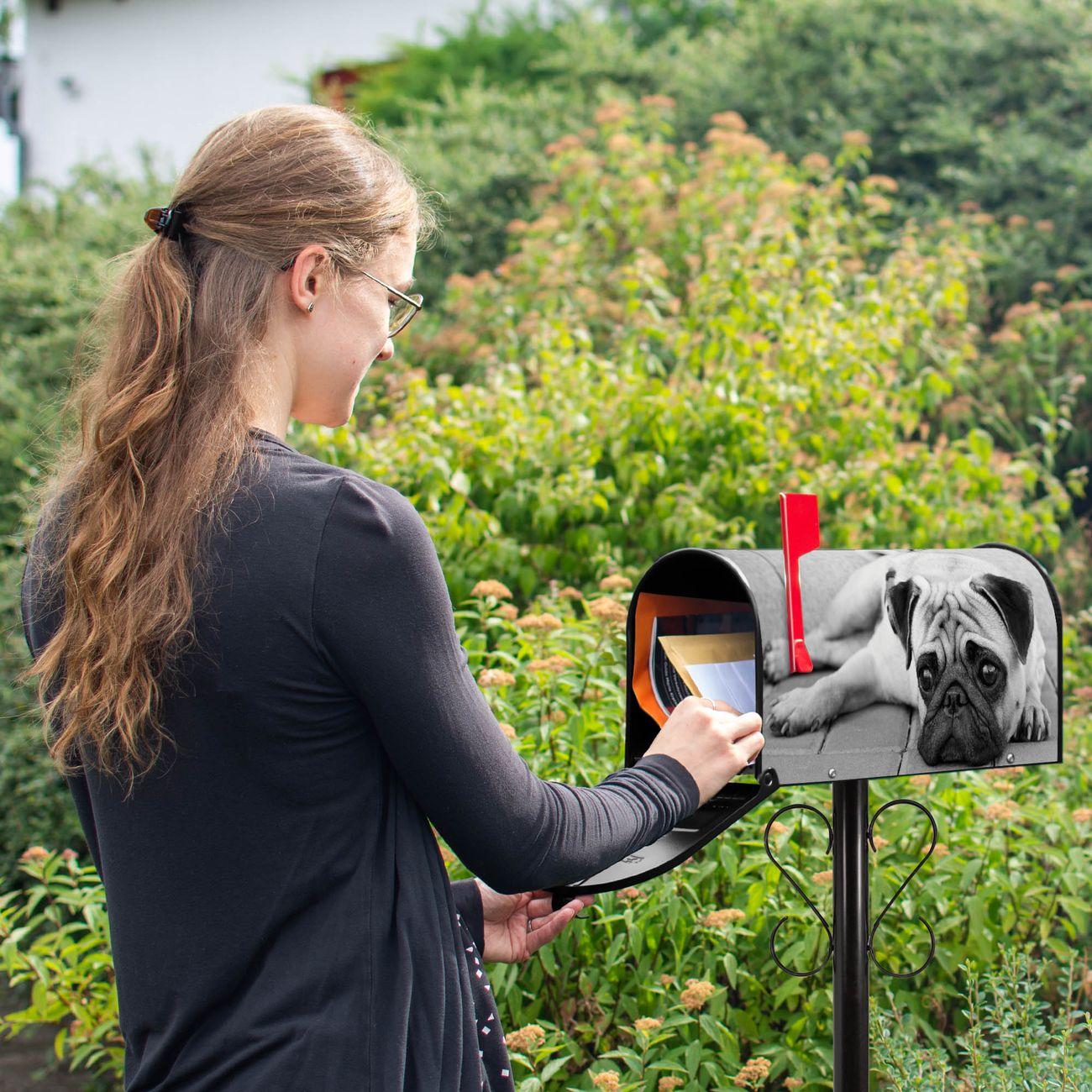 Der amerikanische Briefkasten von banjado mit Lotty Motiv bietet Ihnen ausreichend Fassungsvermögen, um große A4 Sendungen und Zeitschriften zu empfangen. Die typisch amerikanische rote Fahne zeigt Ihnen an, wenn Sie Post erhalten haben. Die US-Mailbox besteht aus verzinktem Stahlblech welches lackiert wurde und ist 48 x 22 x 16 CM (BxHxT) groß. Die Folie mit Motiv Lotty besteht aus einer wetter- und UV-resistenten Folie, die mit einem Schutzlaminat überzogen ist, sodass die US Mailbox zusätzlich vor Kratzern geschützt ist. An der Unterkante sind 4 Löcher je Seite um die Mailbox, typisch amerikanisch, an einem Holzpfahl oder einem Zaun zu befestigen. Auf Wunsch können Sie bei uns den passenden Standfuß oder die passende Wandhalterung kaufen um die US-Mailbox sicher zu befestigen. Wir bieten Ihnen ebenfalls Namensschilder, bereits beschriftet oder frei zu beschriften, und verschiedene selbst gestaltete Bitte-Keine-Werbung-Aufkleber.