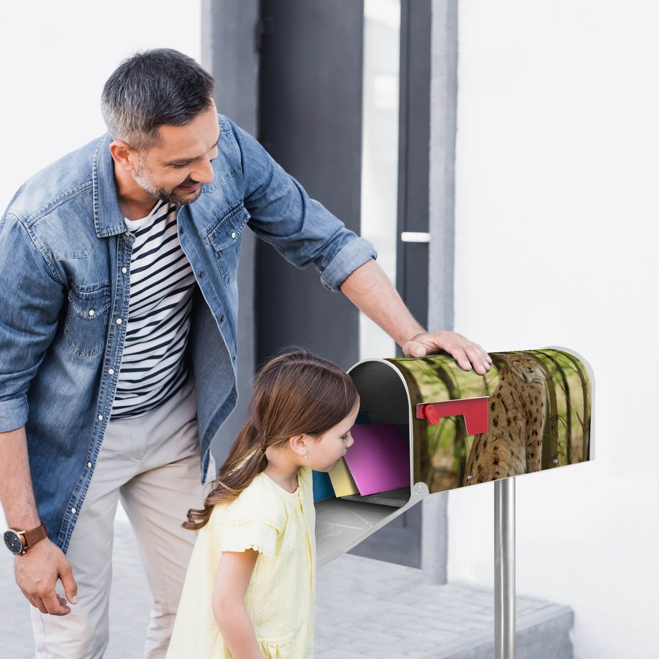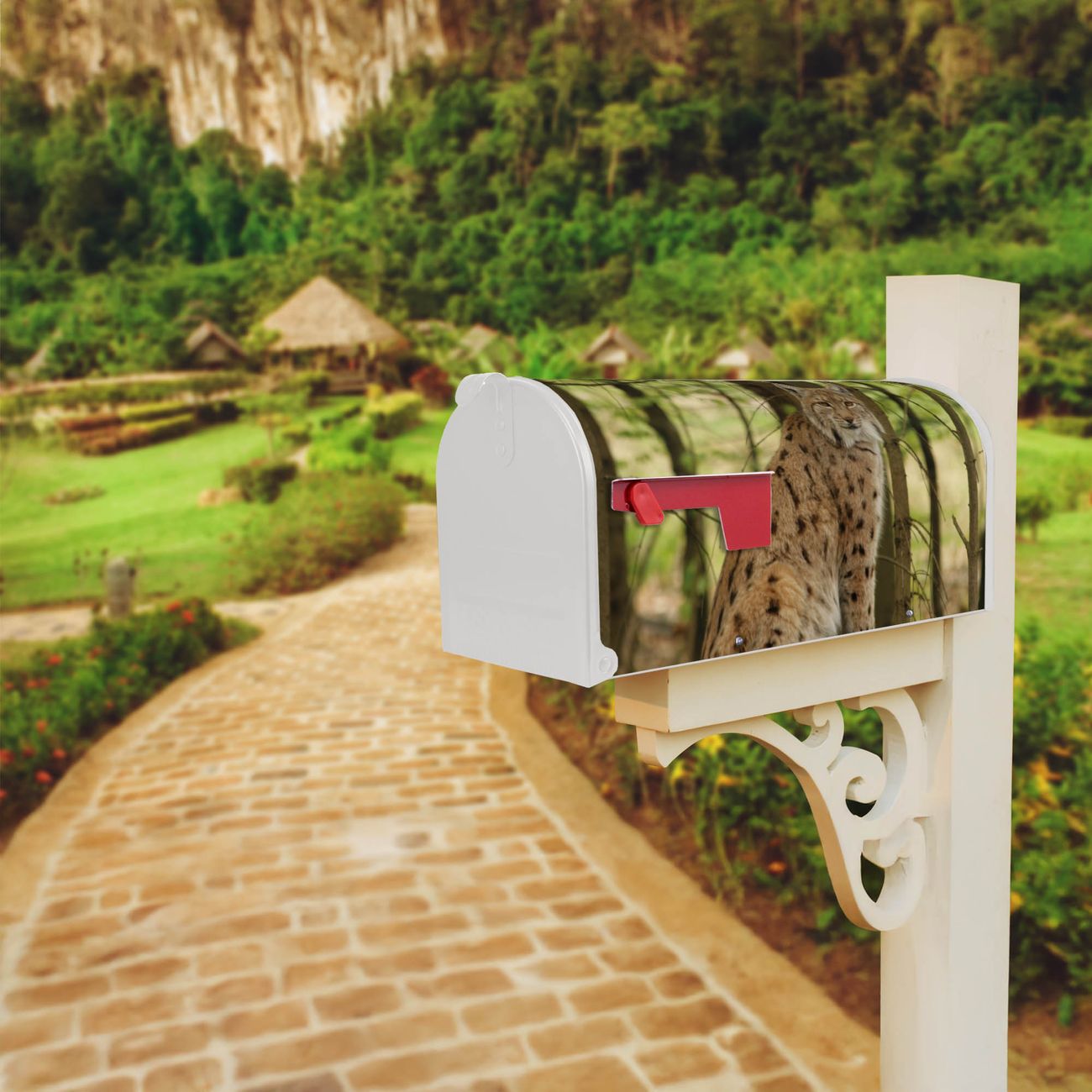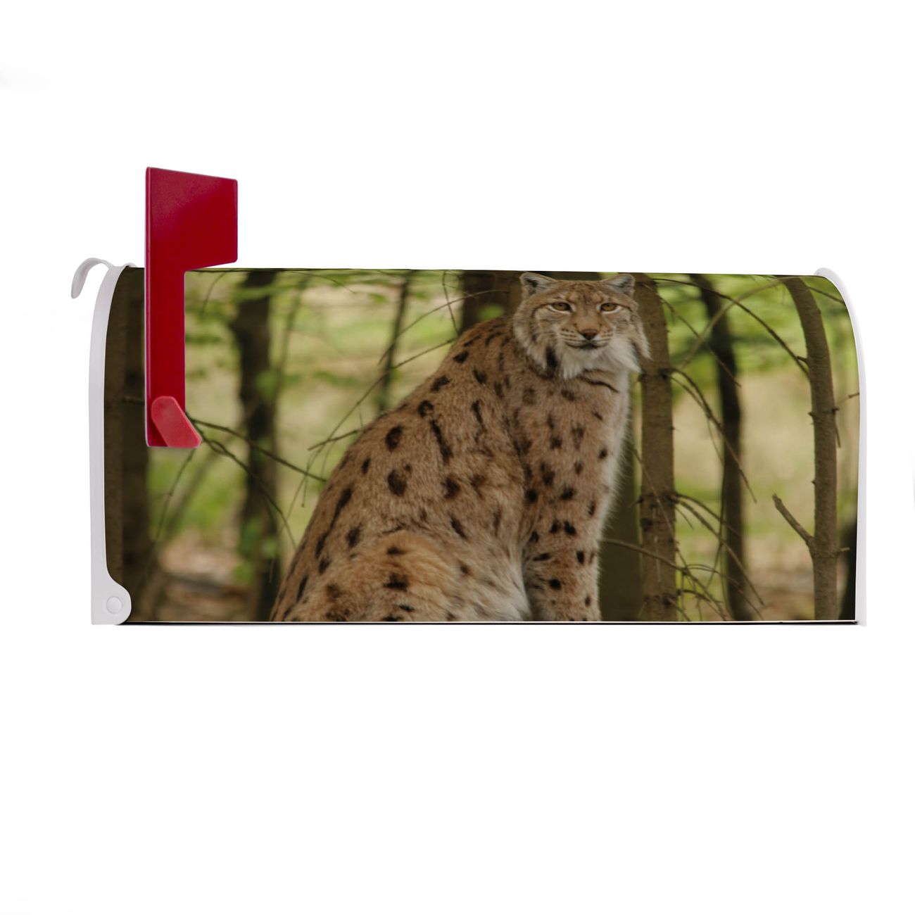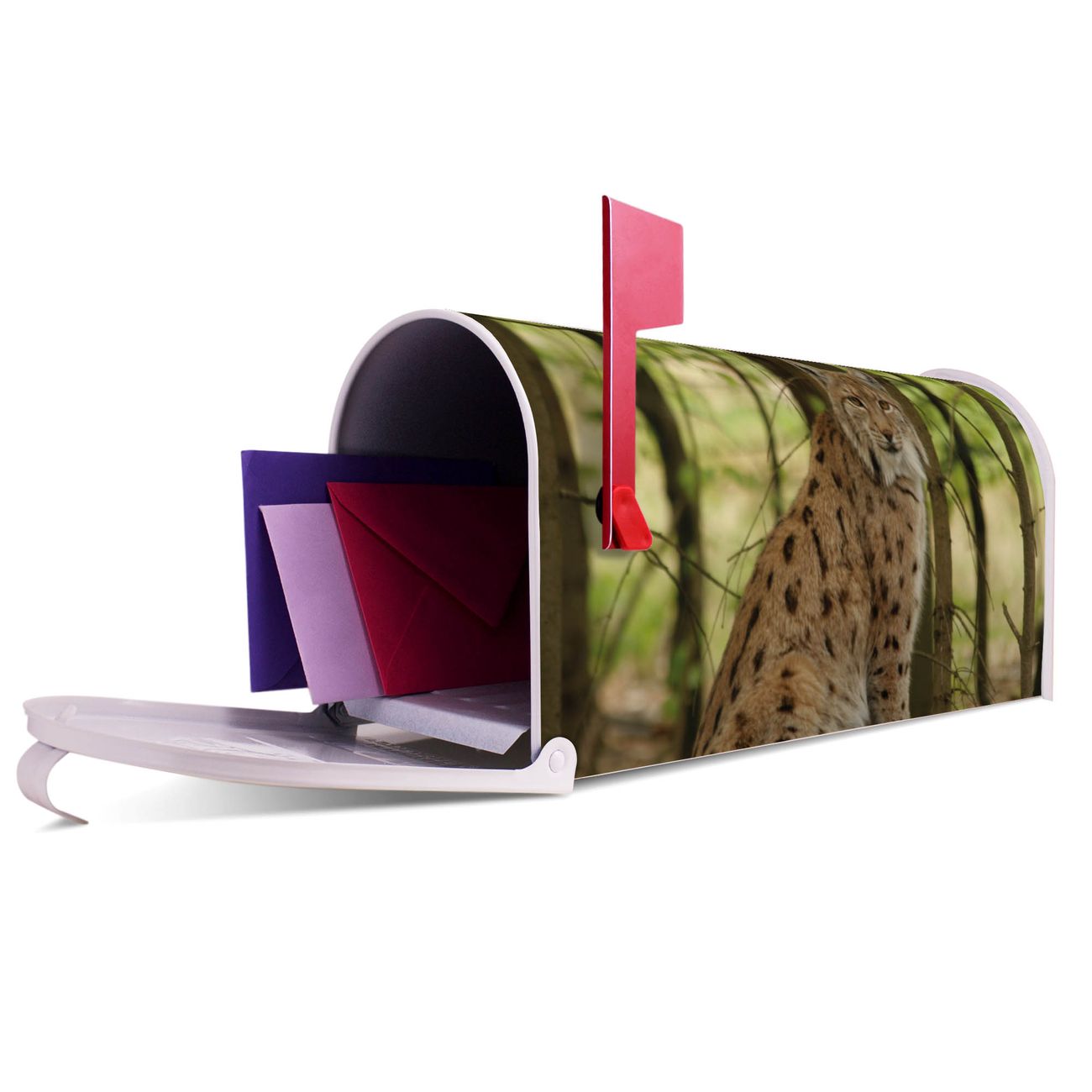 Der amerikanische Briefkasten von banjado mit Luchs Motiv bietet Ihnen ausreichend Fassungsvermögen, um große A4 Sendungen und Zeitschriften zu empfangen. Die typisch amerikanische rote Fahne zeigt Ihnen an, wenn Sie Post erhalten haben. Die US-Mailbox besteht aus verzinktem Stahlblech welches lackiert wurde und ist 48 x 22 x 16 CM (BxHxT) groß. Die Folie mit Motiv Luchs besteht aus einer wetter- und UV-resistenten Folie, die mit einem Schutzlaminat überzogen ist, sodass die US Mailbox zusätzlich vor Kratzern geschützt ist. An der Unterkante sind 4 Löcher je Seite um die Mailbox, typisch amerikanisch, an einem Holzpfahl oder einem Zaun zu befestigen. Auf Wunsch können Sie bei uns den passenden Standfuß oder die passende Wandhalterung kaufen um die US-Mailbox sicher zu befestigen. Wir bieten Ihnen ebenfalls Namensschilder, bereits beschriftet oder frei zu beschriften, und verschiedene selbst gestaltete Bitte-Keine-Werbung-Aufkleber.