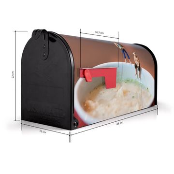 Der amerikanische Briefkasten von banjado mit Männersache Motiv bietet Ihnen ausreichend Fassungsvermögen, um große A4 Sendungen und Zeitschriften zu empfangen. Die typisch amerikanische rote Fahne zeigt Ihnen an, wenn Sie Post erhalten haben. Die US-Mailbox besteht aus verzinktem Stahlblech welches lackiert wurde und ist 48 x 22 x 16 CM (BxHxT) groß. Die Folie mit Motiv Männersache besteht aus einer wetter- und UV-resistenten Folie, die mit einem Schutzlaminat überzogen ist, sodass die US Mailbox zusätzlich vor Kratzern geschützt ist. An der Unterkante sind 4 Löcher je Seite um die Mailbox, typisch amerikanisch, an einem Holzpfahl oder einem Zaun zu befestigen. Auf Wunsch können Sie bei uns den passenden Standfuß oder die passende Wandhalterung kaufen um die US-Mailbox sicher zu befestigen. Wir bieten Ihnen ebenfalls Namensschilder, bereits beschriftet oder frei zu beschriften, und verschiedene selbst gestaltete Bitte-Keine-Werbung-Aufkleber.