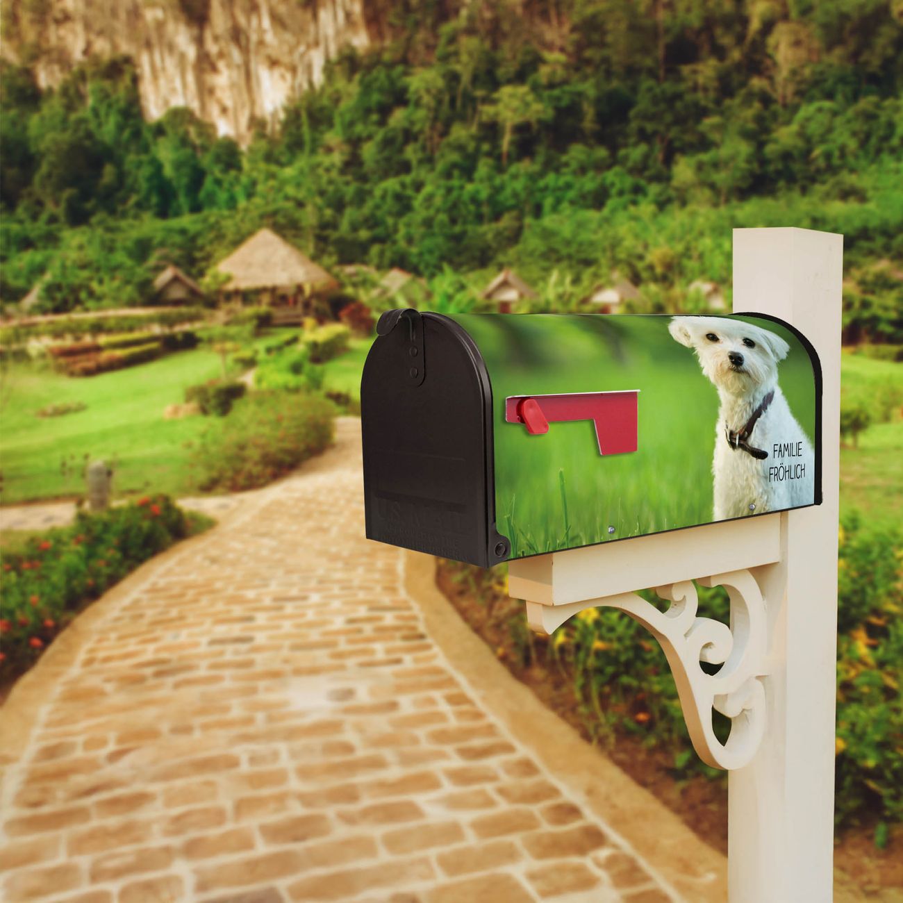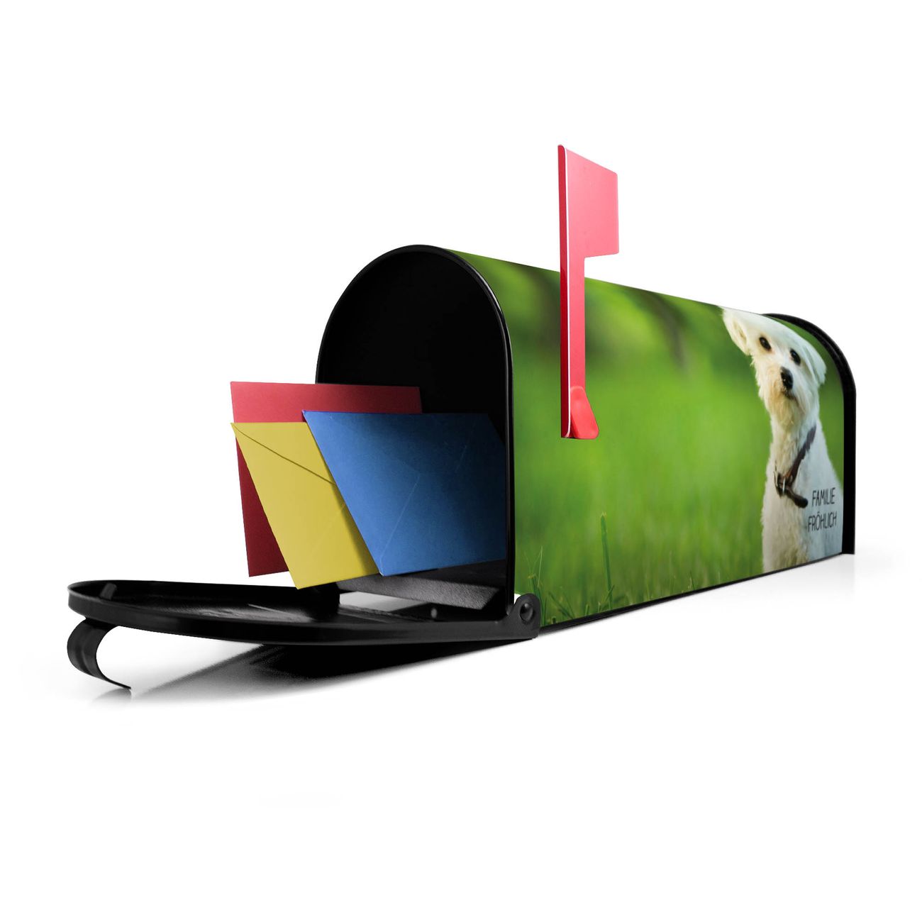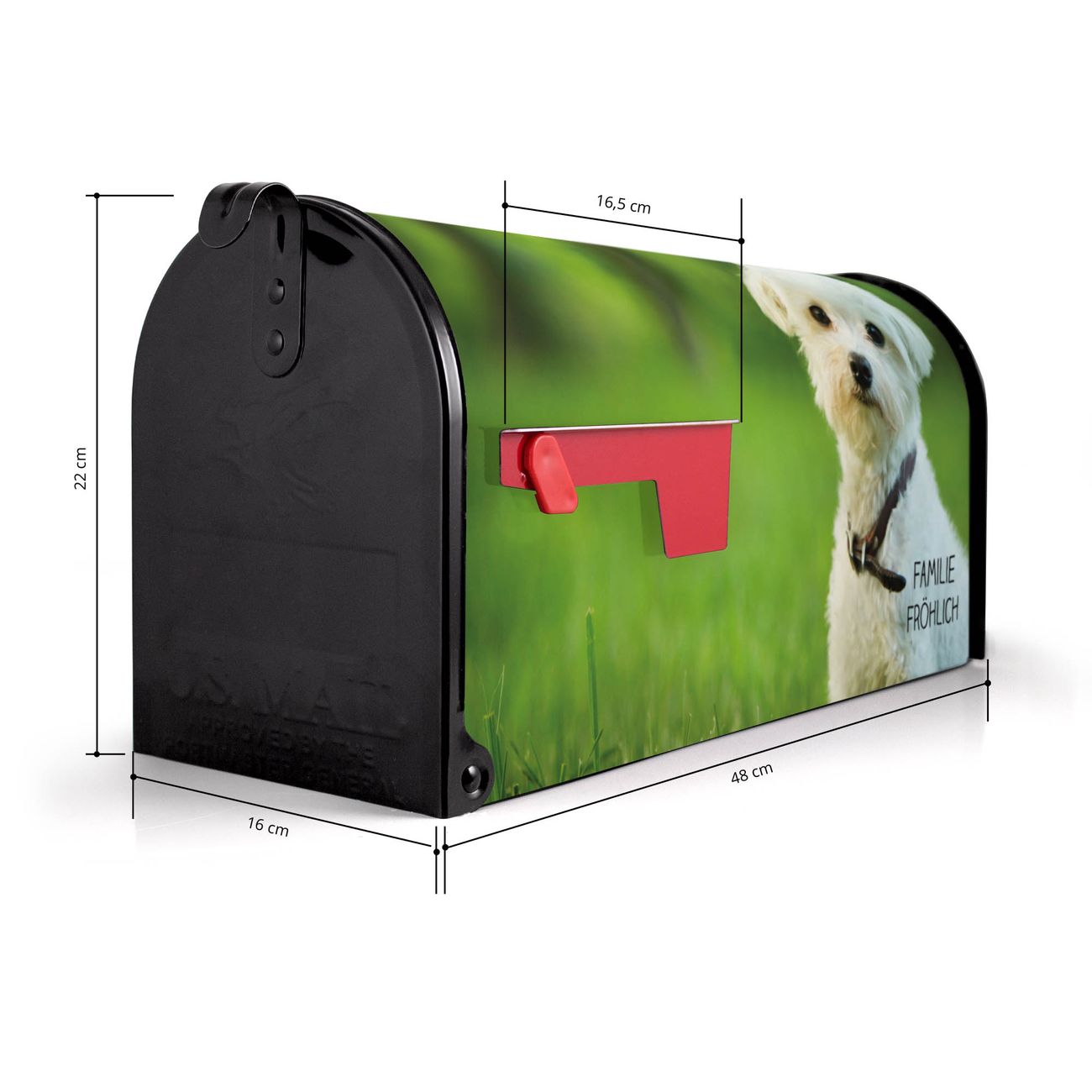 Unser amerikanischer Briefkasten mit dem Motiv Mareike hat ein sehr ansprechendes und ausgefallenes Design, ist in der Grundfarbe weiß, grün oder schwarz erhältlich. Damit entlocken Sie Ihren Nachbarn und dem Postboten immer wieder ein Lächeln. Die Mailbox ist ein Original Import aus Mississippi USA und wird von unserer kleinen Manufaktur in Sachsen von Hand veredelt. Die US-Mailbox bietet ausreichend Platz auch für große Sendungen, eine Fahne die Ihnen Post anzeigt, wetterfestes und äußerst stabiles Material - so macht Post empfangen Freude.