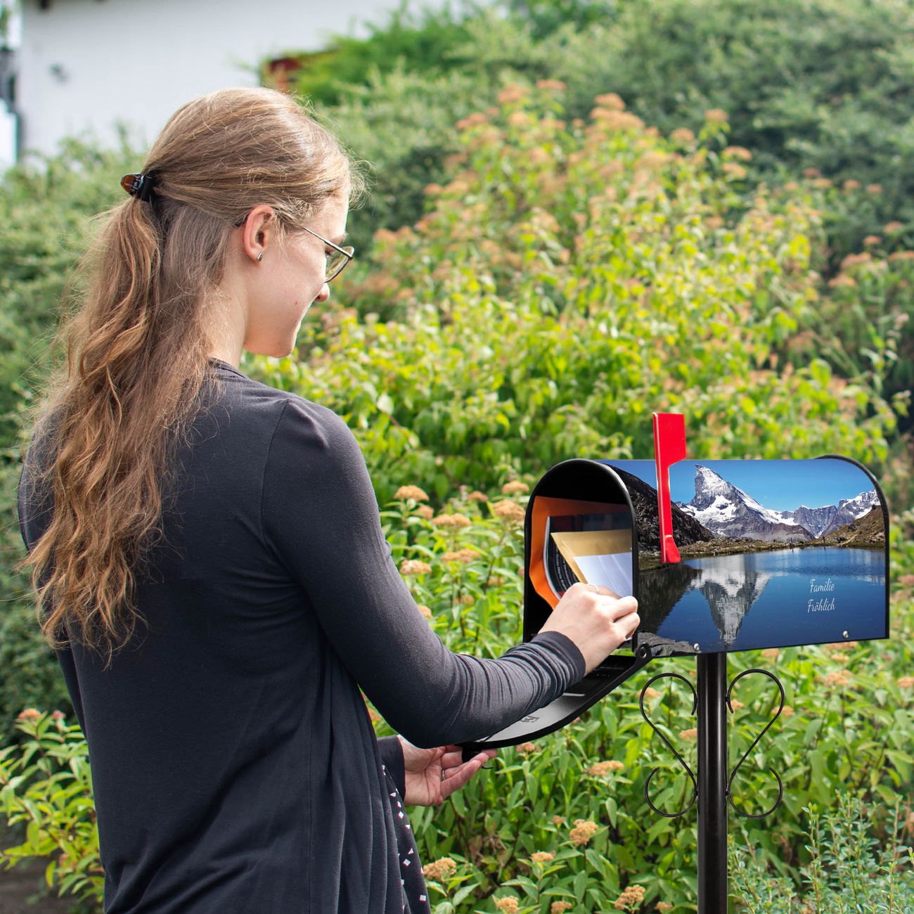 Unser amerikanischer Briefkasten mit dem Motiv Matterhorn hat ein sehr ansprechendes und ausgefallenes Design, ist in der Grundfarbe weiß, grün oder schwarz erhältlich. Damit entlocken Sie Ihren Nachbarn und dem Postboten immer wieder ein Lächeln. Die Mailbox ist ein Original Import aus Mississippi USA und wird von unserer kleinen Manufaktur in Sachsen von Hand veredelt. Die US-Mailbox bietet ausreichend Platz auch für große Sendungen, eine Fahne die Ihnen Post anzeigt, wetterfestes und äußerst stabiles Material - so macht Post empfangen Freude.