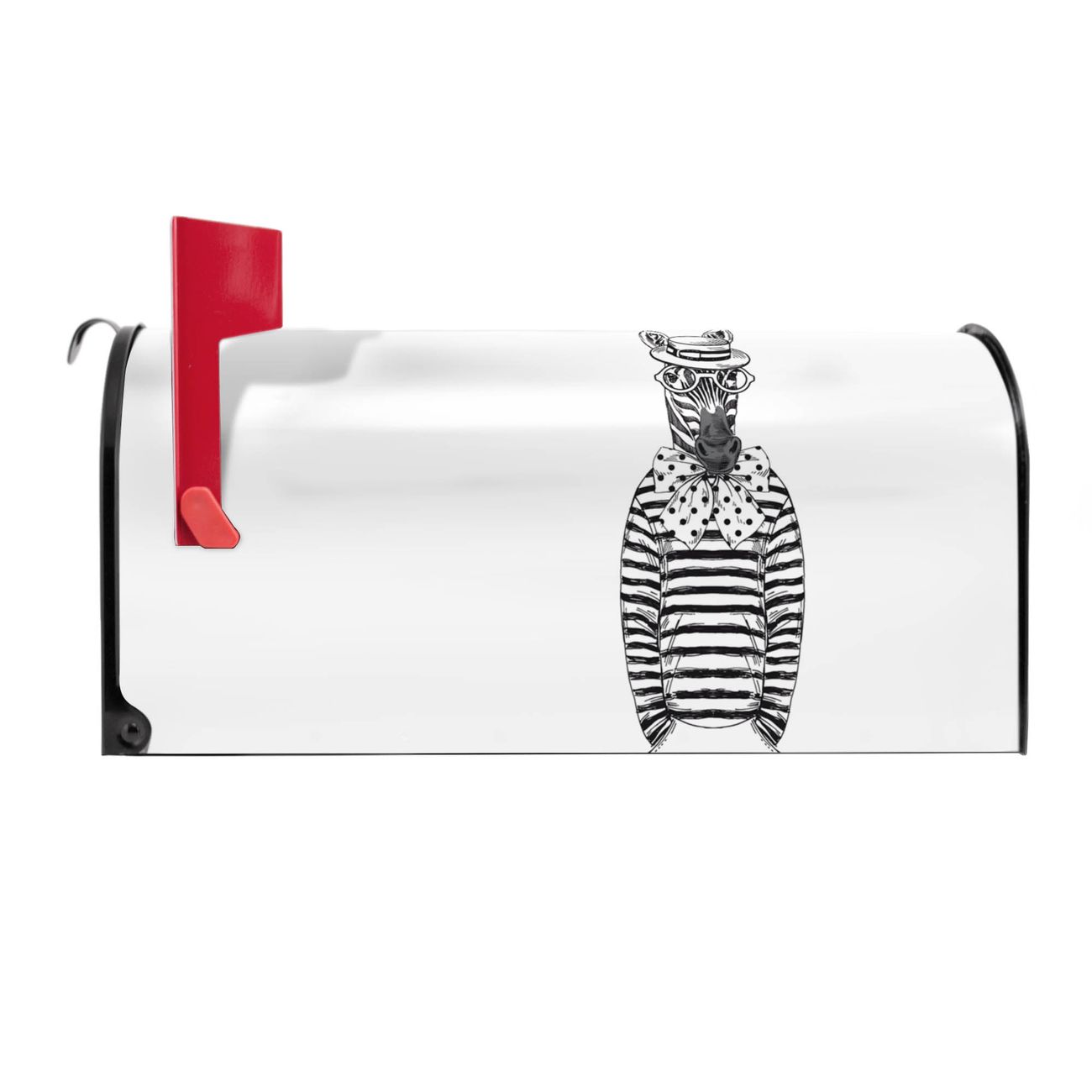 Der amerikanische Briefkasten von banjado mit Michael Stripes Motiv bietet Ihnen ausreichend Fassungsvermögen, um große A4 Sendungen und Zeitschriften zu empfangen. Die typisch amerikanische rote Fahne zeigt Ihnen an, wenn Sie Post erhalten haben. Die US-Mailbox besteht aus verzinktem Stahlblech welches lackiert wurde und ist 48 x 22 x 16 CM (BxHxT) groß. Die Folie mit Motiv Michael Stripes besteht aus einer wetter- und UV-resistenten Folie, die mit einem Schutzlaminat überzogen ist, sodass die US Mailbox zusätzlich vor Kratzern geschützt ist. An der Unterkante sind 4 Löcher je Seite um die Mailbox, typisch amerikanisch, an einem Holzpfahl oder einem Zaun zu befestigen. Auf Wunsch können Sie bei uns den passenden Standfuß oder die passende Wandhalterung kaufen um die US-Mailbox sicher zu befestigen. Wir bieten Ihnen ebenfalls Namensschilder, bereits beschriftet oder frei zu beschriften, und verschiedene selbst gestaltete Bitte-Keine-Werbung-Aufkleber.