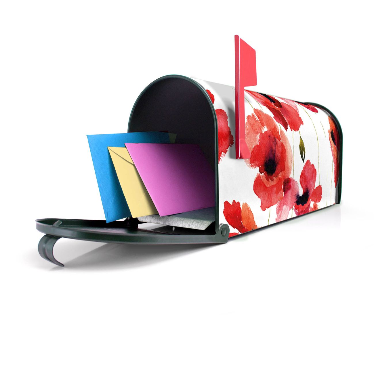 Unser amerikanischer Briefkasten mit dem Motiv Mohn Aquarell hat ein sehr ansprechendes und ausgefallenes Design, ist in der Grundfarbe weiß, grün oder schwarz erhältlich. Damit entlocken Sie Ihren Nachbarn und dem Postboten immer wieder ein Lächeln. Die Mailbox ist ein Original Import aus Mississippi USA und wird von unserer kleinen Manufaktur in Sachsen von Hand veredelt. Die US-Mailbox bietet ausreichend Platz auch für große Sendungen, eine Fahne die Ihnen Post anzeigt, wetterfestes und äußerst stabiles Material - so macht Post empfangen Freude.