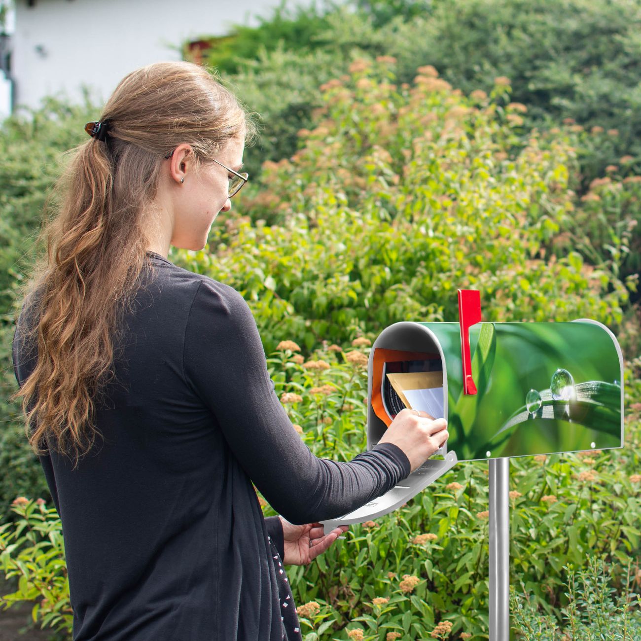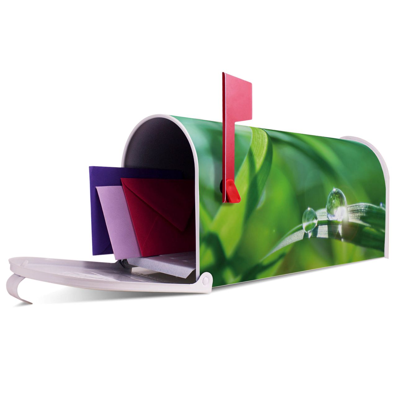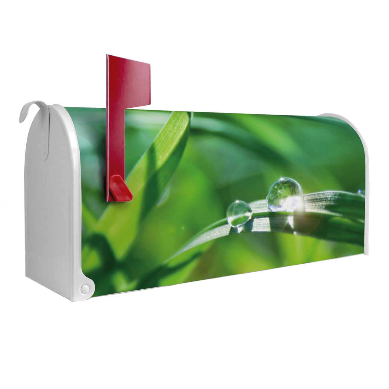 Unser amerikanischer Briefkasten mit dem Motiv Morgentau hat ein sehr ansprechendes und ausgefallenes Design, ist in der Grundfarbe weiß, grün oder schwarz erhältlich. Damit entlocken Sie Ihren Nachbarn und dem Postboten immer wieder ein Lächeln. Die Mailbox ist ein Original Import aus Mississippi USA und wird von unserer kleinen Manufaktur in Sachsen von Hand veredelt. Die US-Mailbox bietet ausreichend Platz auch für große Sendungen, eine Fahne die Ihnen Post anzeigt, wetterfestes und äußerst stabiles Material - so macht Post empfangen Freude.