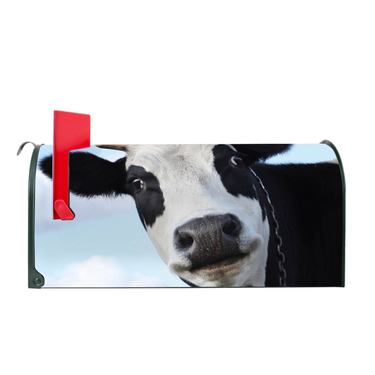 Unser amerikanischer Briefkasten mit dem Motiv Muh hat ein sehr ansprechendes und ausgefallenes Design, ist in der Grundfarbe weiß, grün oder schwarz erhältlich. Damit entlocken Sie Ihren Nachbarn und dem Postboten immer wieder ein Lächeln. Die Mailbox ist ein Original Import aus Mississippi USA und wird von unserer kleinen Manufaktur in Sachsen von Hand veredelt. Die US-Mailbox bietet ausreichend Platz auch für große Sendungen, eine Fahne die Ihnen Post anzeigt, wetterfestes und äußerst stabiles Material - so macht Post empfangen Freude.