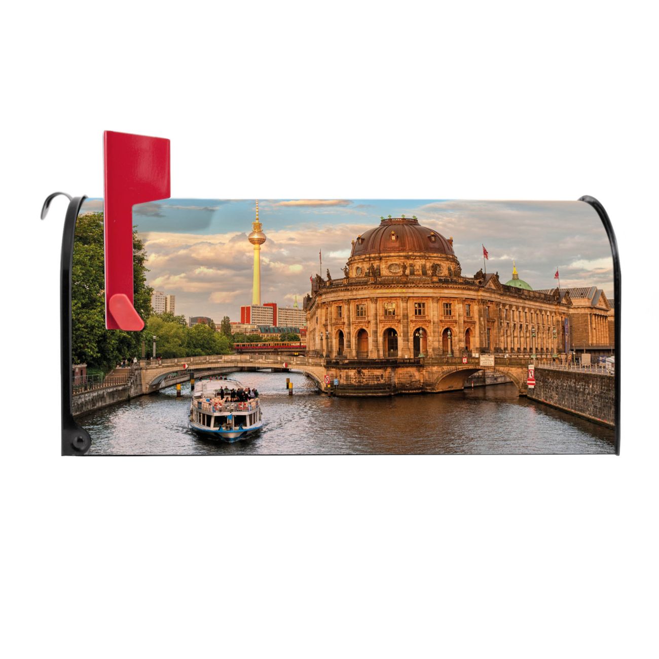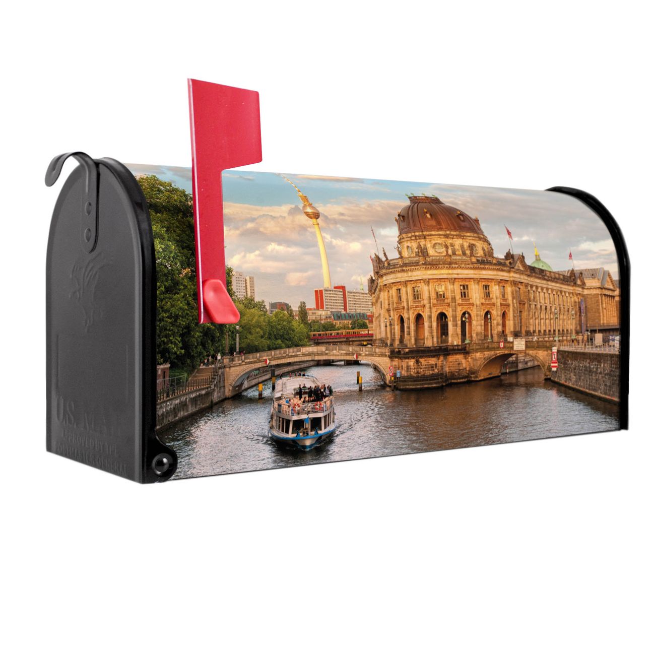 Unser amerikanischer Briefkasten mit dem Motiv Museumsinsel hat ein sehr ansprechendes und ausgefallenes Design, ist in der Grundfarbe weiß, grün oder schwarz erhältlich. Damit entlocken Sie Ihren Nachbarn und dem Postboten immer wieder ein Lächeln. Die Mailbox ist ein Original Import aus Mississippi USA und wird von unserer kleinen Manufaktur in Sachsen von Hand veredelt. Die US-Mailbox bietet ausreichend Platz auch für große Sendungen, eine Fahne die Ihnen Post anzeigt, wetterfestes und äußerst stabiles Material - so macht Post empfangen Freude.