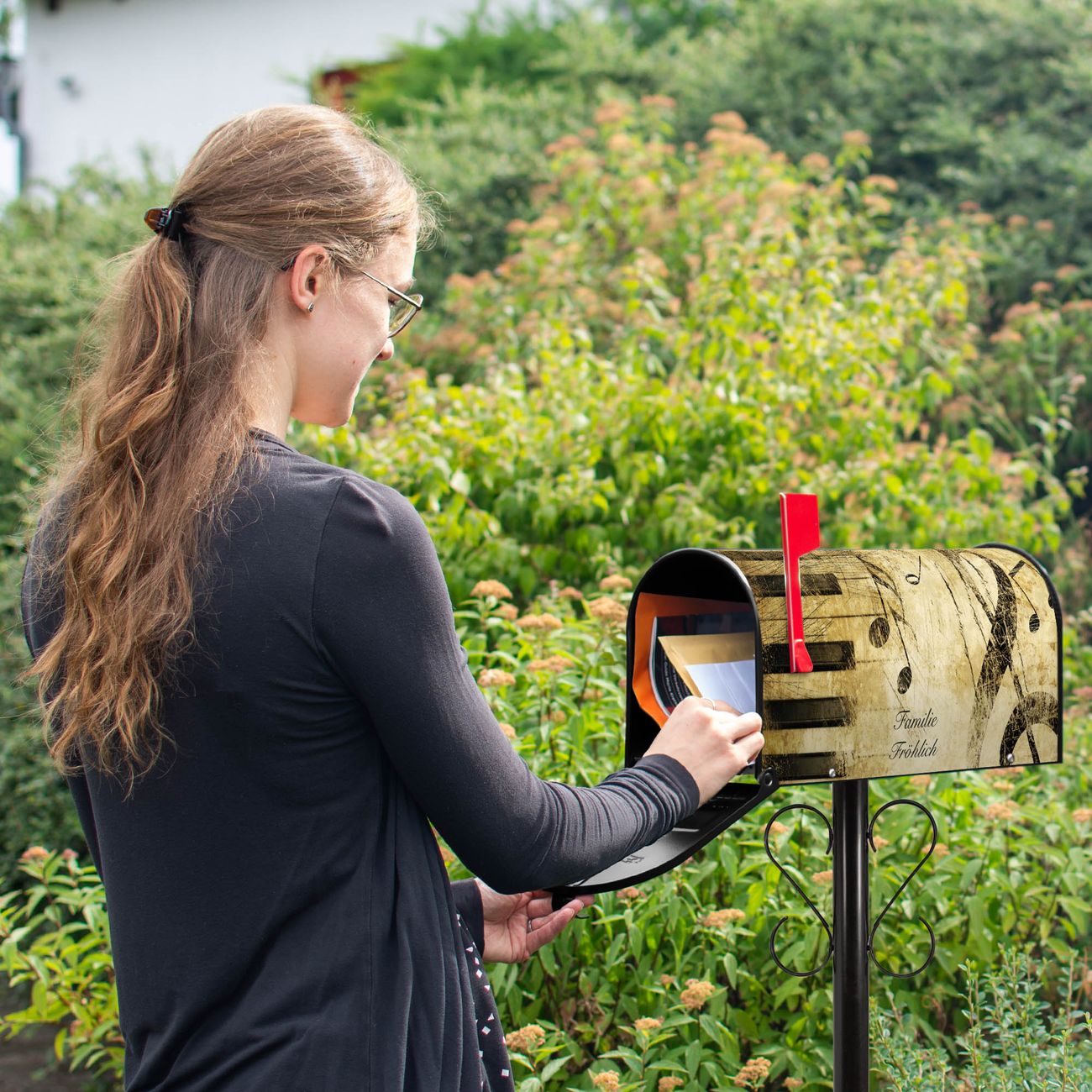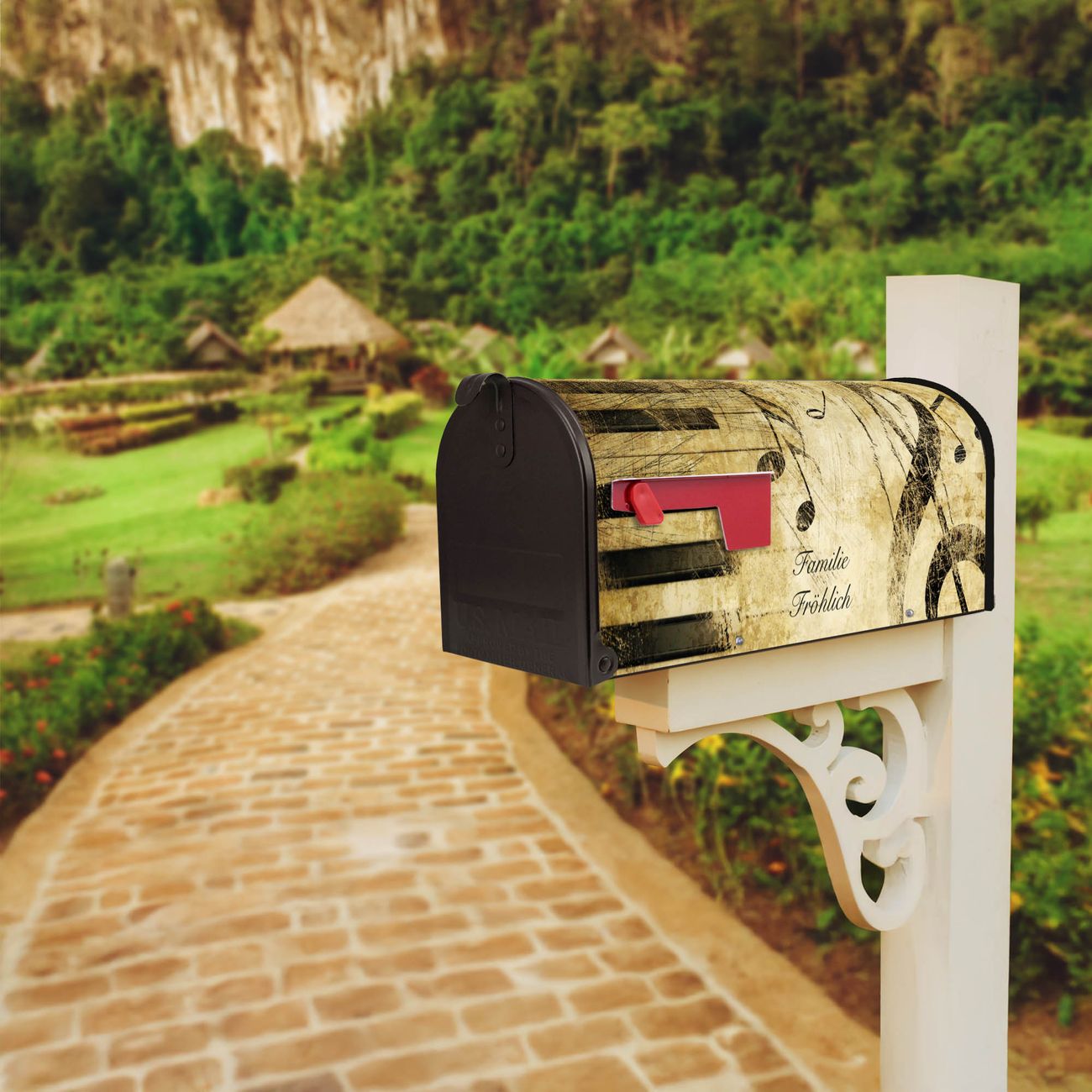 Unser amerikanischer Briefkasten mit dem Motiv Music hat ein sehr ansprechendes und ausgefallenes Design, ist in der Grundfarbe weiß, grün oder schwarz erhältlich. Damit entlocken Sie Ihren Nachbarn und dem Postboten immer wieder ein Lächeln. Die Mailbox ist ein Original Import aus Mississippi USA und wird von unserer kleinen Manufaktur in Sachsen von Hand veredelt. Die US-Mailbox bietet ausreichend Platz auch für große Sendungen, eine Fahne die Ihnen Post anzeigt, wetterfestes und äußerst stabiles Material - so macht Post empfangen Freude.