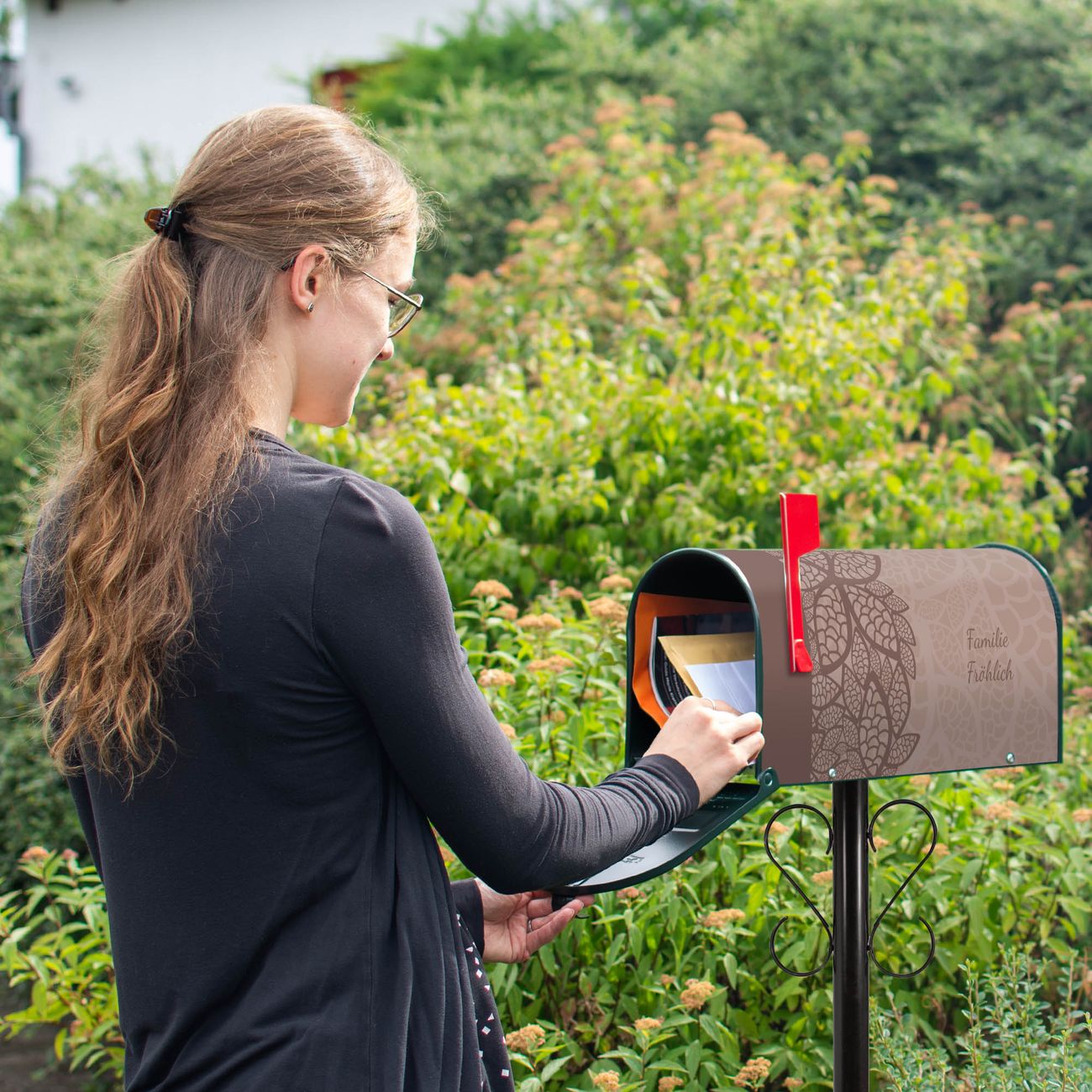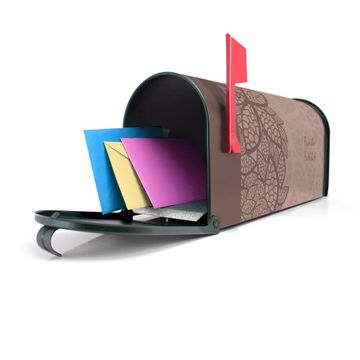 Unser amerikanischer Briefkasten mit dem Motiv WT Muster Blätter hat ein sehr ansprechendes und ausgefallenes Design, ist in der Grundfarbe weiß, grün oder schwarz erhältlich. Damit entlocken Sie Ihren Nachbarn und dem Postboten immer wieder ein Lächeln. Die Mailbox ist ein Original Import aus Mississippi USA und wird von unserer kleinen Manufaktur in Sachsen von Hand veredelt. Die US-Mailbox bietet ausreichend Platz auch für große Sendungen, eine Fahne die Ihnen Post anzeigt, wetterfestes und äußerst stabiles Material - so macht Post empfangen Freude.