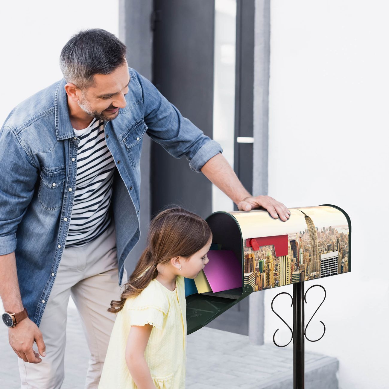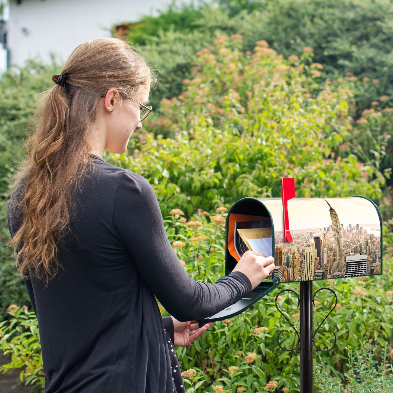 Unser amerikanischer Briefkasten mit dem Motiv New York City hat ein sehr ansprechendes und ausgefallenes Design, ist in der Grundfarbe weiß, grün oder schwarz erhältlich. Damit entlocken Sie Ihren Nachbarn und dem Postboten immer wieder ein Lächeln. Die Mailbox ist ein Original Import aus Mississippi USA und wird von unserer kleinen Manufaktur in Sachsen von Hand veredelt. Die US-Mailbox bietet ausreichend Platz auch für große Sendungen, eine Fahne die Ihnen Post anzeigt, wetterfestes und äußerst stabiles Material - so macht Post empfangen Freude.