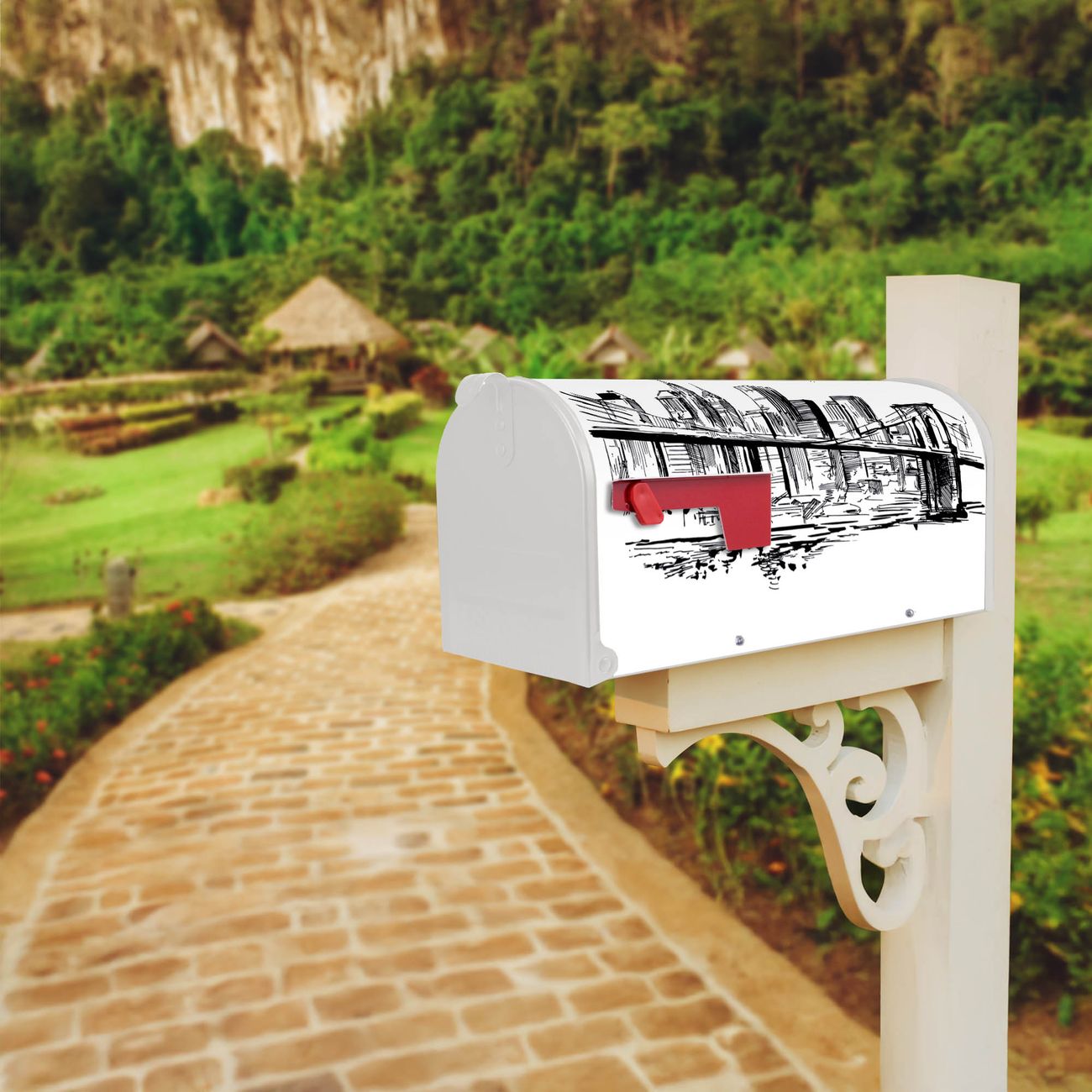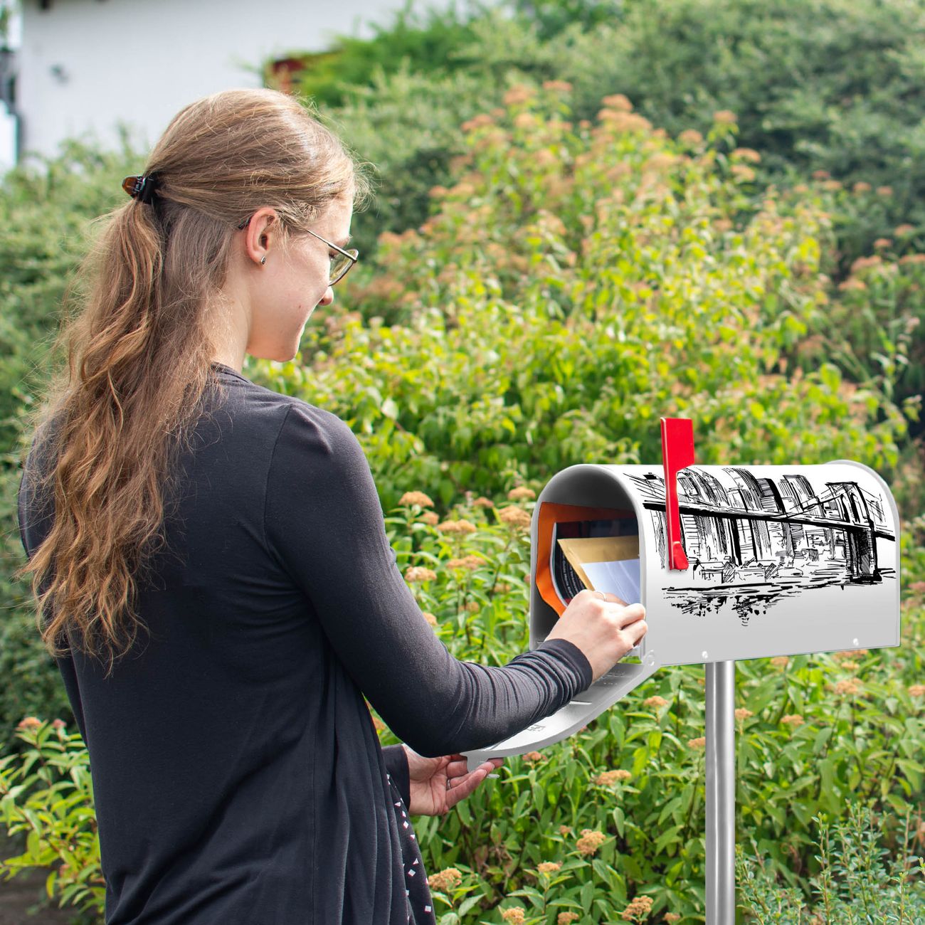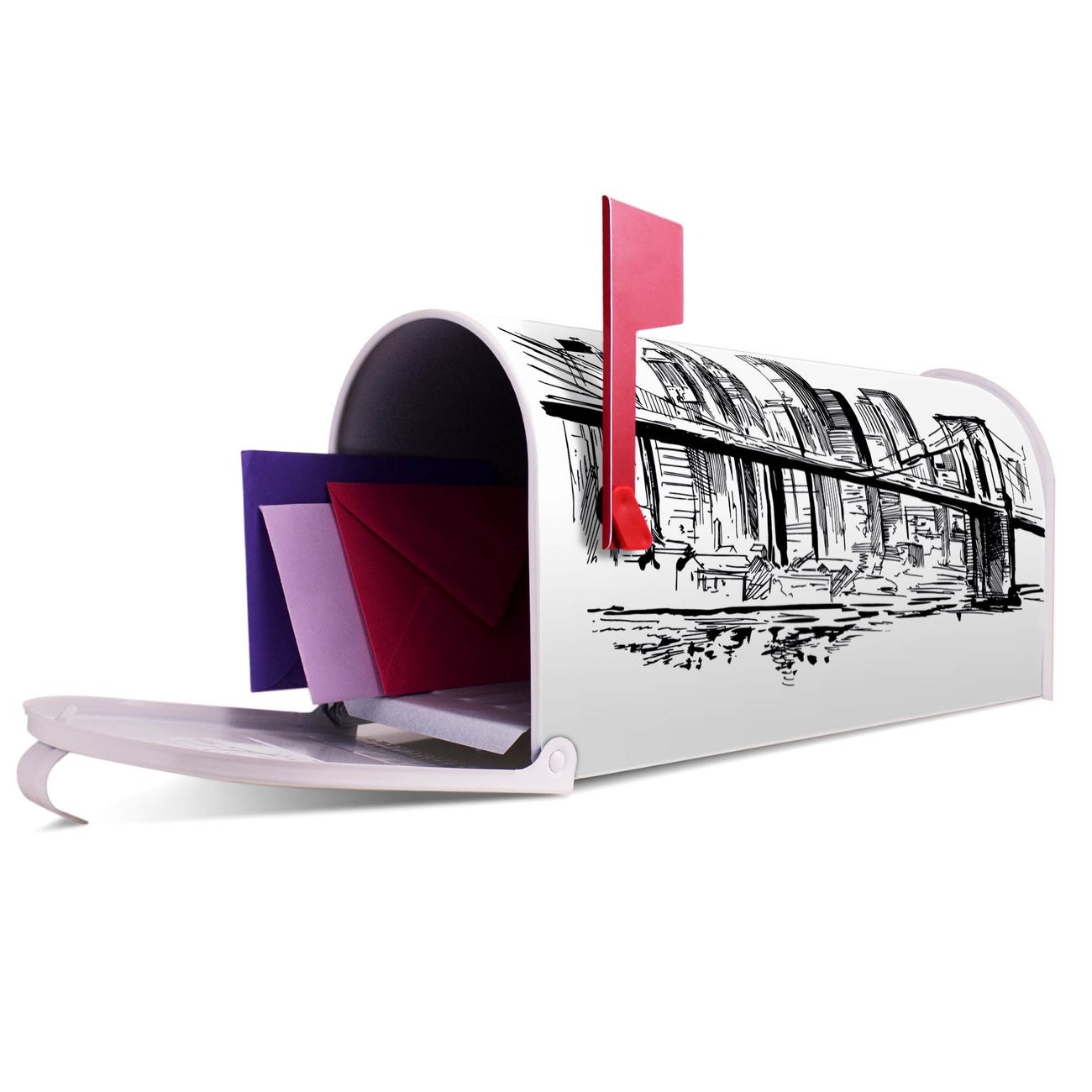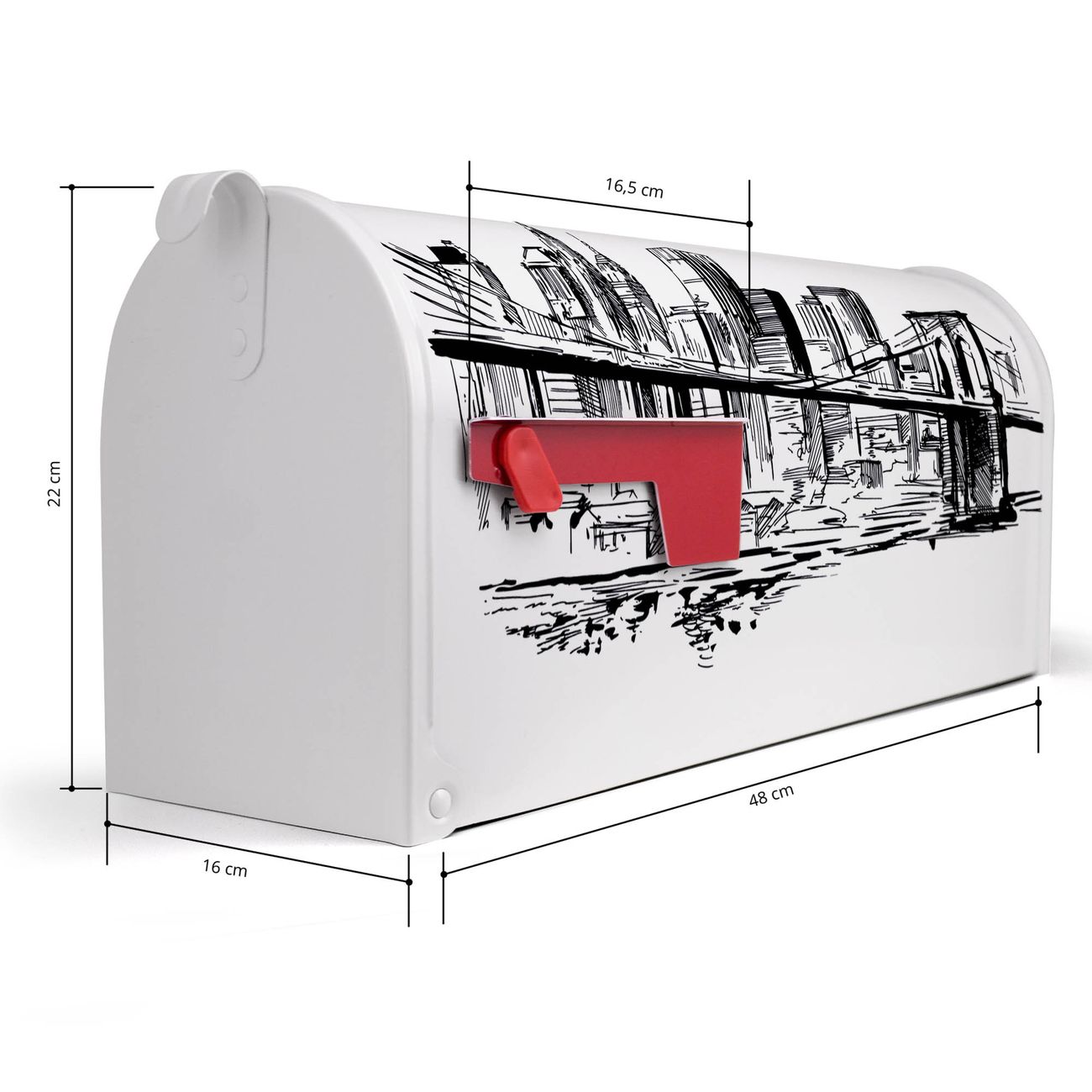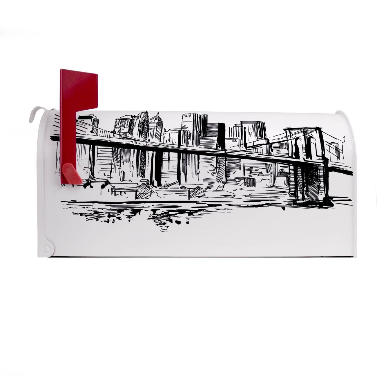 Unser amerikanischer Briefkasten mit dem Motiv New York Skizze hat ein sehr ansprechendes und ausgefallenes Design, ist in der Grundfarbe weiß, grün oder schwarz erhältlich. Damit entlocken Sie Ihren Nachbarn und dem Postboten immer wieder ein Lächeln. Die Mailbox ist ein Original Import aus Mississippi USA und wird von unserer kleinen Manufaktur in Sachsen von Hand veredelt. Die US-Mailbox bietet ausreichend Platz auch für große Sendungen, eine Fahne die Ihnen Post anzeigt, wetterfestes und äußerst stabiles Material - so macht Post empfangen Freude.
