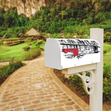 Der amerikanische Briefkasten von banjado mit New York Skizze Motiv bietet Ihnen ausreichend Fassungsvermögen, um große A4 Sendungen und Zeitschriften zu empfangen. Die typisch amerikanische rote Fahne zeigt Ihnen an, wenn Sie Post erhalten haben. Die US-Mailbox besteht aus verzinktem Stahlblech welches lackiert wurde und ist 48 x 22 x 16 CM (BxHxT) groß. Die Folie mit Motiv New York Skizze besteht aus einer wetter- und UV-resistenten Folie, die mit einem Schutzlaminat überzogen ist, sodass die US Mailbox zusätzlich vor Kratzern geschützt ist. An der Unterkante sind 4 Löcher je Seite um die Mailbox, typisch amerikanisch, an einem Holzpfahl oder einem Zaun zu befestigen. Auf Wunsch können Sie bei uns den passenden Standfuß oder die passende Wandhalterung kaufen um die US-Mailbox sicher zu befestigen. Wir bieten Ihnen ebenfalls Namensschilder, bereits beschriftet oder frei zu beschriften, und verschiedene selbst gestaltete Bitte-Keine-Werbung-Aufkleber.