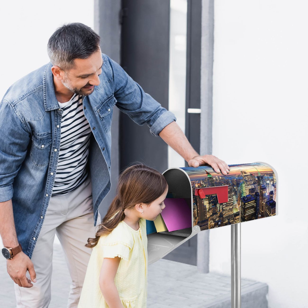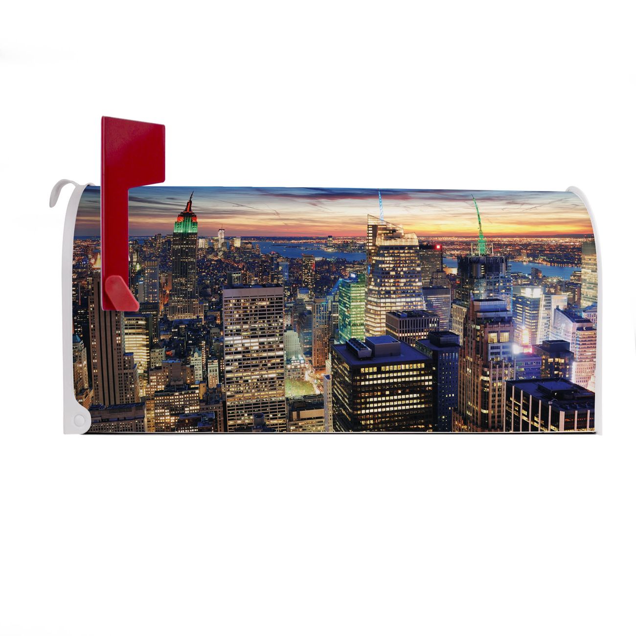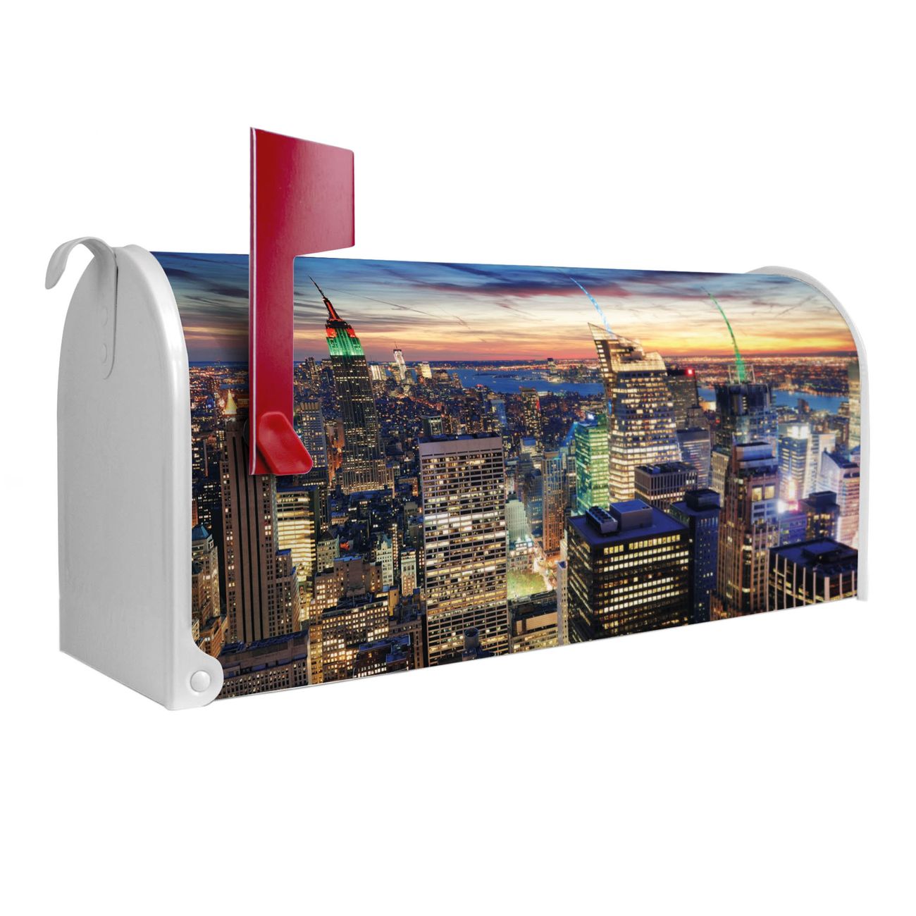 Unser amerikanischer Briefkasten mit dem Motiv New York Sunset hat ein sehr ansprechendes und ausgefallenes Design, ist in der Grundfarbe weiß, grün oder schwarz erhältlich. Damit entlocken Sie Ihren Nachbarn und dem Postboten immer wieder ein Lächeln. Die Mailbox ist ein Original Import aus Mississippi USA und wird von unserer kleinen Manufaktur in Sachsen von Hand veredelt. Die US-Mailbox bietet ausreichend Platz auch für große Sendungen, eine Fahne die Ihnen Post anzeigt, wetterfestes und äußerst stabiles Material - so macht Post empfangen Freude.