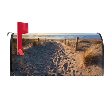 Der amerikanische Briefkasten von banjado mit Nordseestrand Motiv bietet Ihnen ausreichend Fassungsvermögen, um große A4 Sendungen und Zeitschriften zu empfangen. Die typisch amerikanische rote Fahne zeigt Ihnen an, wenn Sie Post erhalten haben. Die US-Mailbox besteht aus verzinktem Stahlblech welches lackiert wurde und ist 48 x 22 x 16 CM (BxHxT) groß. Die Folie mit Motiv Nordseestrand besteht aus einer wetter- und UV-resistenten Folie, die mit einem Schutzlaminat überzogen ist, sodass die US Mailbox zusätzlich vor Kratzern geschützt ist. An der Unterkante sind 4 Löcher je Seite um die Mailbox, typisch amerikanisch, an einem Holzpfahl oder einem Zaun zu befestigen. Auf Wunsch können Sie bei uns den passenden Standfuß oder die passende Wandhalterung kaufen um die US-Mailbox sicher zu befestigen. Wir bieten Ihnen ebenfalls Namensschilder, bereits beschriftet oder frei zu beschriften, und verschiedene selbst gestaltete Bitte-Keine-Werbung-Aufkleber.