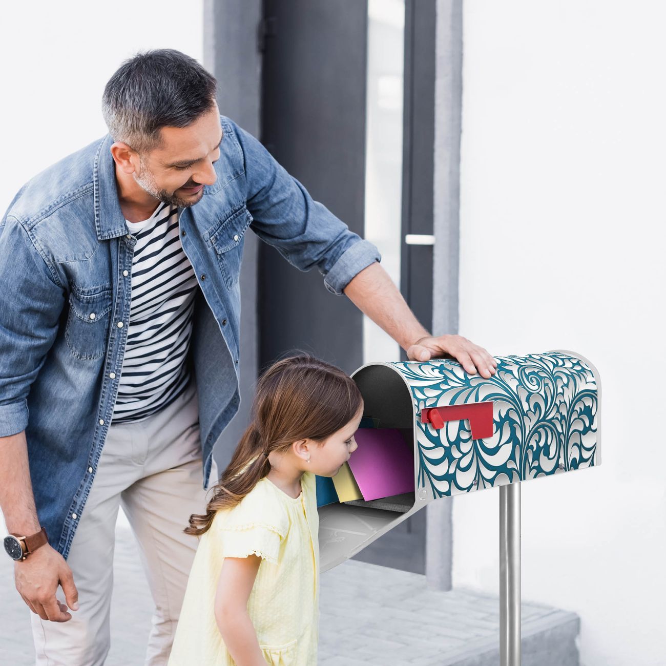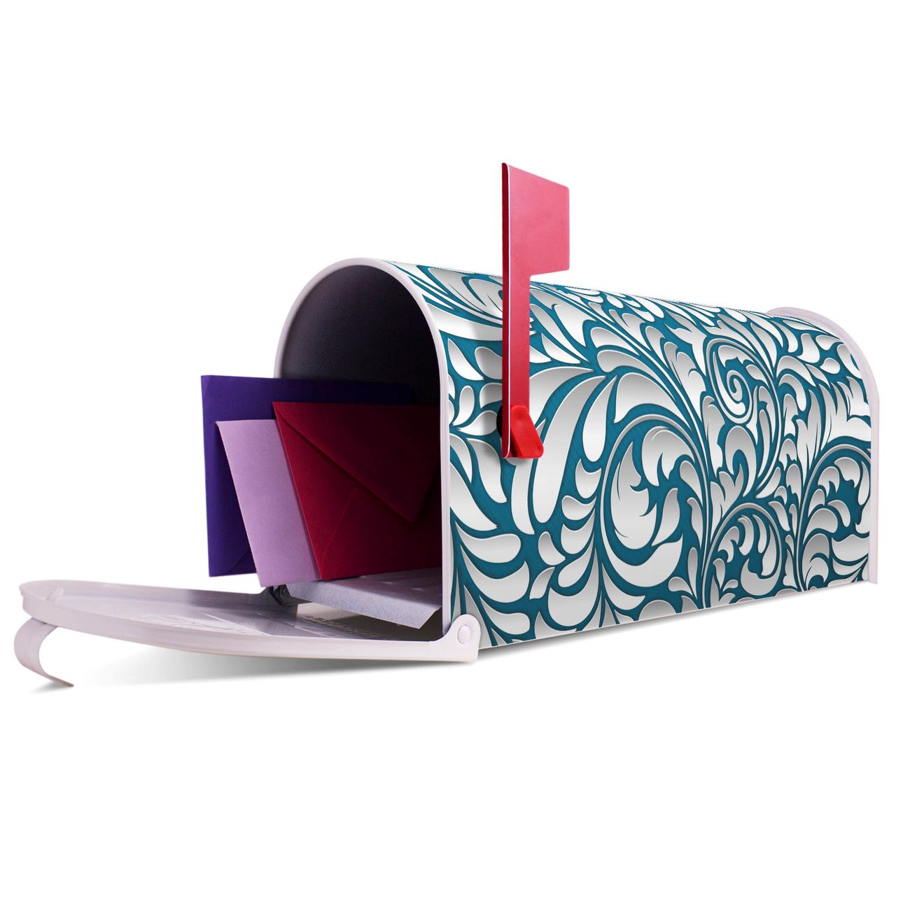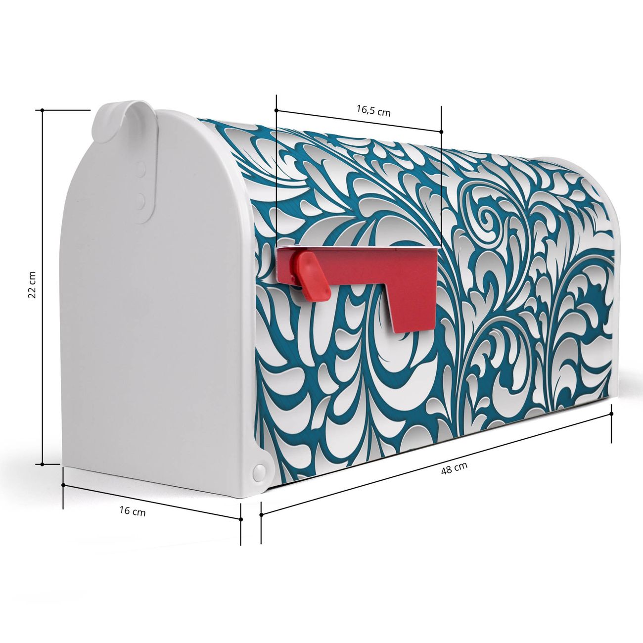 Der amerikanische Briefkasten von banjado mit Opulente Ranke Motiv bietet Ihnen ausreichend Fassungsvermögen, um große A4 Sendungen und Zeitschriften zu empfangen. Die typisch amerikanische rote Fahne zeigt Ihnen an, wenn Sie Post erhalten haben. Die US-Mailbox besteht aus verzinktem Stahlblech welches lackiert wurde und ist 48 x 22 x 16 CM (BxHxT) groß. Die Folie mit Motiv Opulente Ranke besteht aus einer wetter- und UV-resistenten Folie, die mit einem Schutzlaminat überzogen ist, sodass die US Mailbox zusätzlich vor Kratzern geschützt ist. An der Unterkante sind 4 Löcher je Seite um die Mailbox, typisch amerikanisch, an einem Holzpfahl oder einem Zaun zu befestigen. Auf Wunsch können Sie bei uns den passenden Standfuß oder die passende Wandhalterung kaufen um die US-Mailbox sicher zu befestigen. Wir bieten Ihnen ebenfalls Namensschilder, bereits beschriftet oder frei zu beschriften, und verschiedene selbst gestaltete Bitte-Keine-Werbung-Aufkleber.