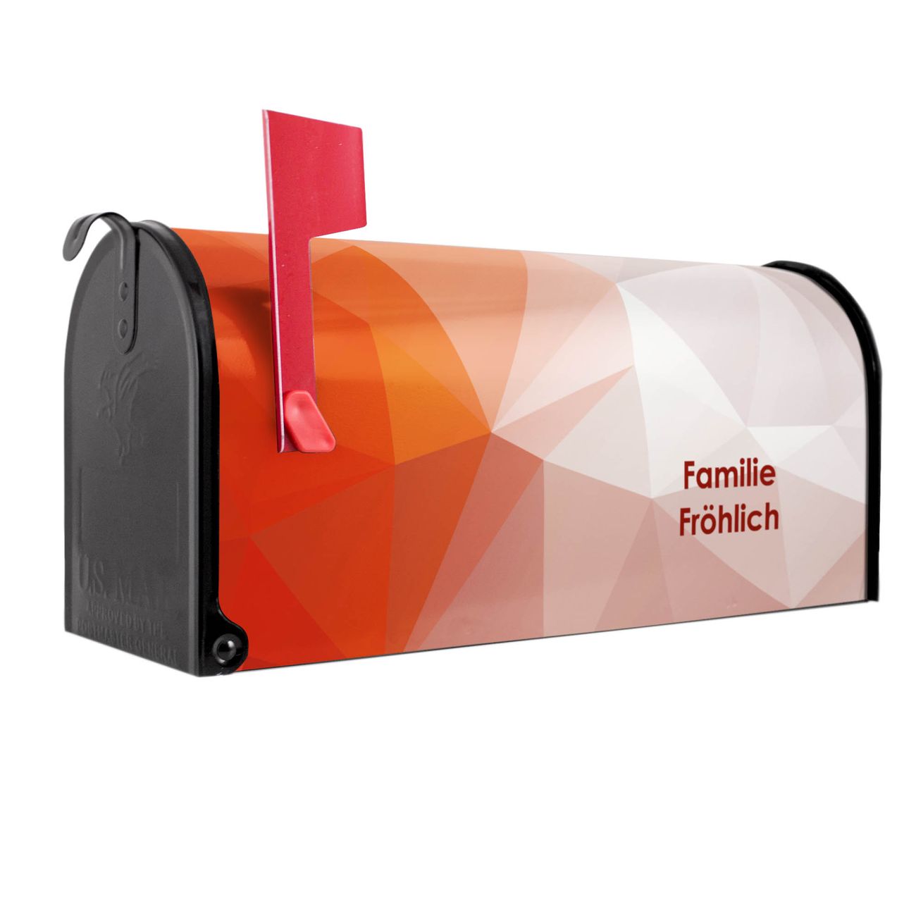 Unser amerikanischer Briefkasten mit dem Motiv Orange Polygon hat ein sehr ansprechendes und ausgefallenes Design, ist in der Grundfarbe weiß, grün oder schwarz erhältlich. Damit entlocken Sie Ihren Nachbarn und dem Postboten immer wieder ein Lächeln. Die Mailbox ist ein Original Import aus Mississippi USA und wird von unserer kleinen Manufaktur in Sachsen von Hand veredelt. Die US-Mailbox bietet ausreichend Platz auch für große Sendungen, eine Fahne die Ihnen Post anzeigt, wetterfestes und äußerst stabiles Material - so macht Post empfangen Freude.